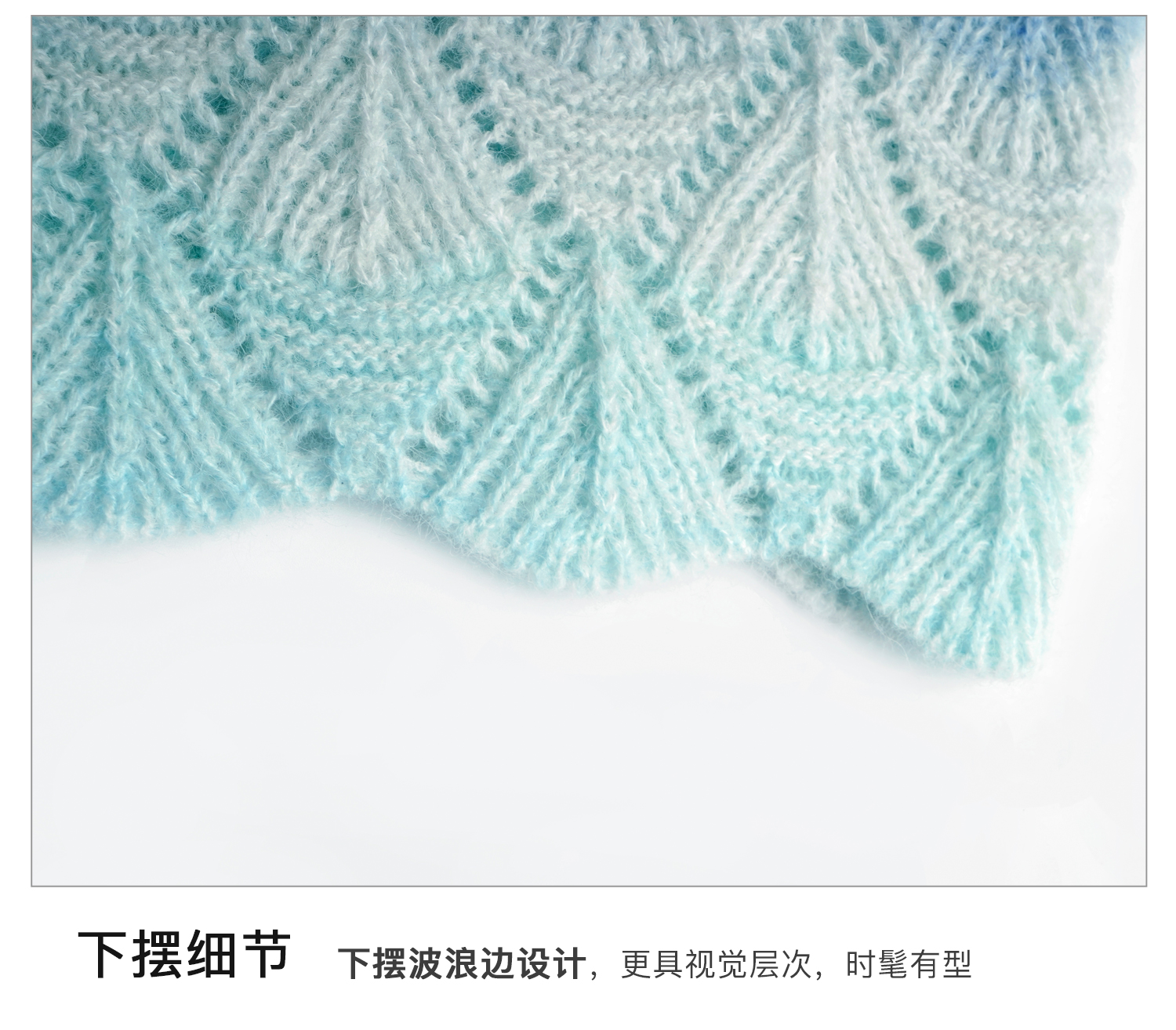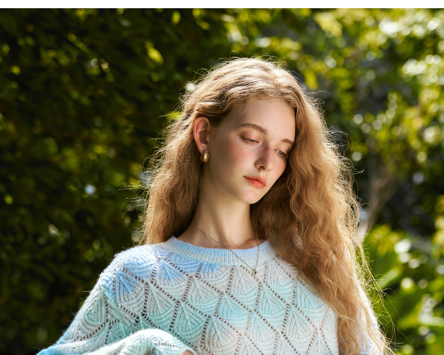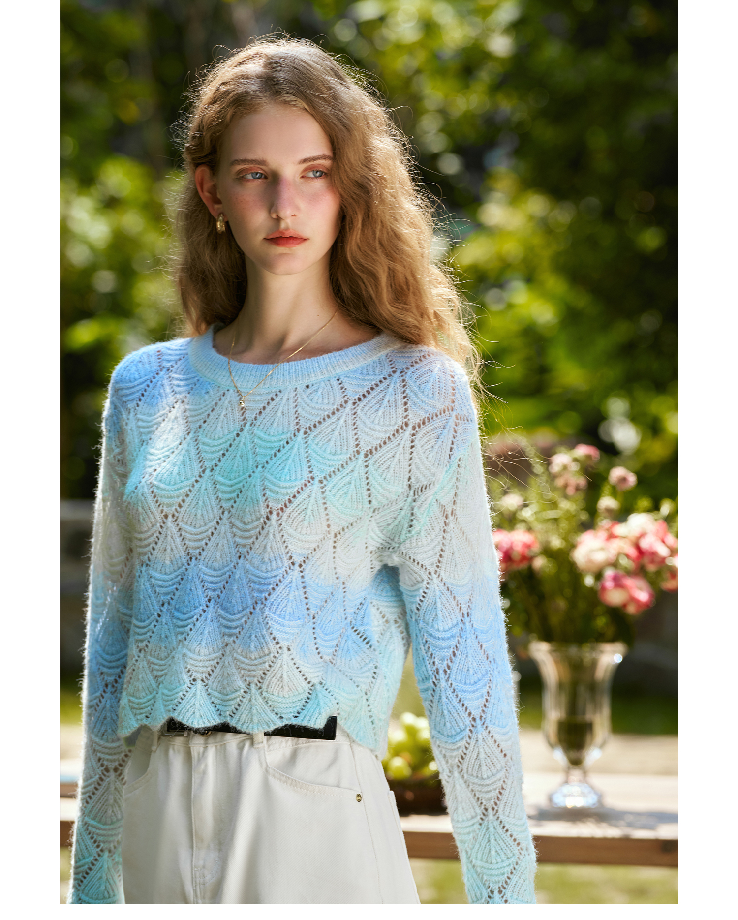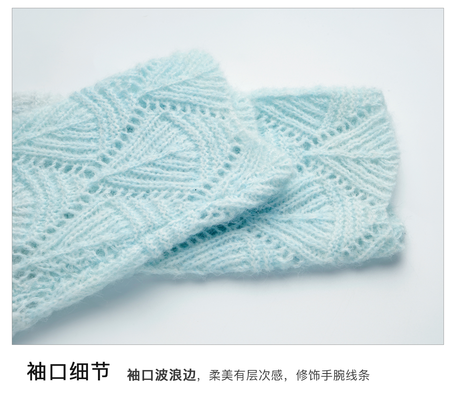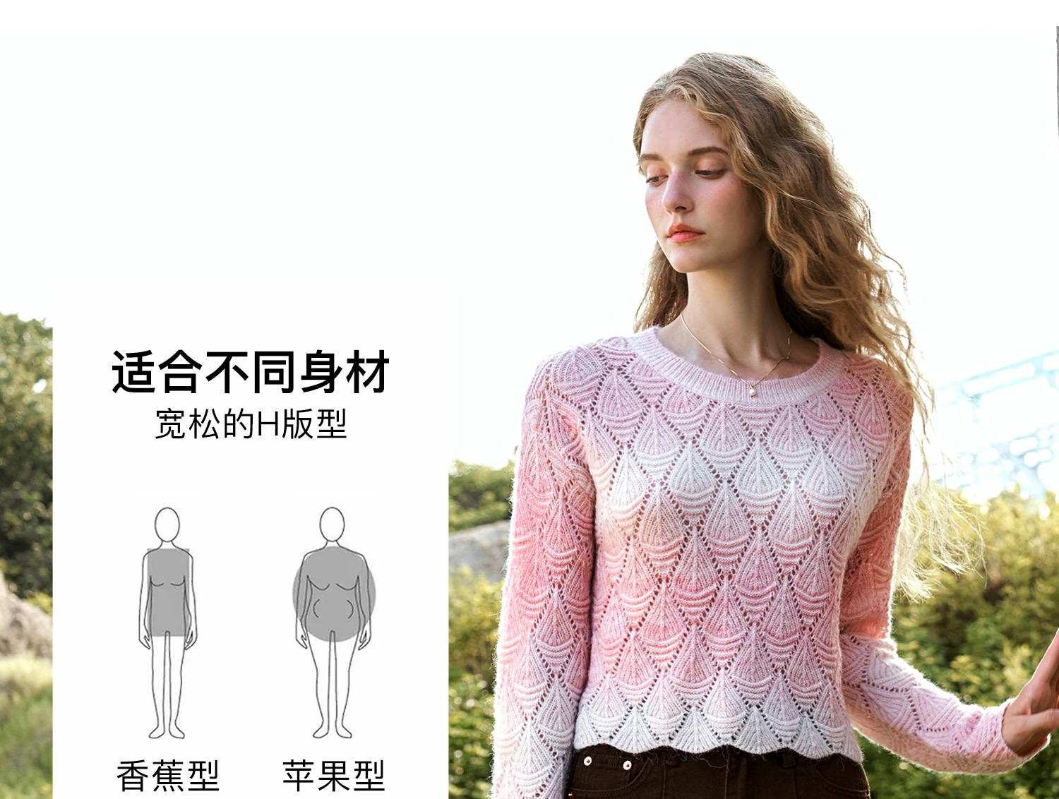 OLrain欧芮儿渐变条纹镂空针织衫女秋2024新款慵懒长袖套头薄上衣