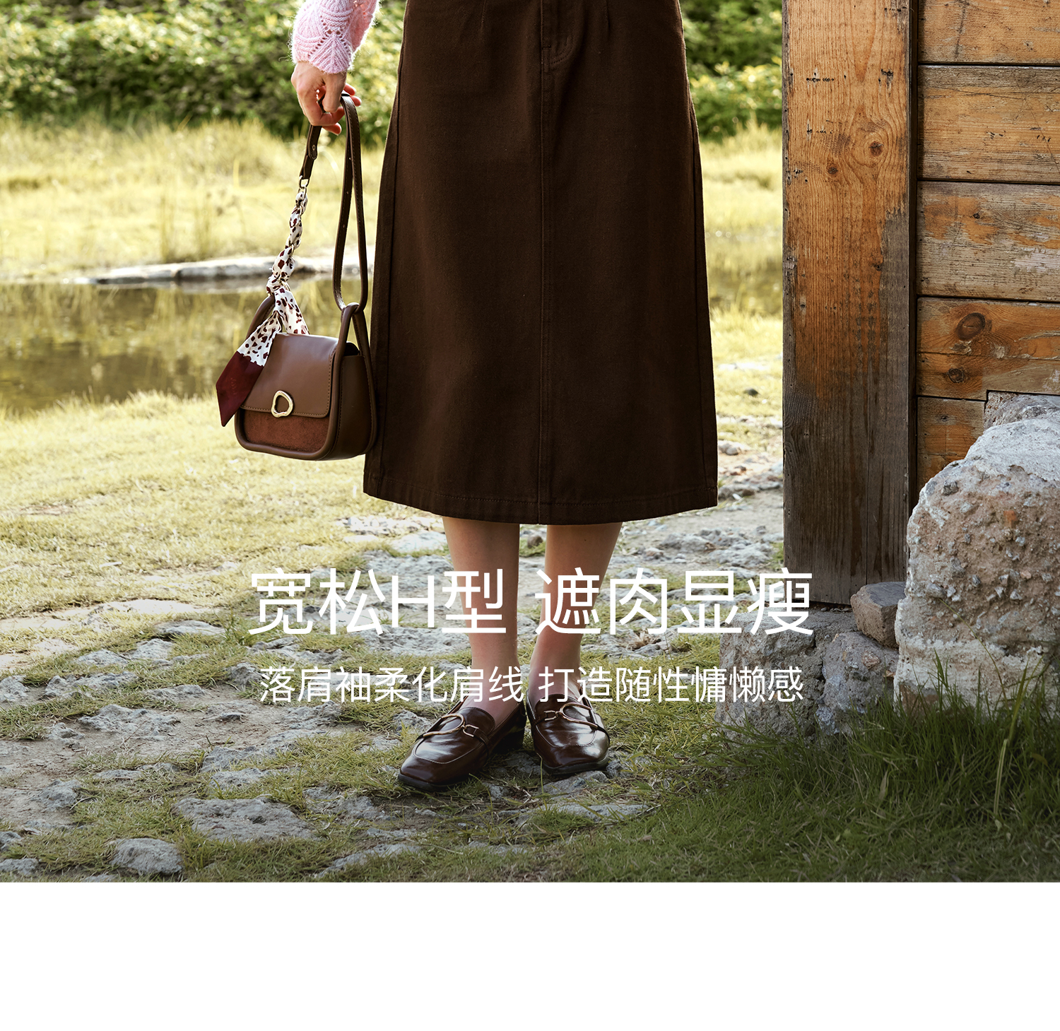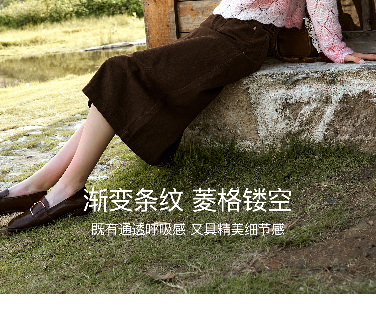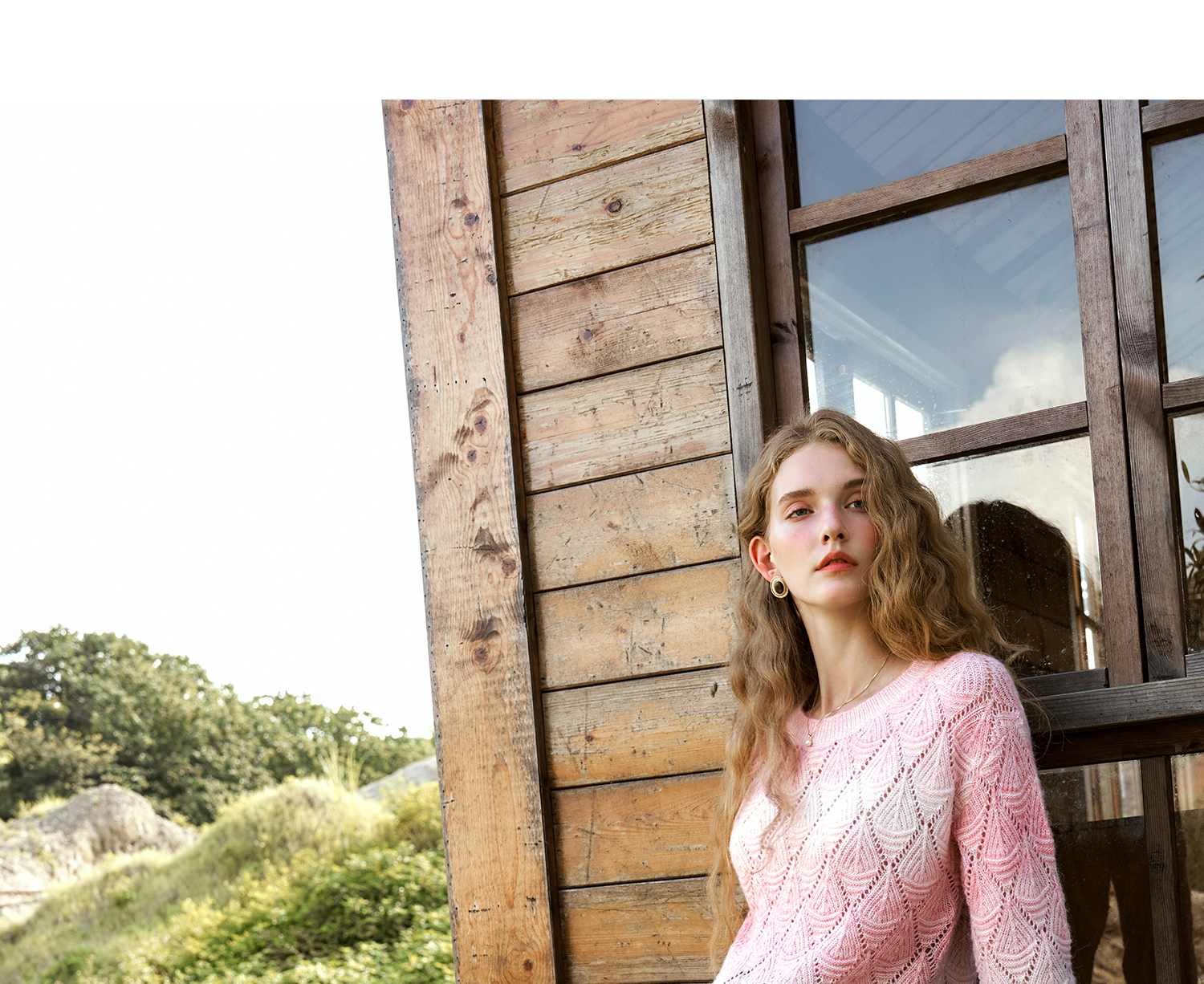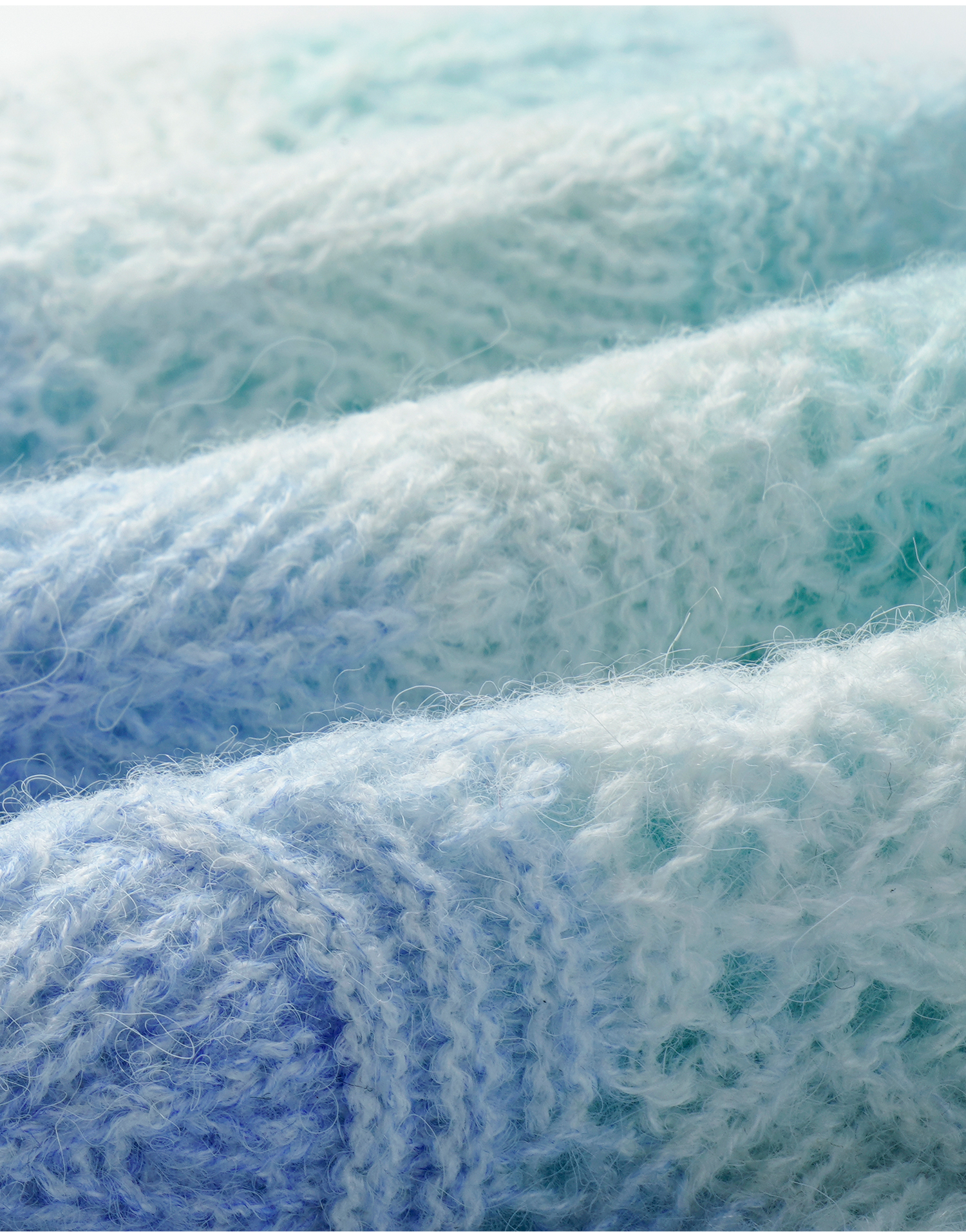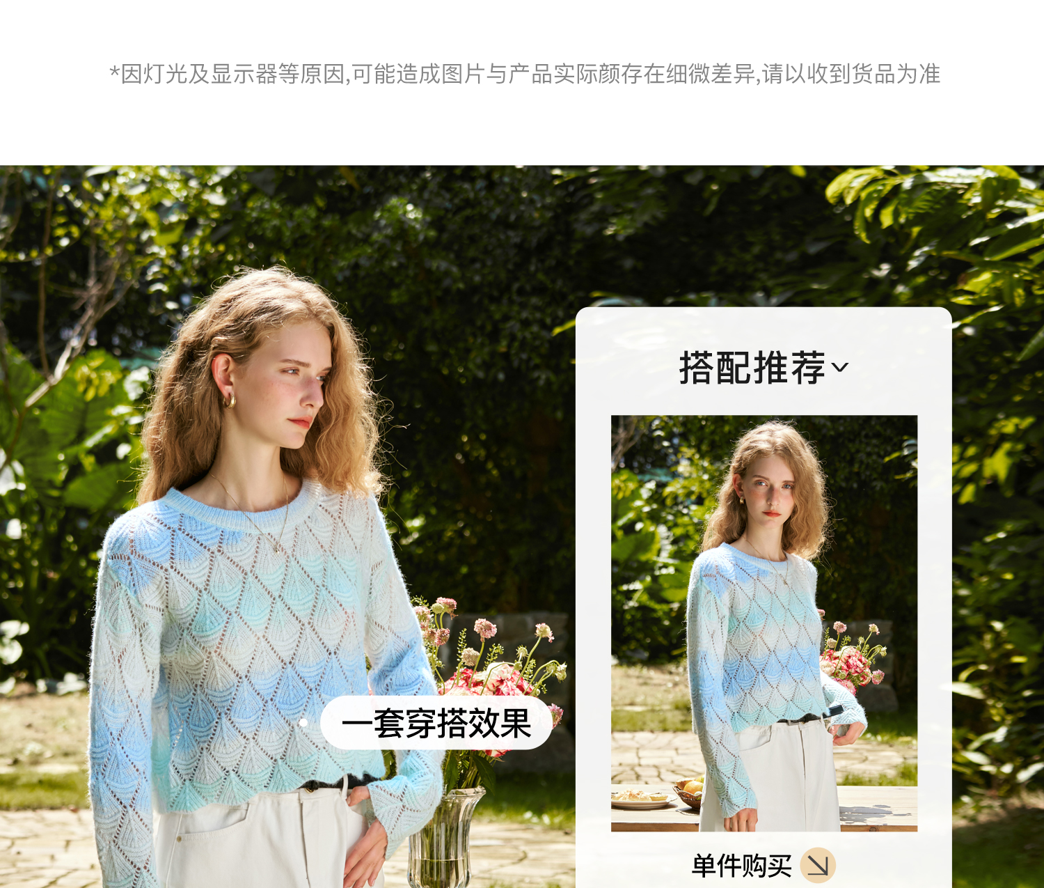 OLrain欧芮儿渐变条纹镂空针织衫女秋2024新款慵懒长袖套头薄上衣