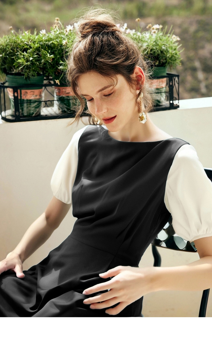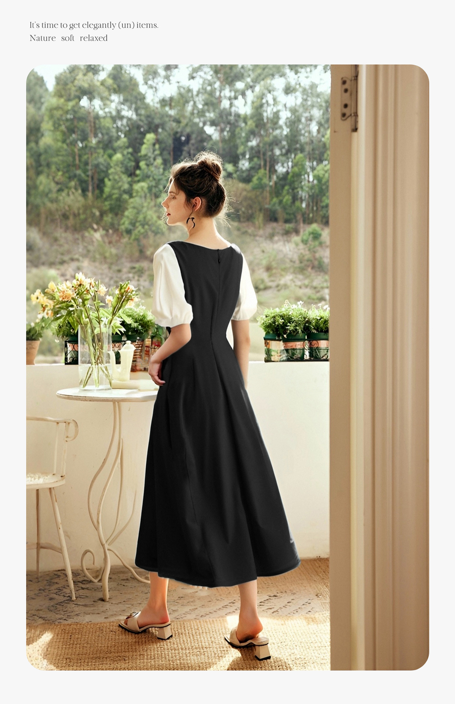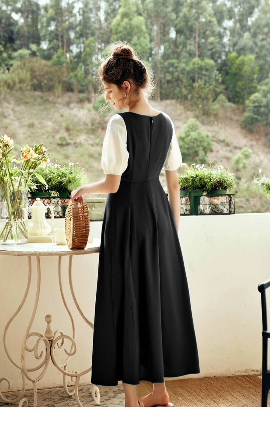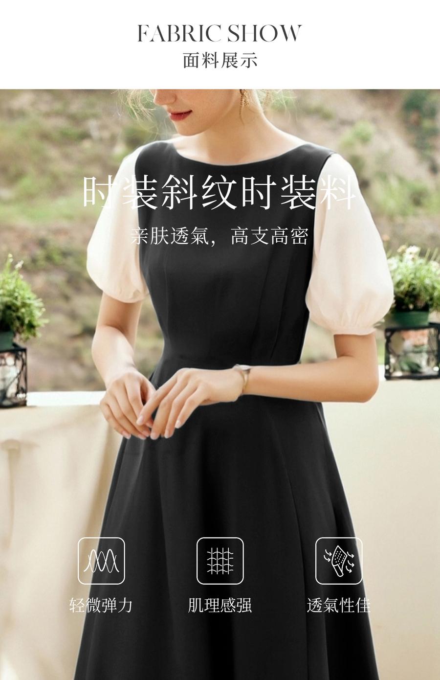 OLrain欧芮儿2025夏季新款黑色撞色袖收腰显瘦法式连衣裙一字领女