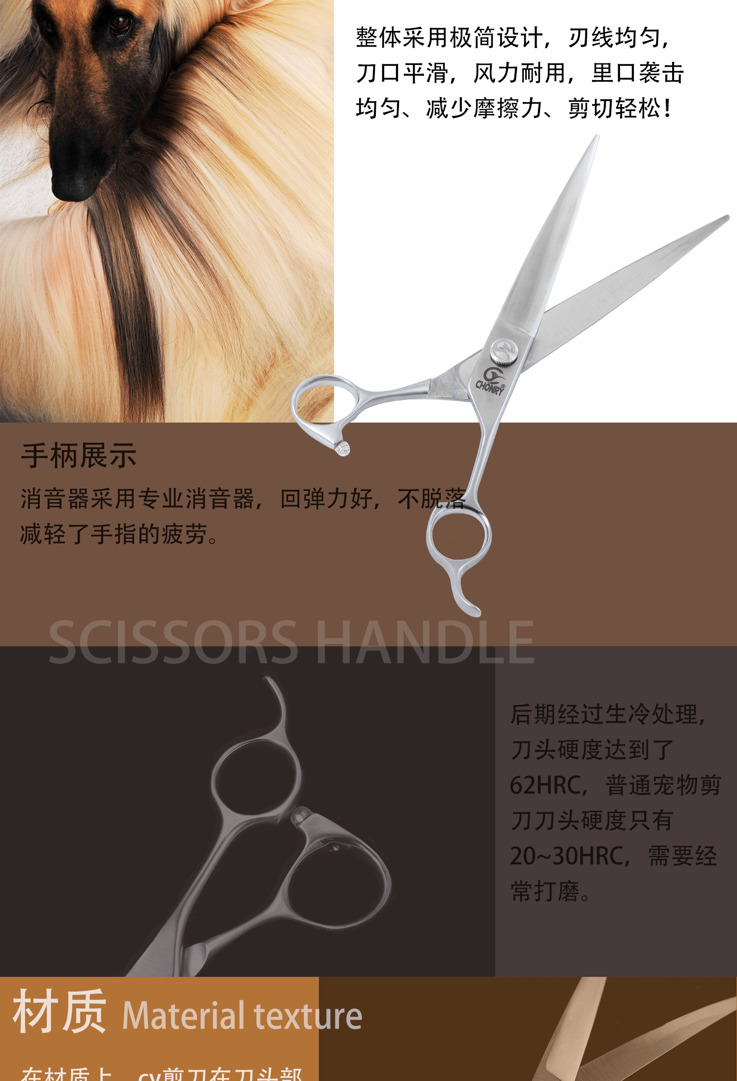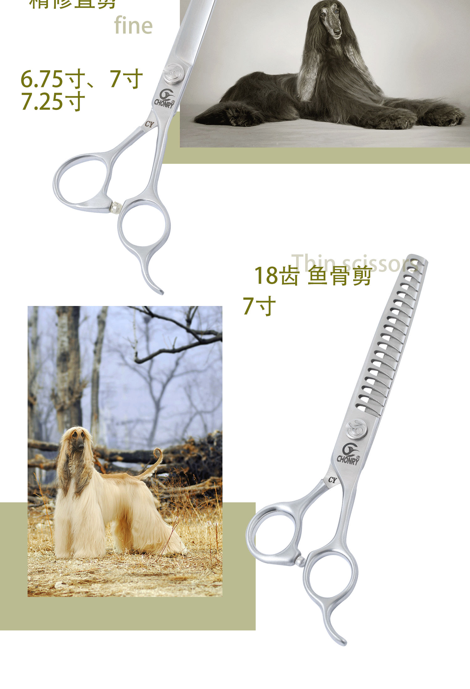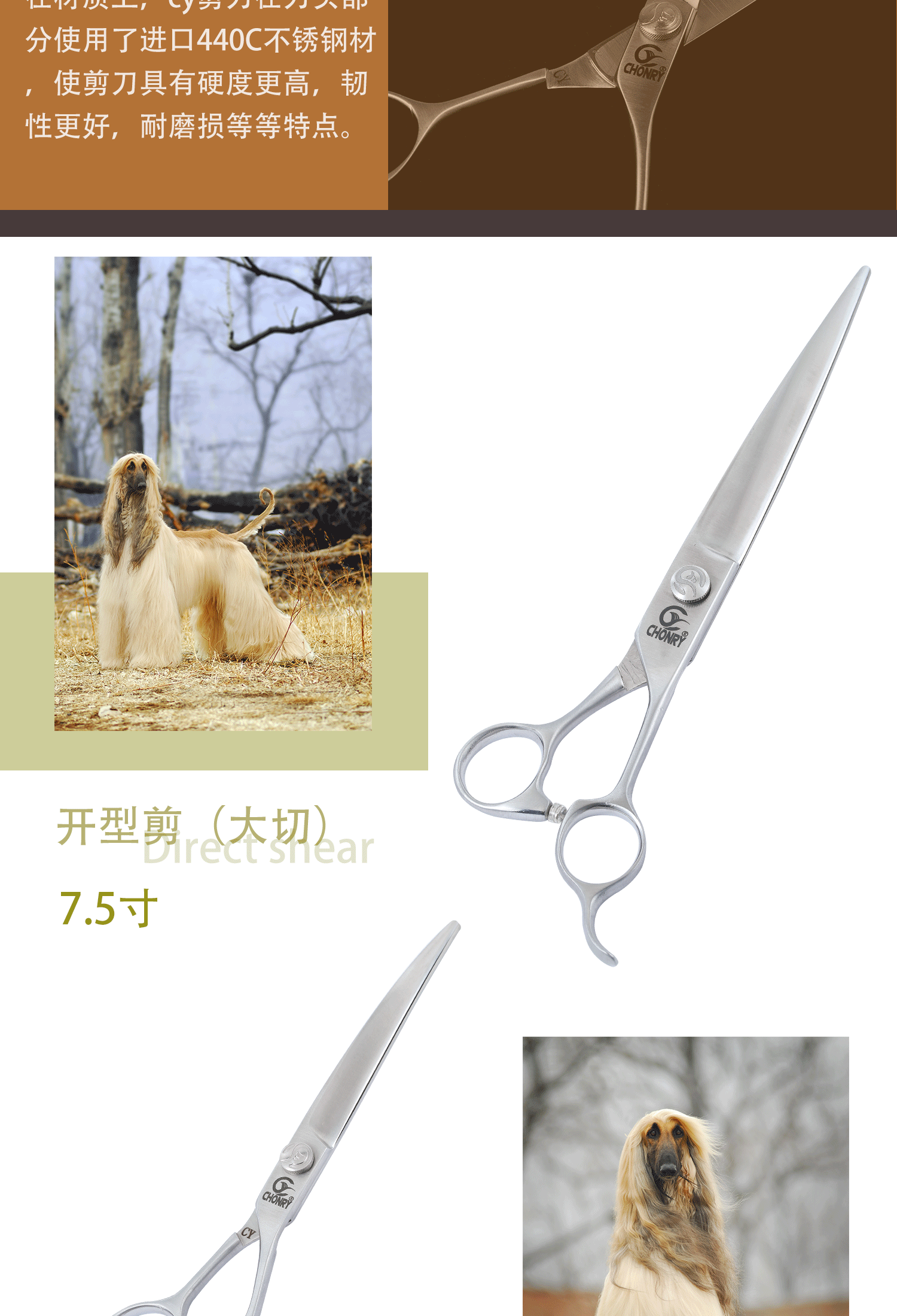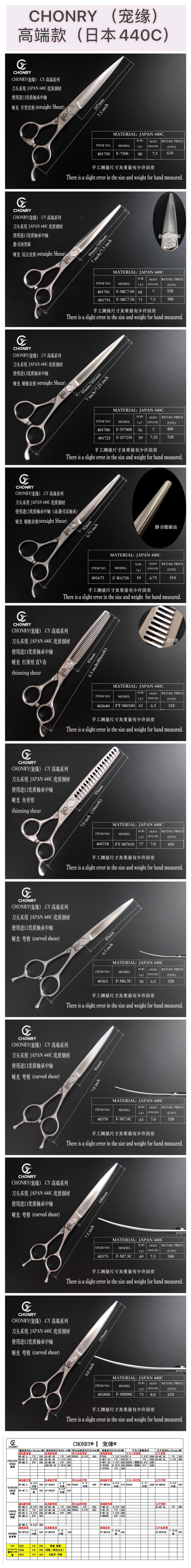 宠物剪【高端款】 宠缘chonry专业宠物美容剪刀 直剪弯剪牙剪鱼骨剪(日本440C钢)