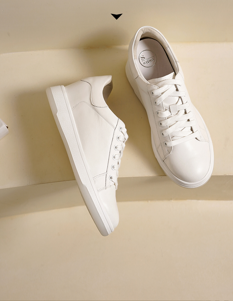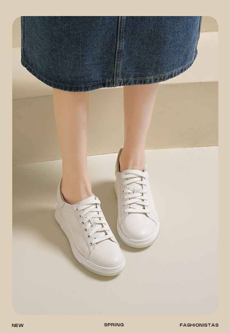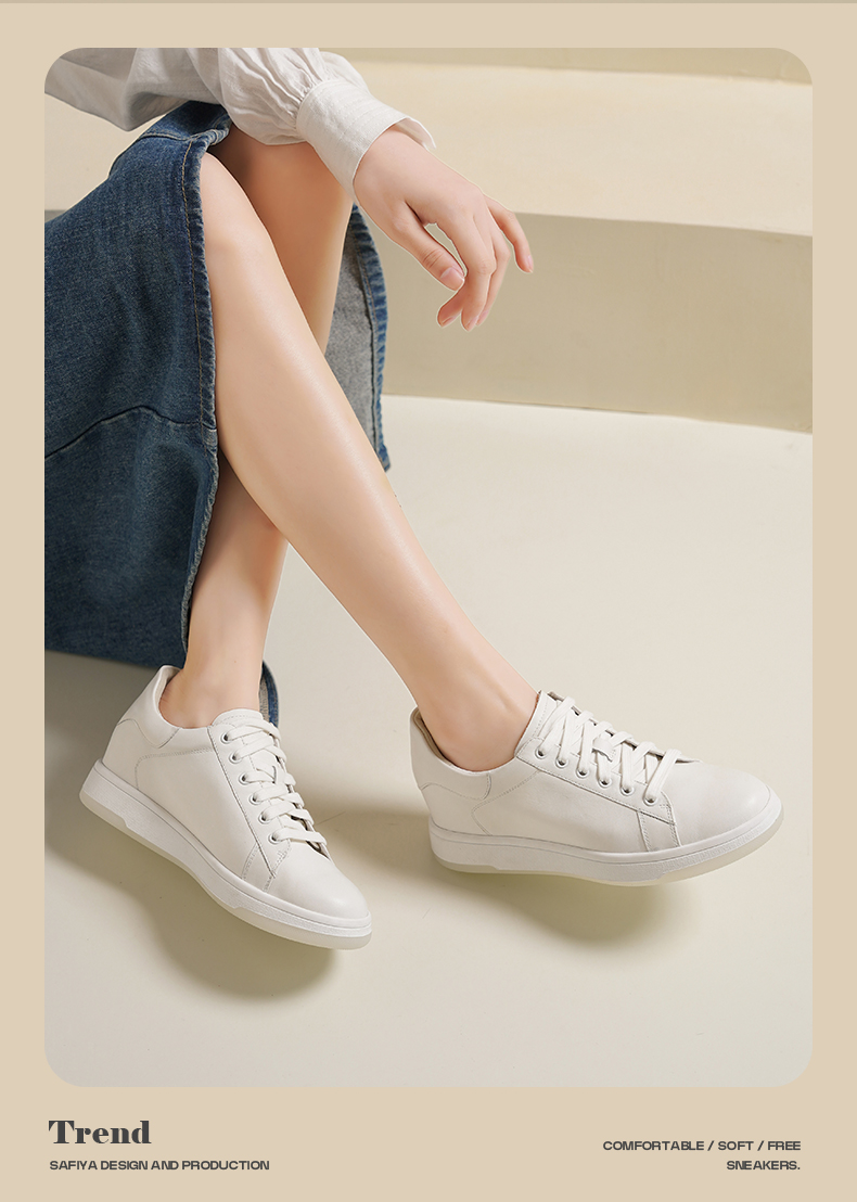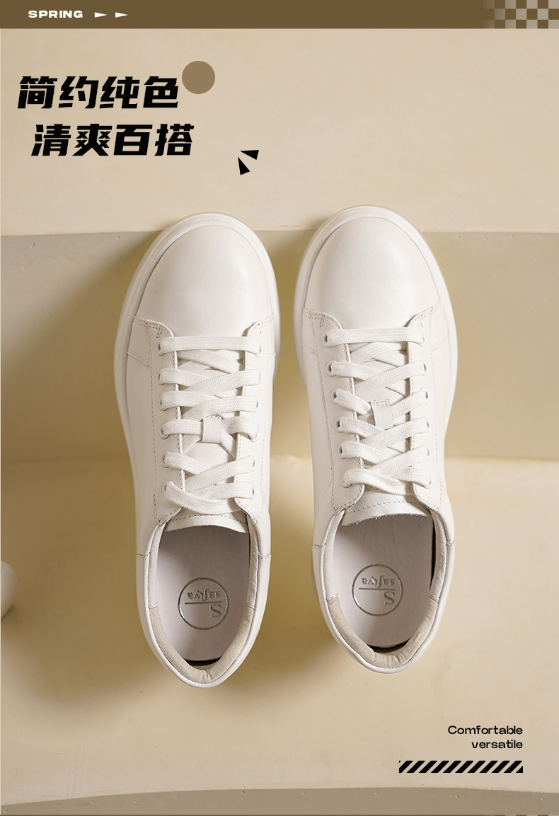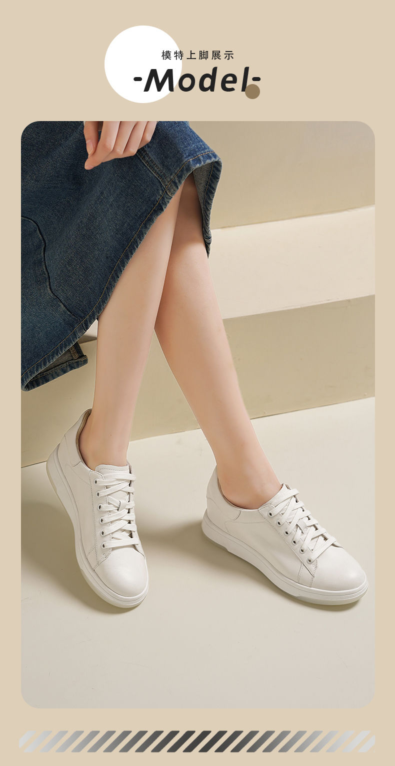 Safiya/索菲娅2025学院风百搭内增高小个子真皮平底休闲小白鞋SFD1112165