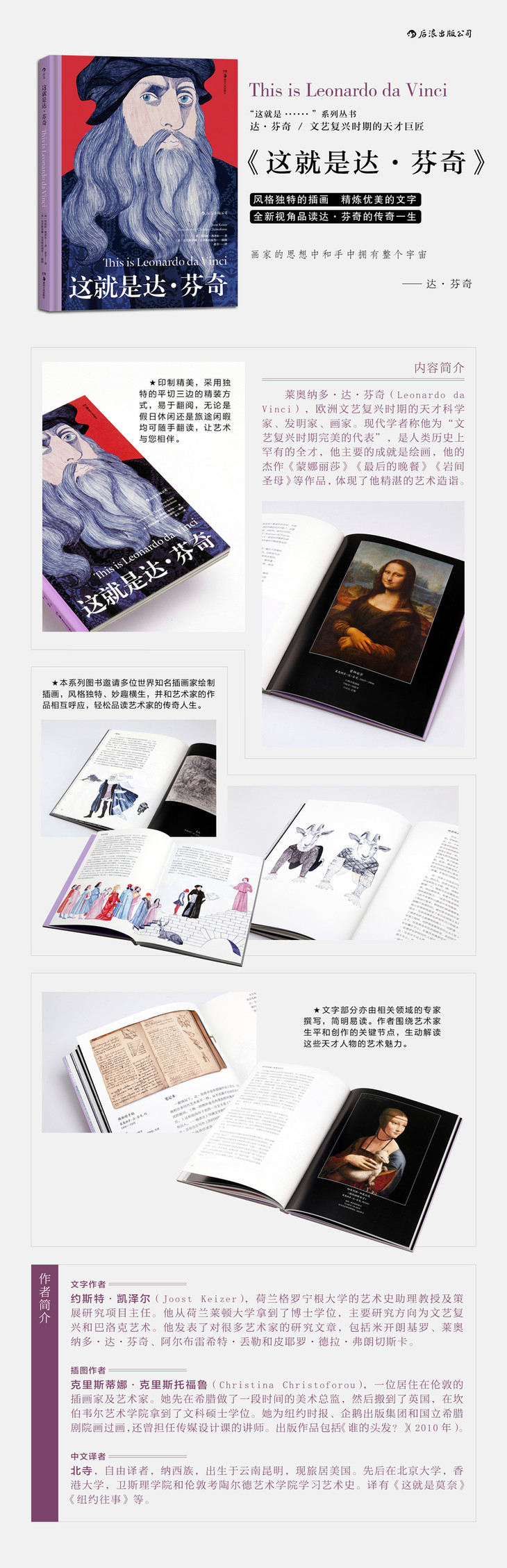 《这就是达·芬奇》通过生动的插画和精练的文字讲述了达·芬奇传奇的一生。书中的插画形象地展现了达·芬奇的生活和奇思怪想,配合达·芬奇的画作的展示,让读者对他有更深入的了解。- 美好制造 (微信公众号认证)