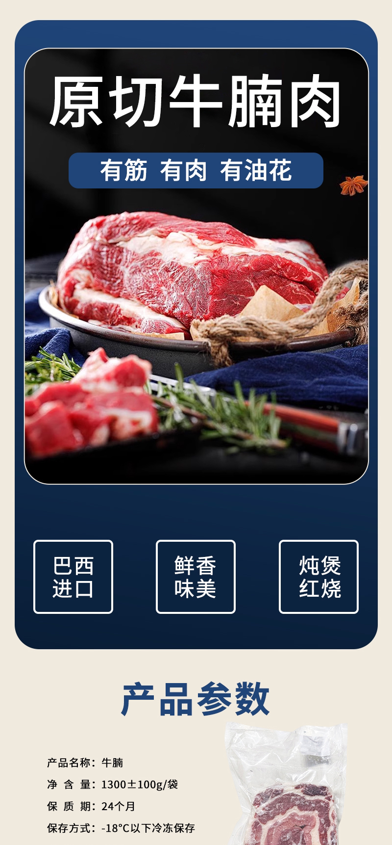 【清真】巴西进口牛腩1300±100g