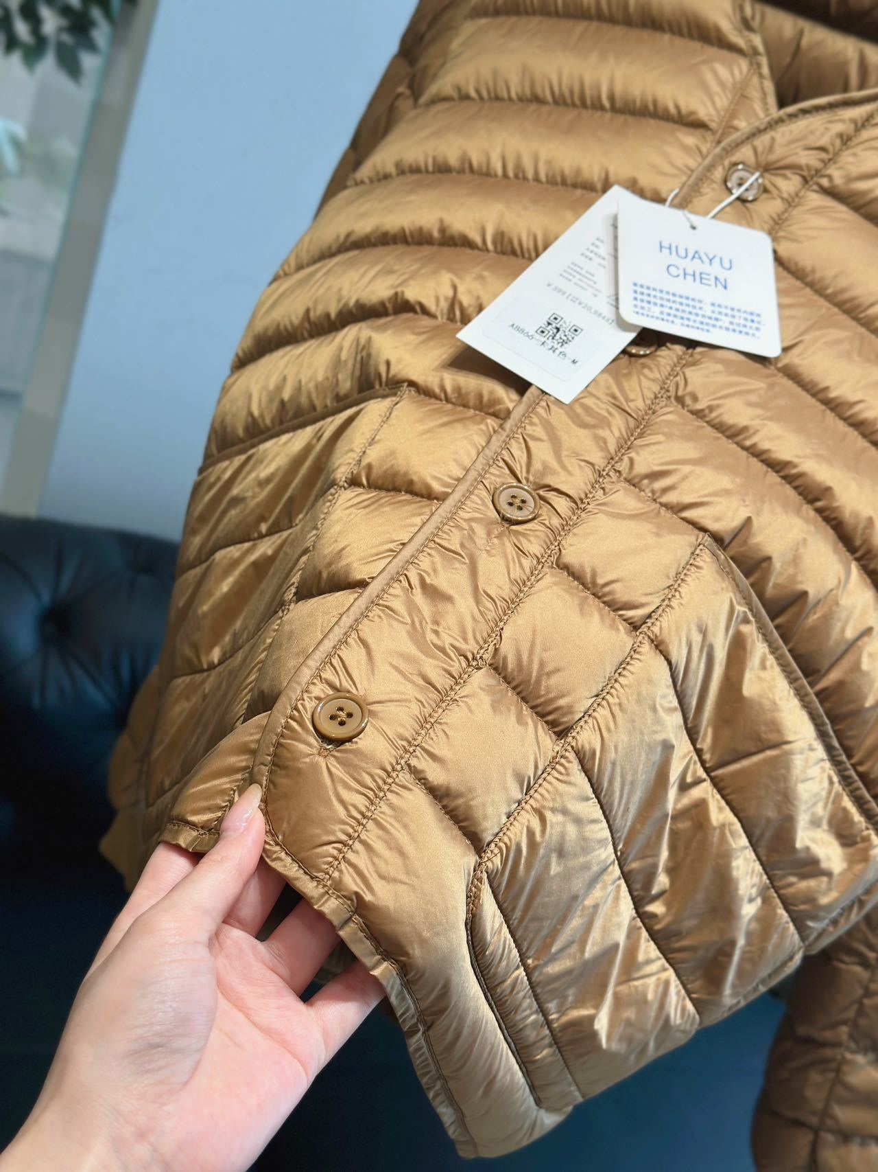 从走线针脚到填充的白鸭绒再到上身的轻盈感