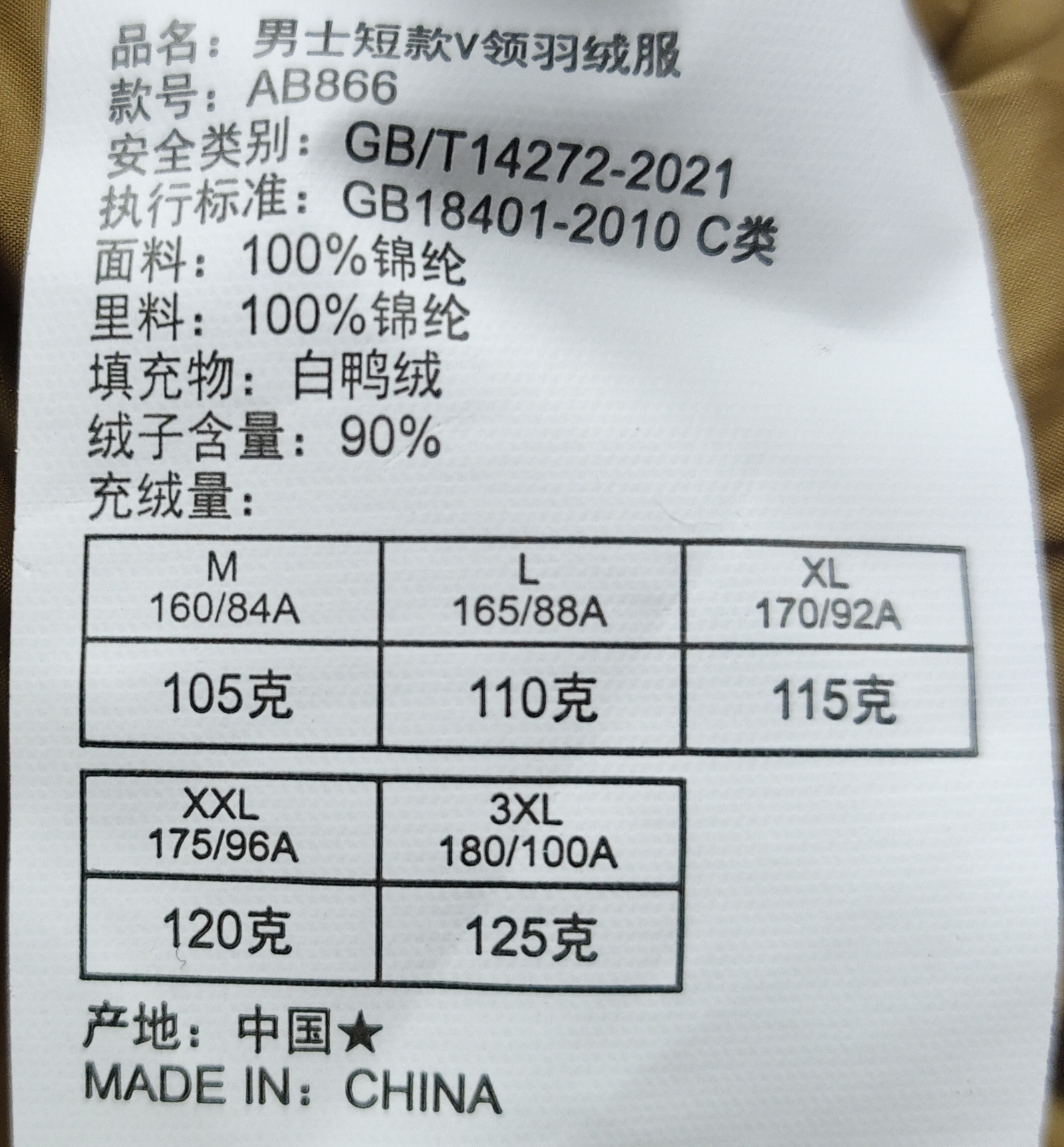内里90白鸭绒填充!