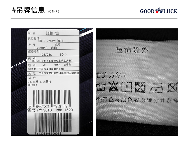 GOOD LUCK/德鲨弹力棉质舒适竖条纹短袖T恤FY13013-830