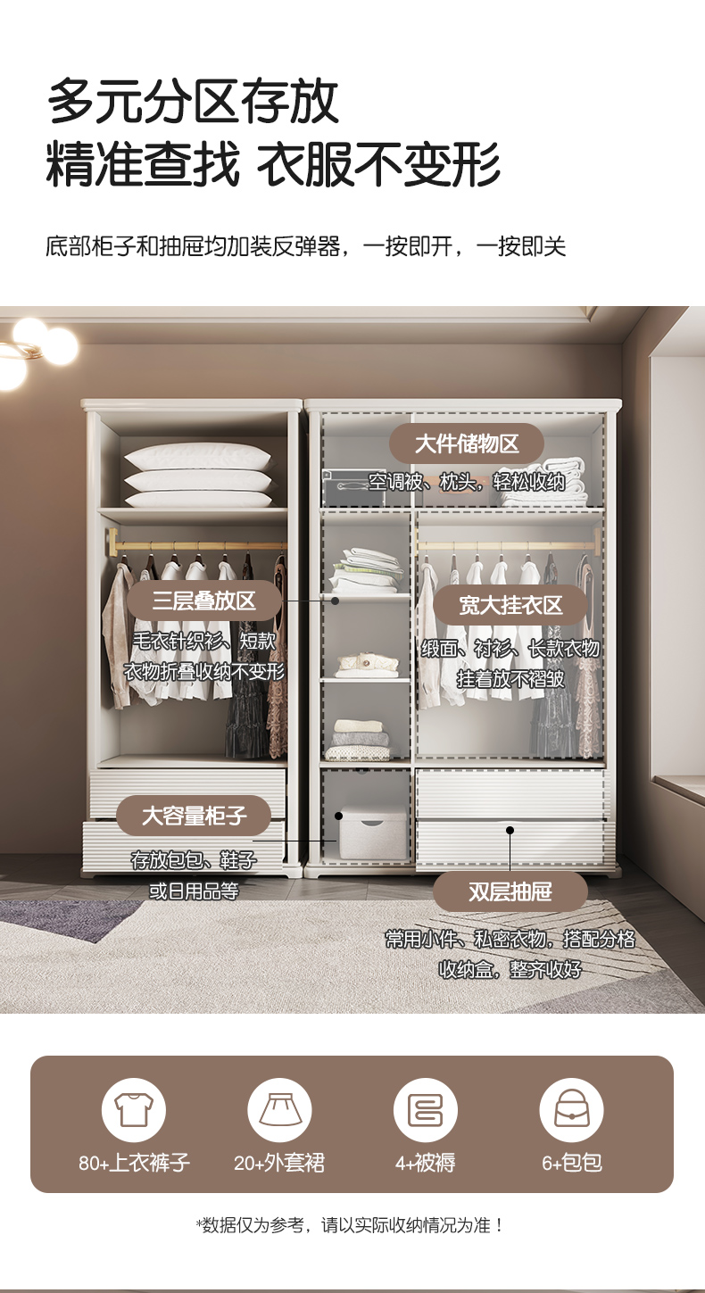 喜梦宝衣柜多功能组合衣柜现代简约收纳储物柜小户型彩虹糖系列