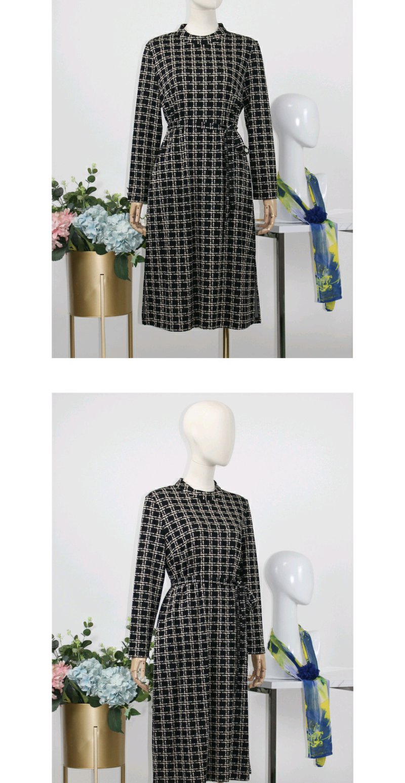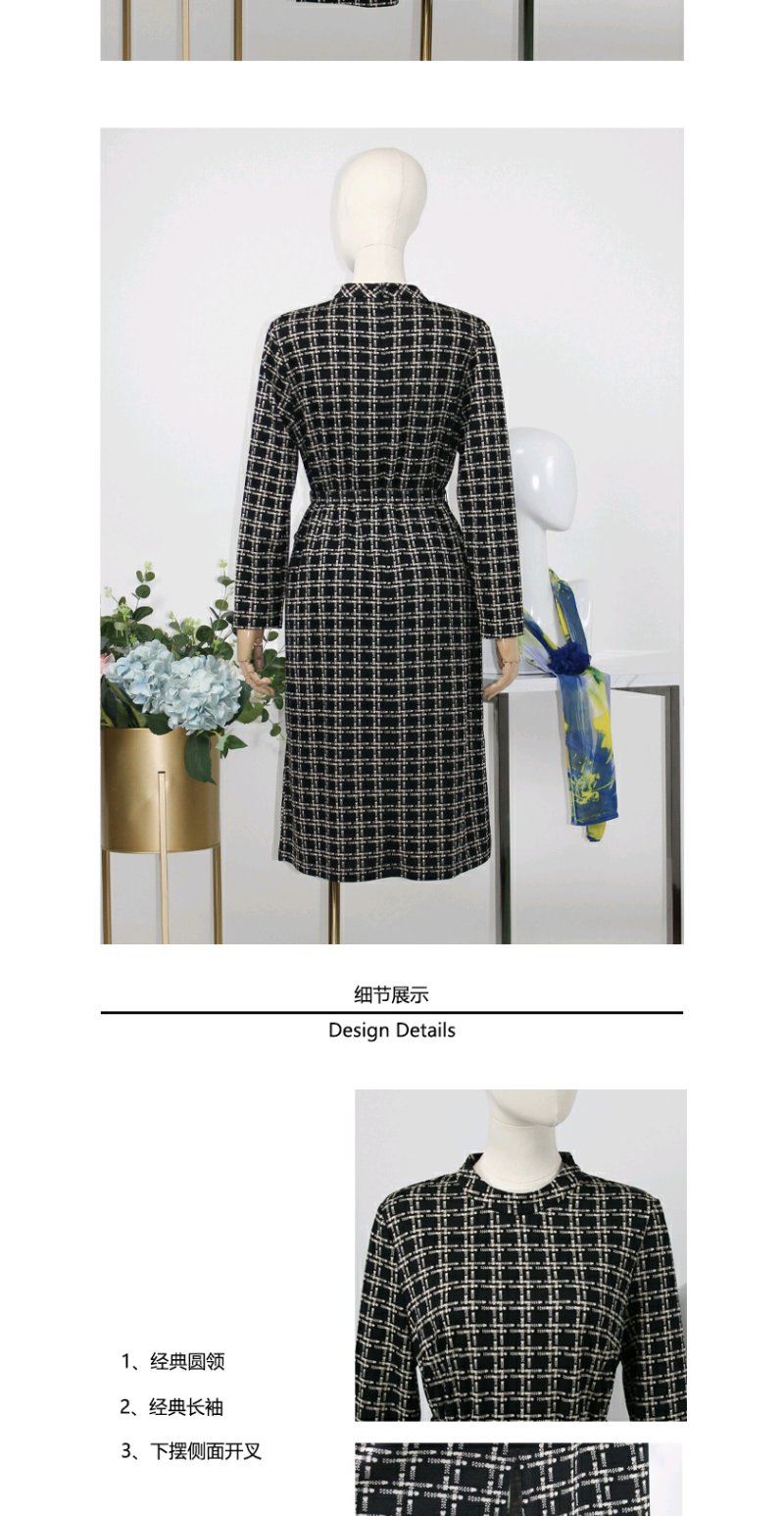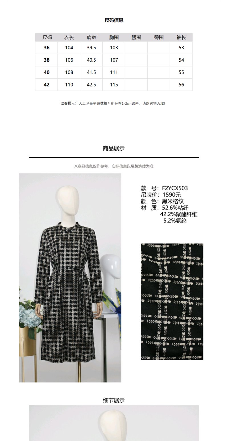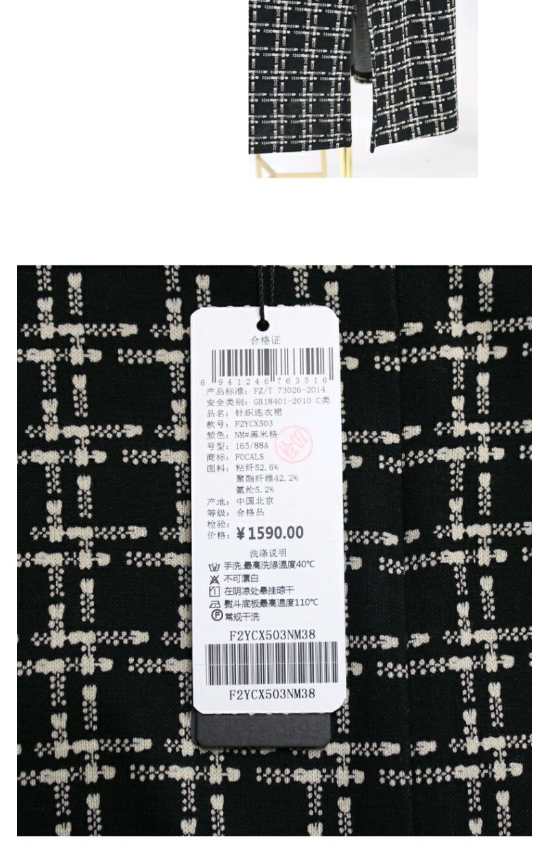 FOCALS福柯斯秋季圆领七分袖修身针织印花中长款连衣裙F2YCX503NM