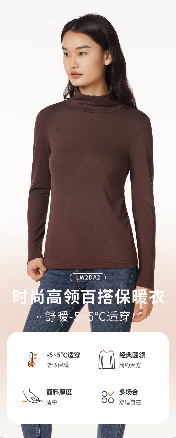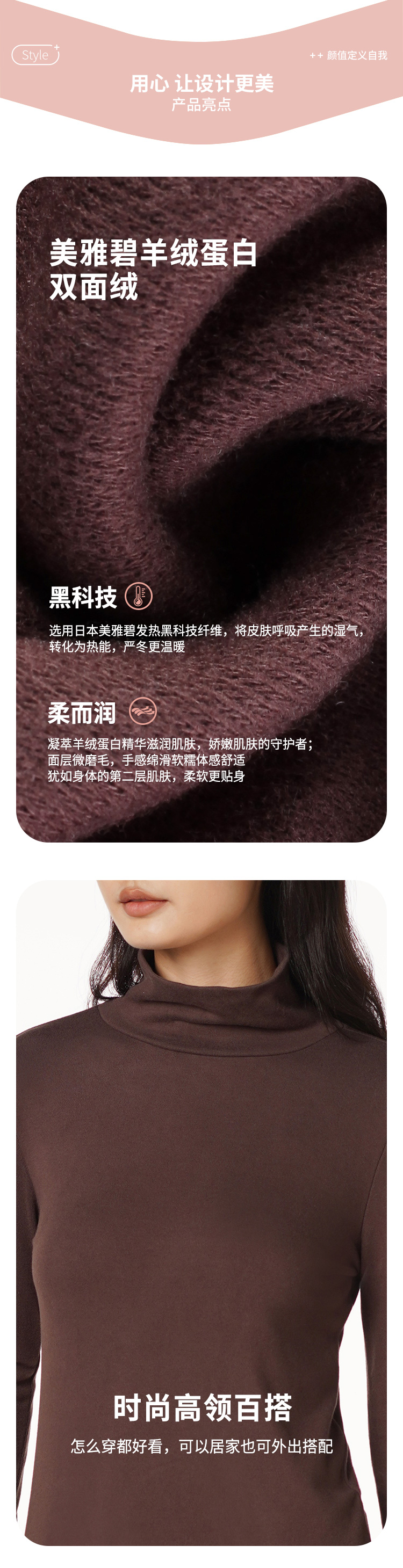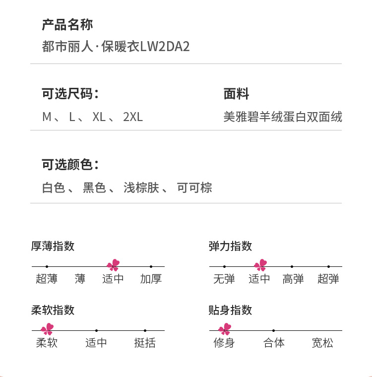 都市丽人舒暖负5度至5度女士发热纤维单件美雅碧羊绒蛋白双面绒中单件上衣保暖衣LW2DA2