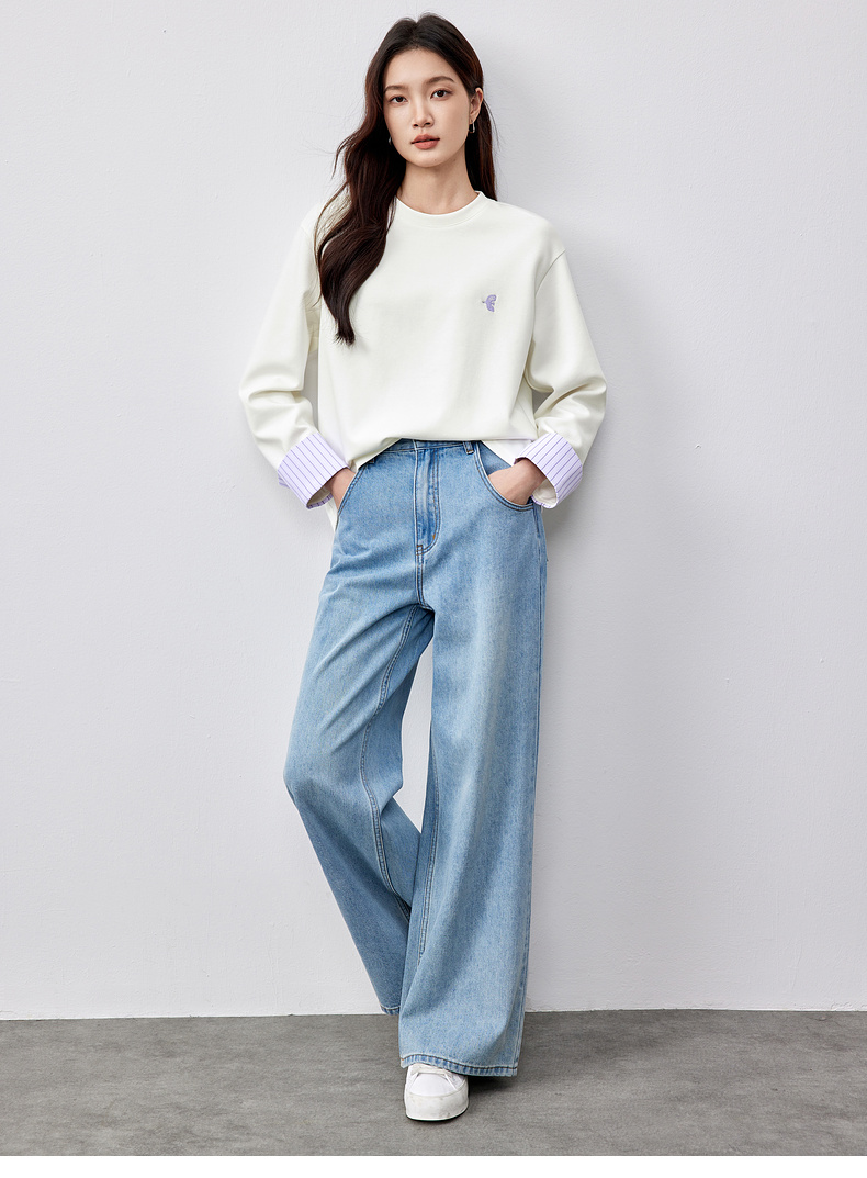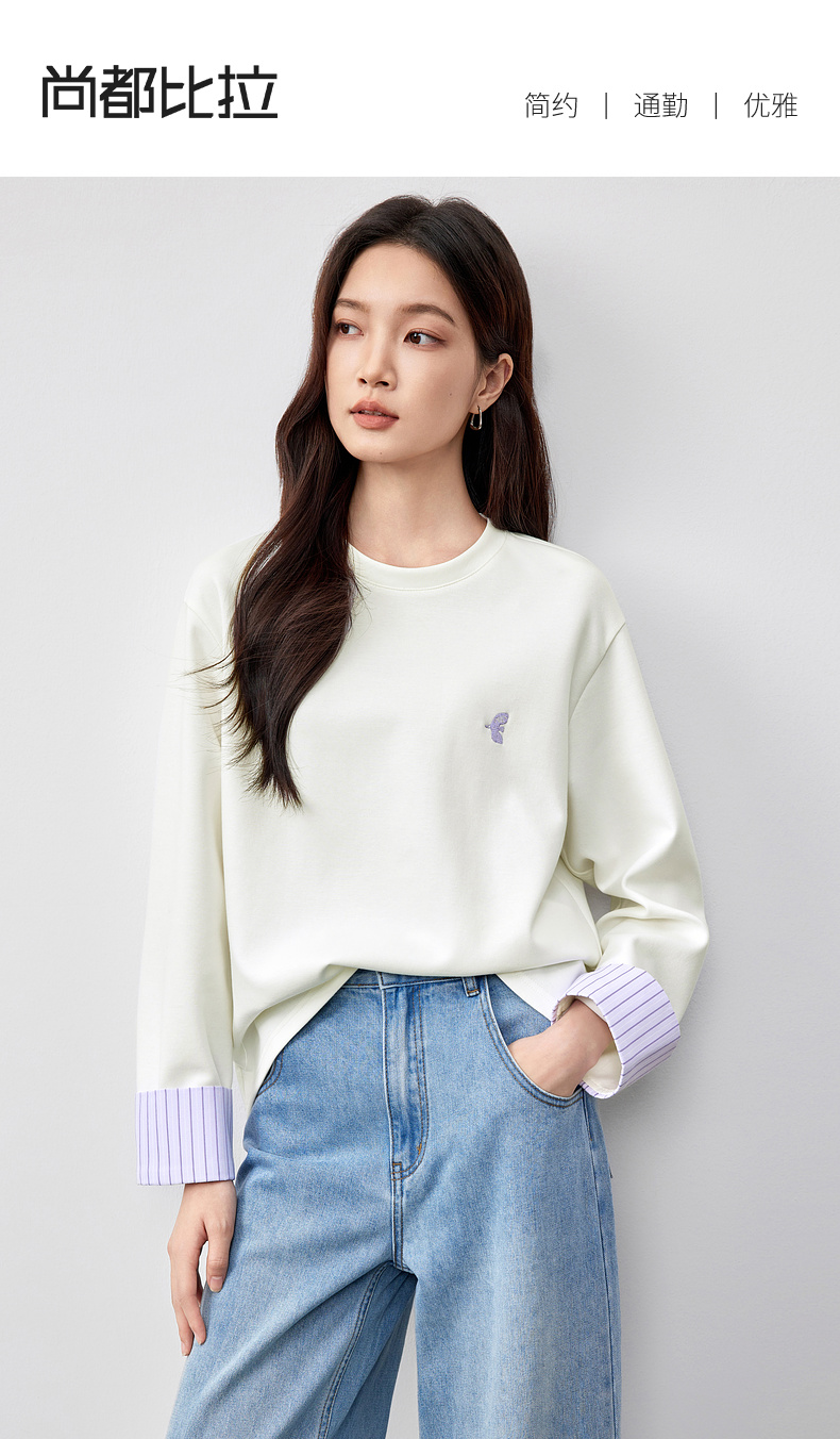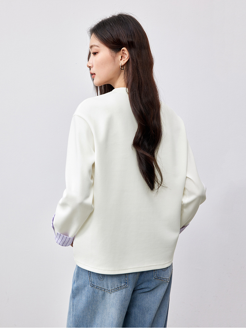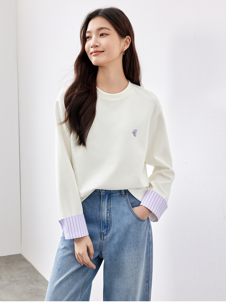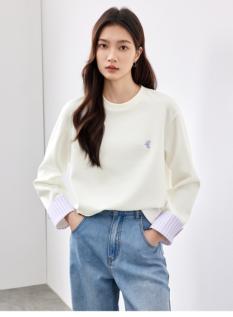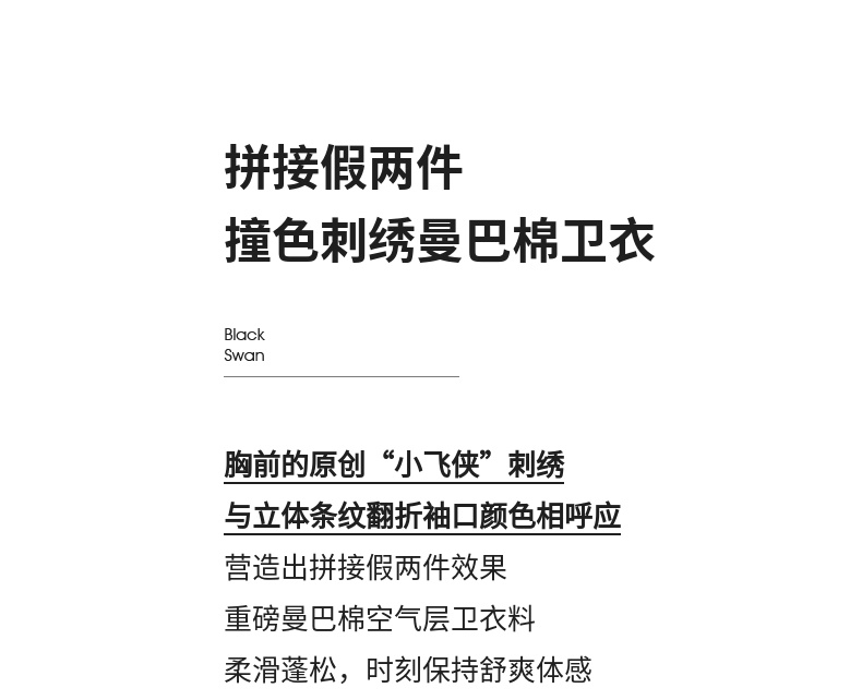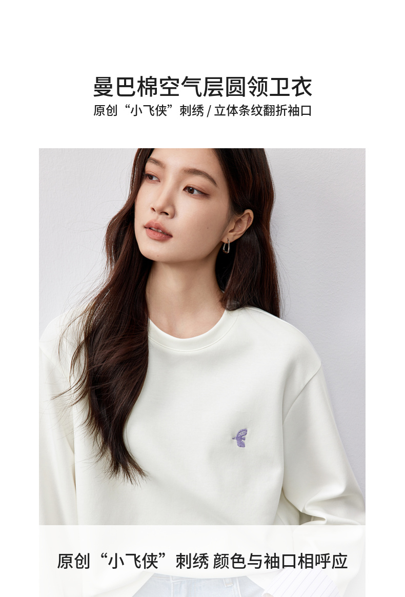 【“小飞侠”系列】撞色刺绣立体拼接条纹落肩袖曼巴棉空气层卫衣