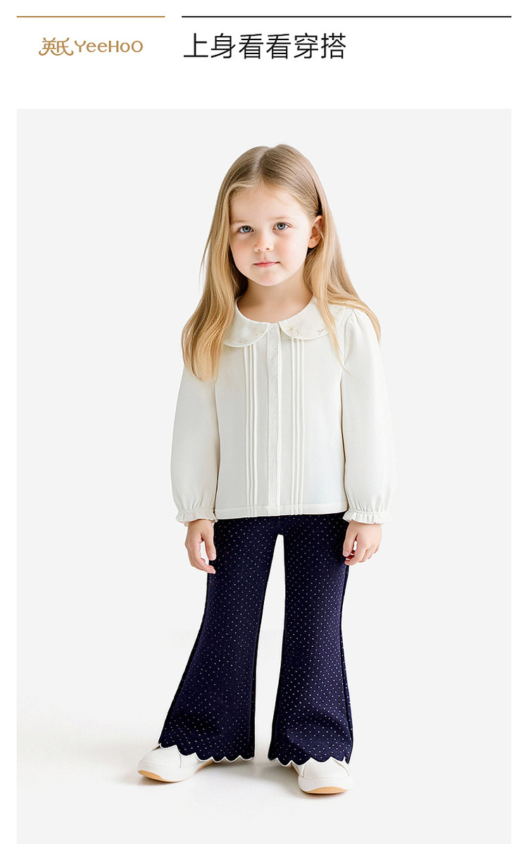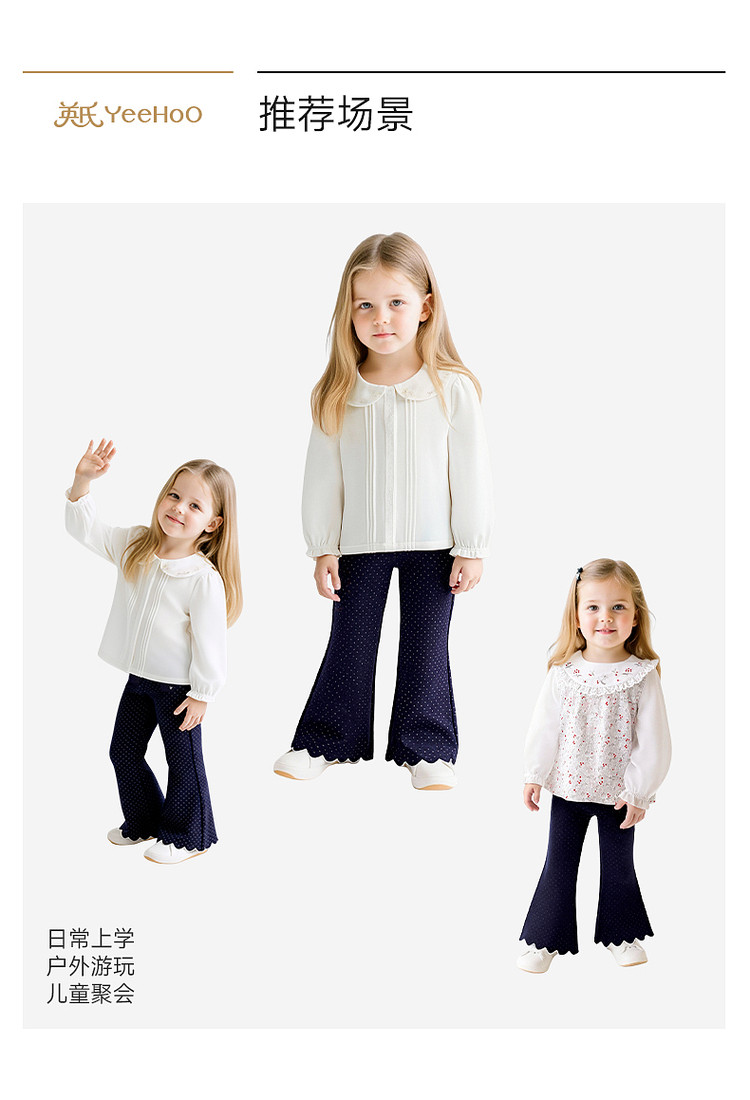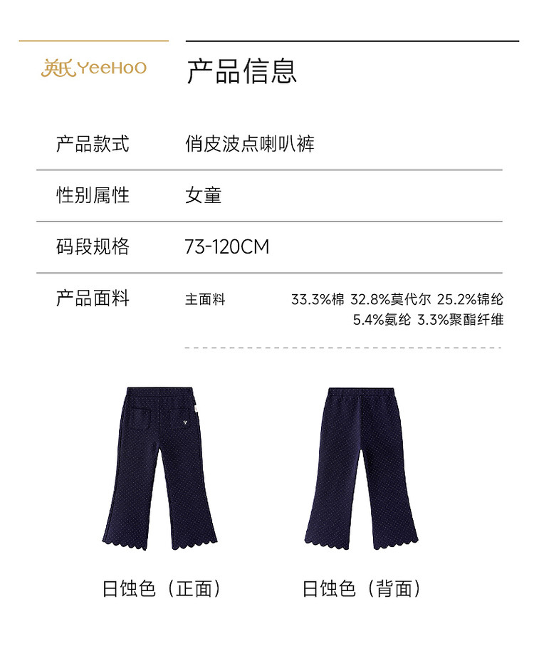 英氏女童微喇花边长裤春夏新款儿童百搭波点休闲裤子YRKCJ1S001A
