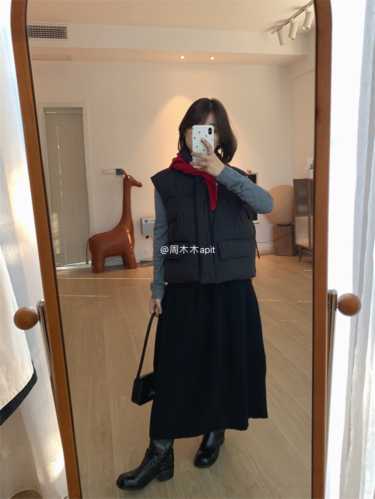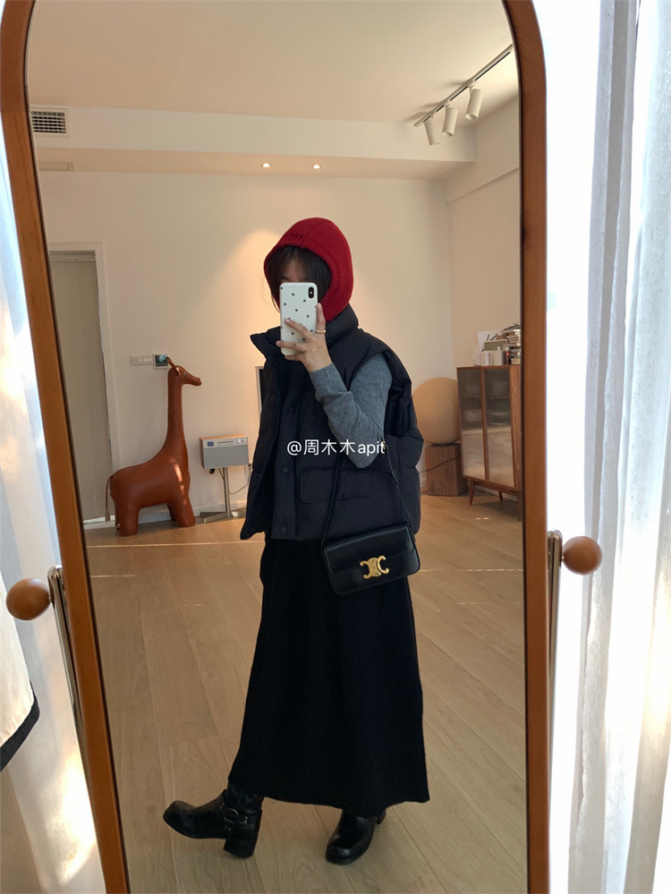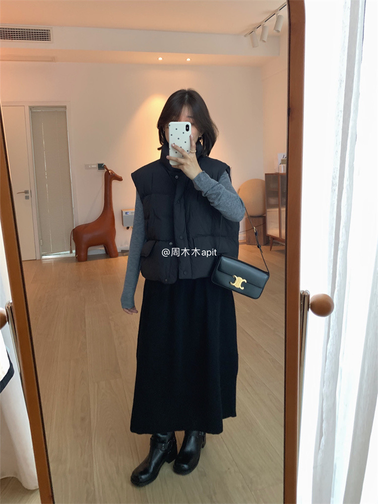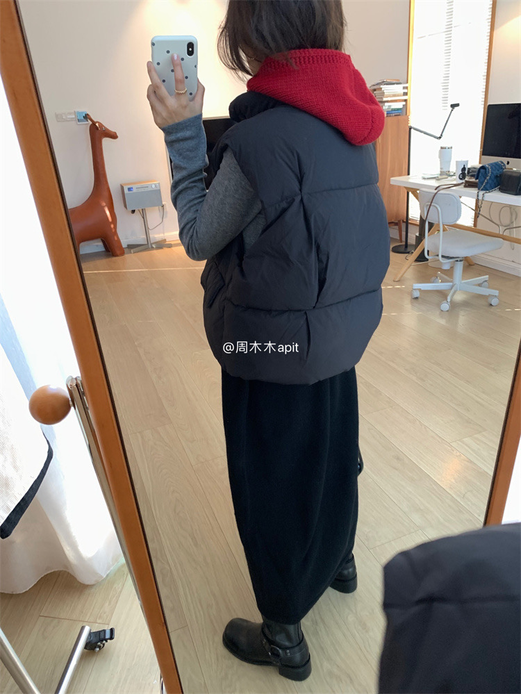 2色都自留了!黑色当然是首选,耐穿百搭没有它可不行,这件白色好干净有松软感,很少有马甲我会留2色的,这款真的赞!