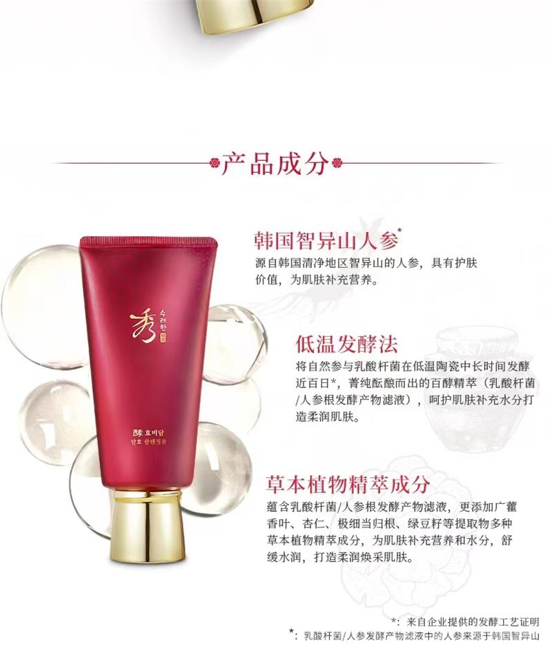 秀雅韩sooryehan酵滋养泡沫洁面膏