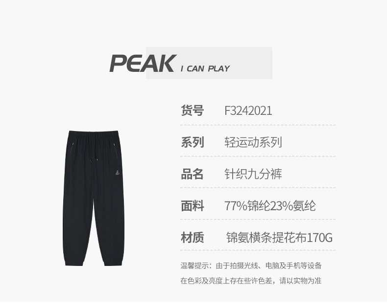 匹克2024年新款轻运动系列男款针织九分裤F3242021