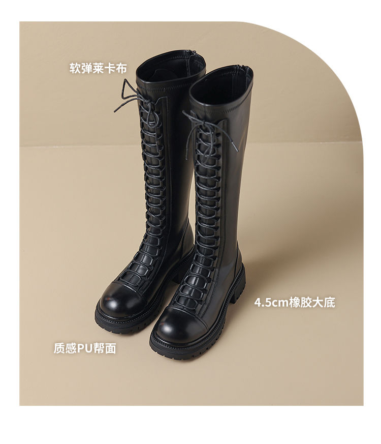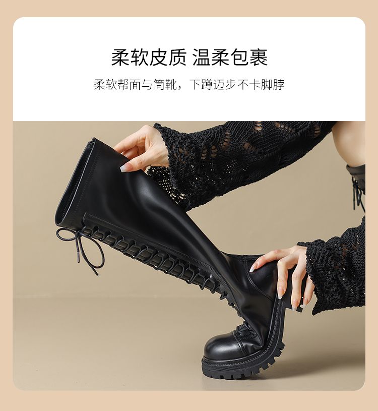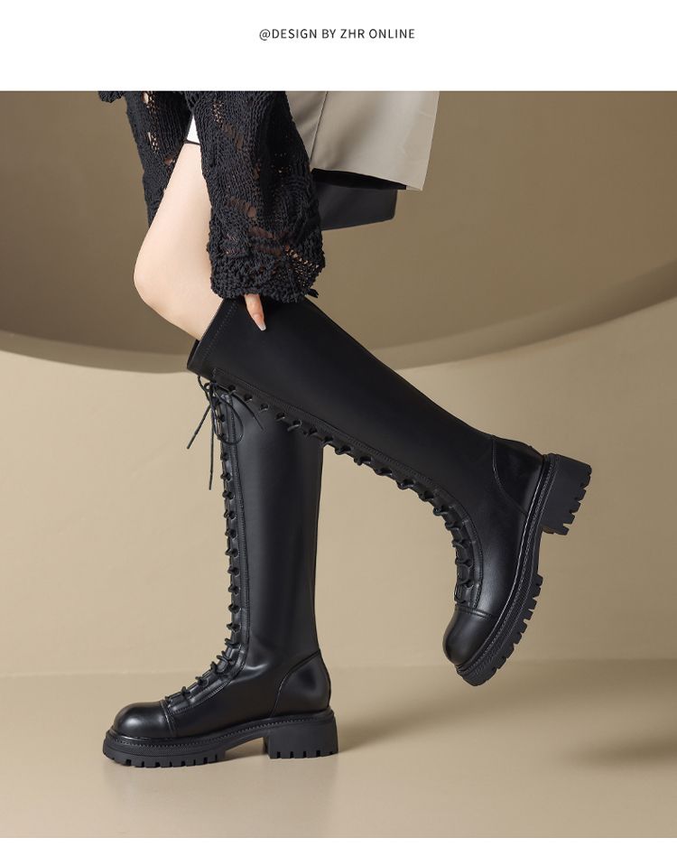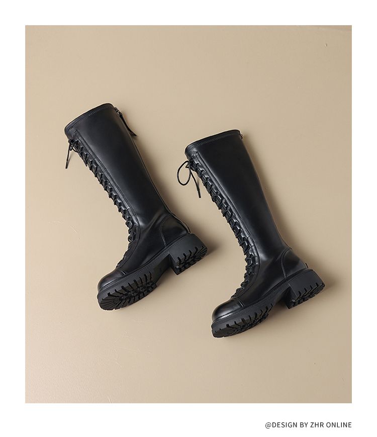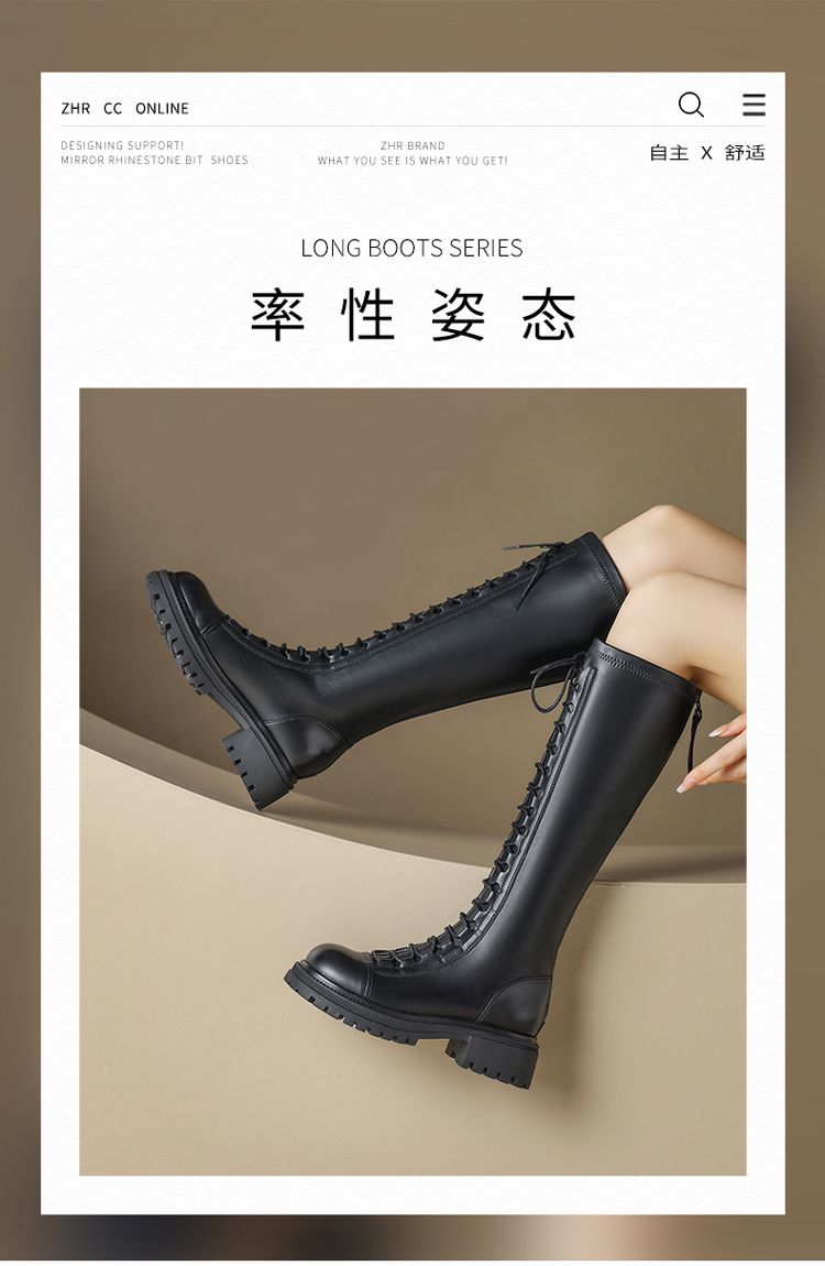 ZHR厚底长筒靴女骑士靴马丁靴女皮靴长靴子2023新款秋冬不过膝靴