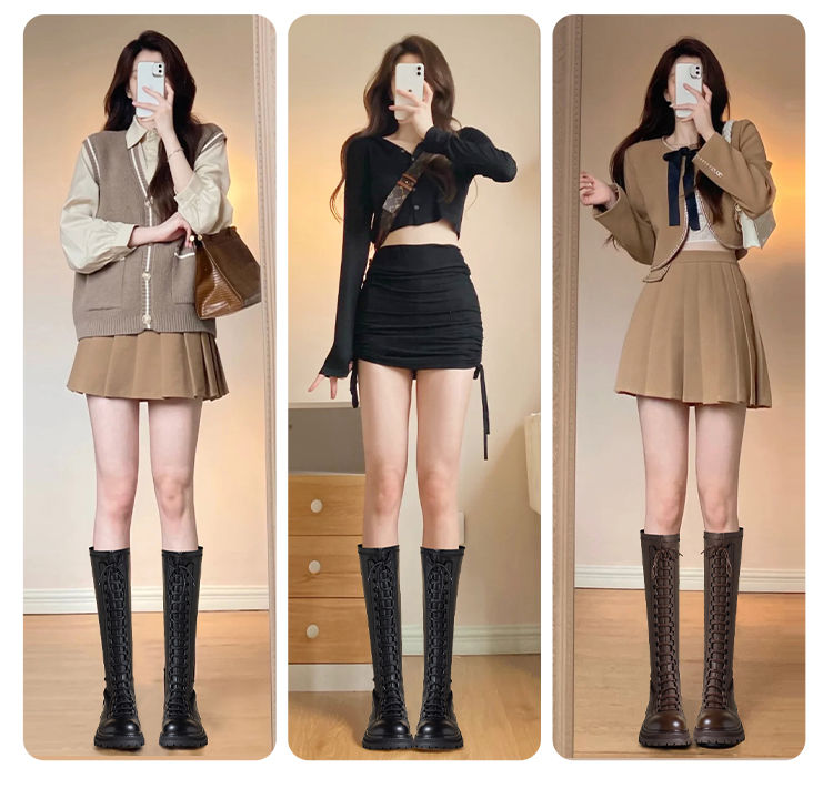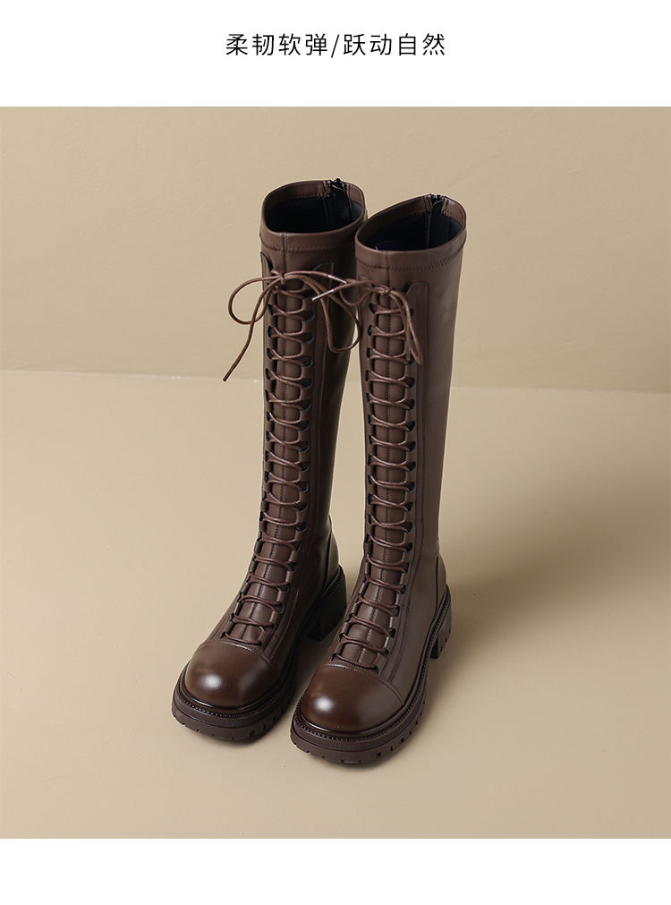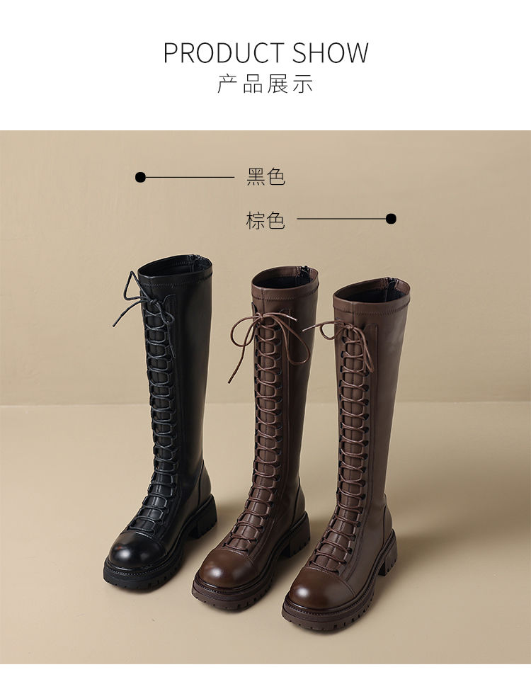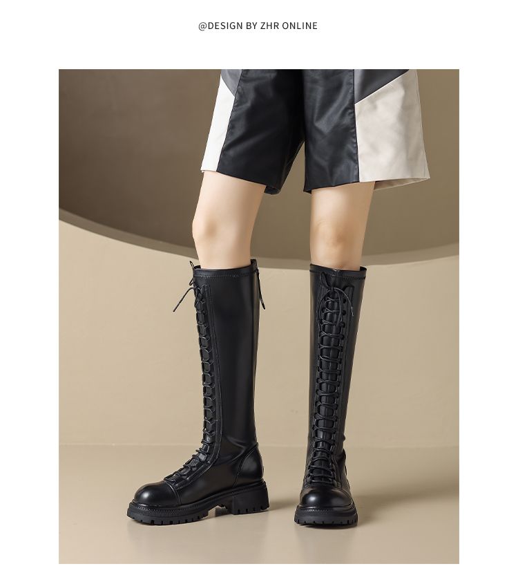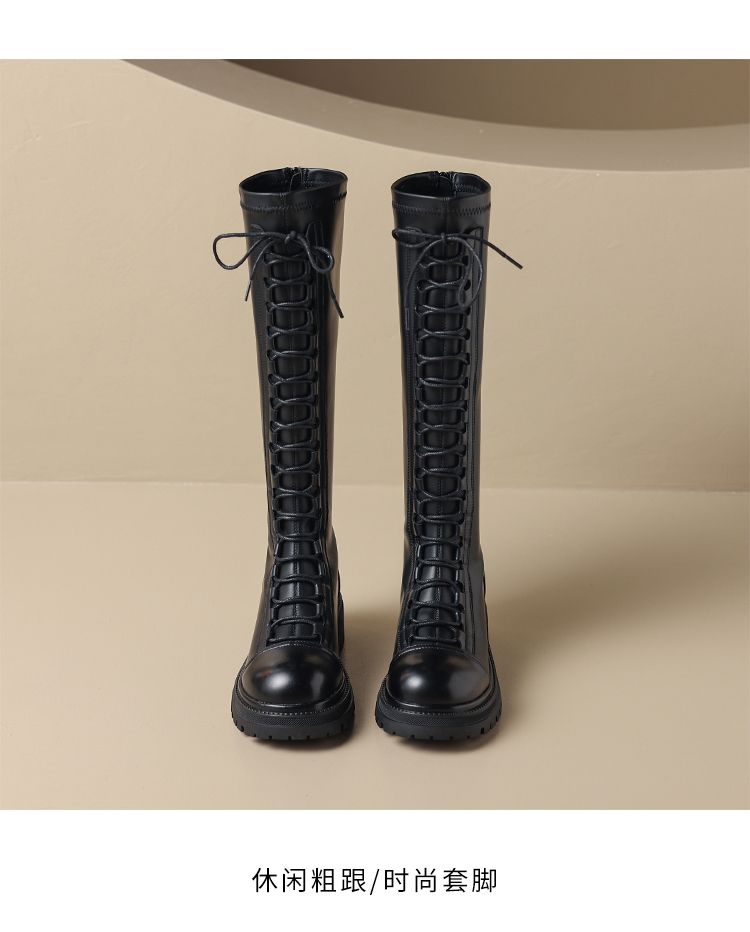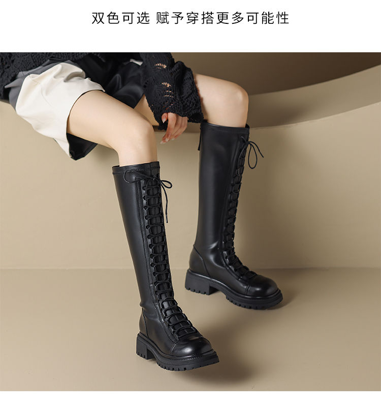 ZHR厚底长筒靴女骑士靴马丁靴女皮靴长靴子2023新款秋冬不过膝靴