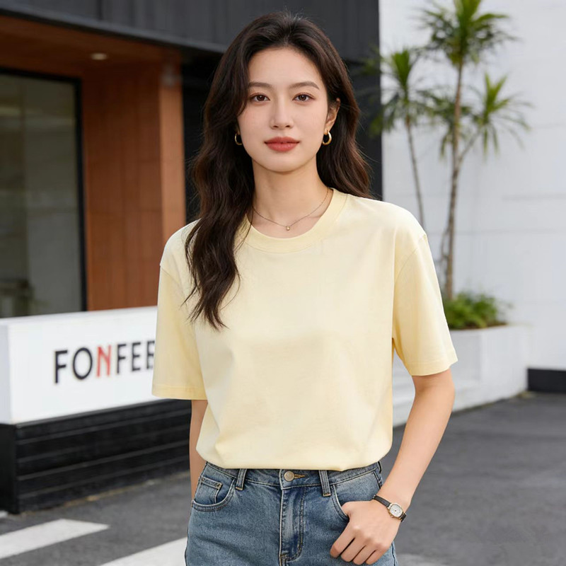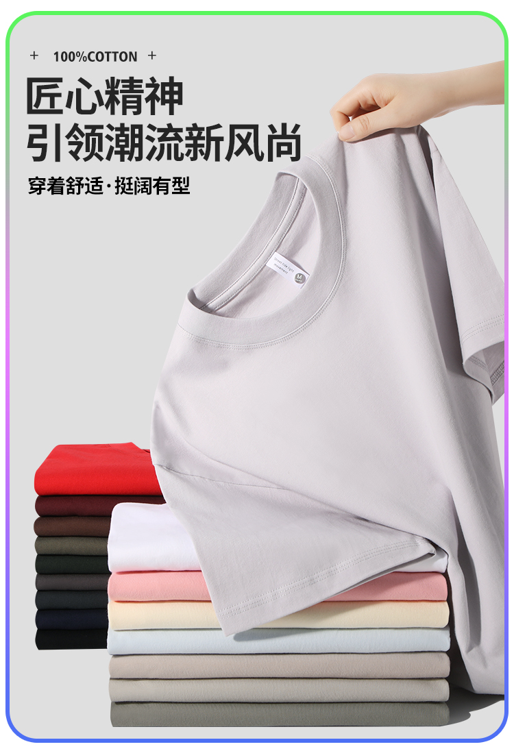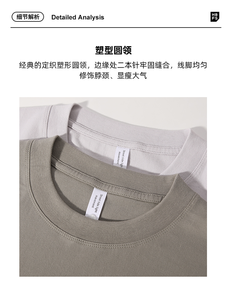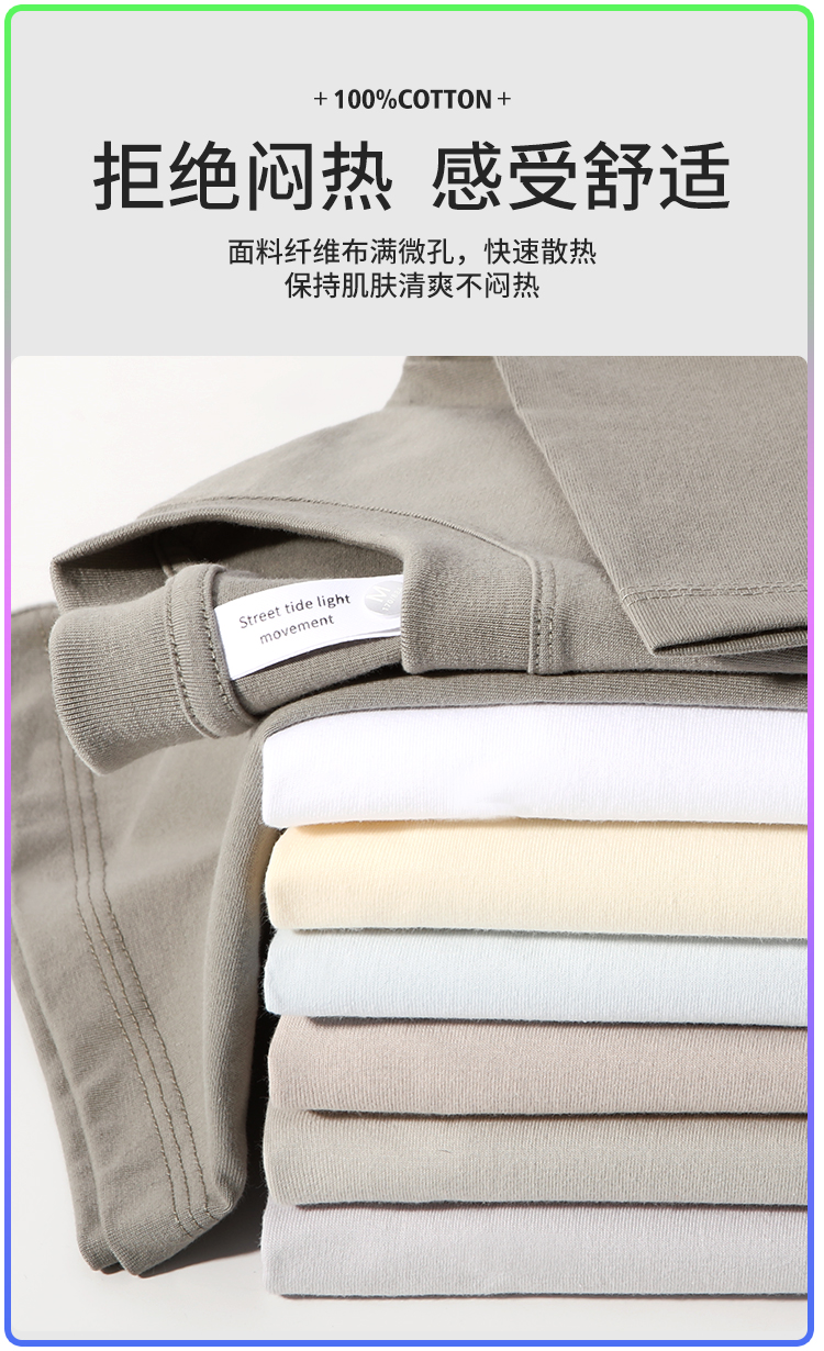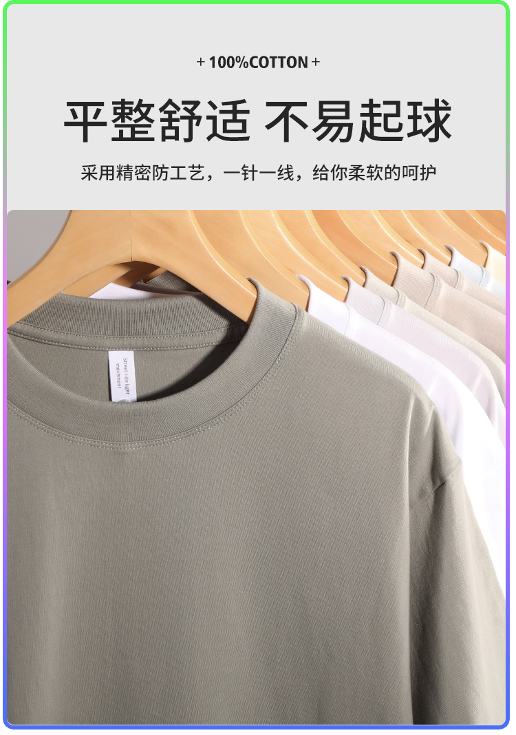 【49.9元2件】230G重磅精梳纯棉T恤宽松圆领正肩情侣款大码短袖三本针百搭潮流半袖S-XL★娃娃优选