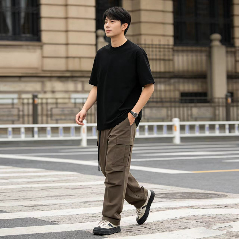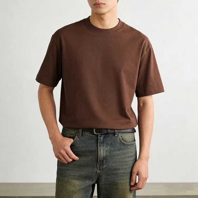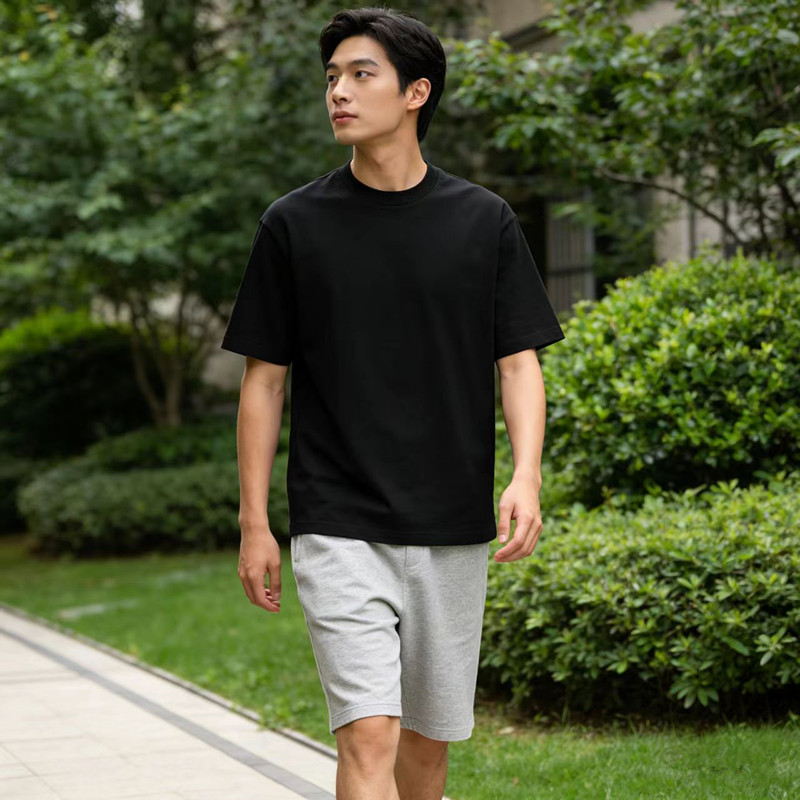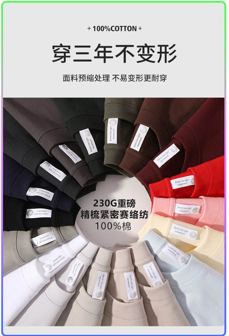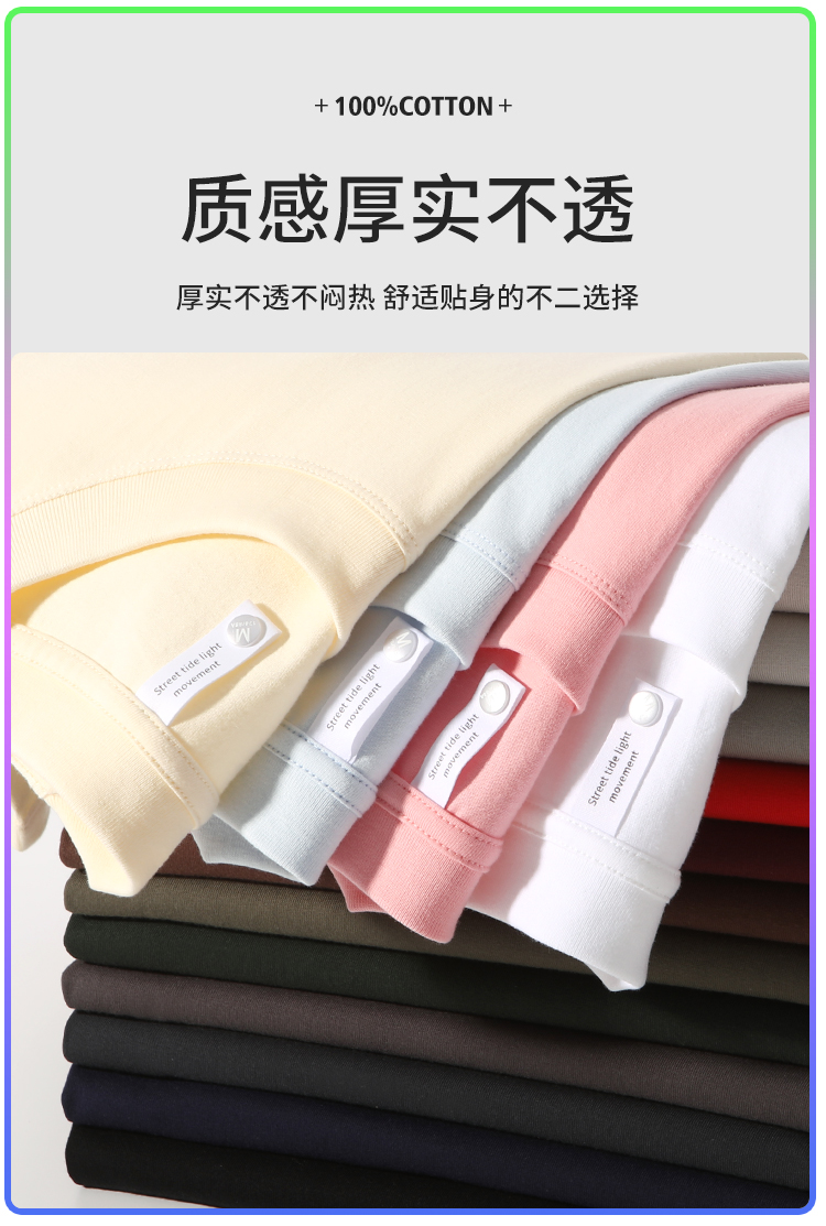 【49.9元2件】230G重磅精梳纯棉T恤宽松圆领正肩情侣款大码短袖三本针百搭潮流半袖S-XL★娃娃优选