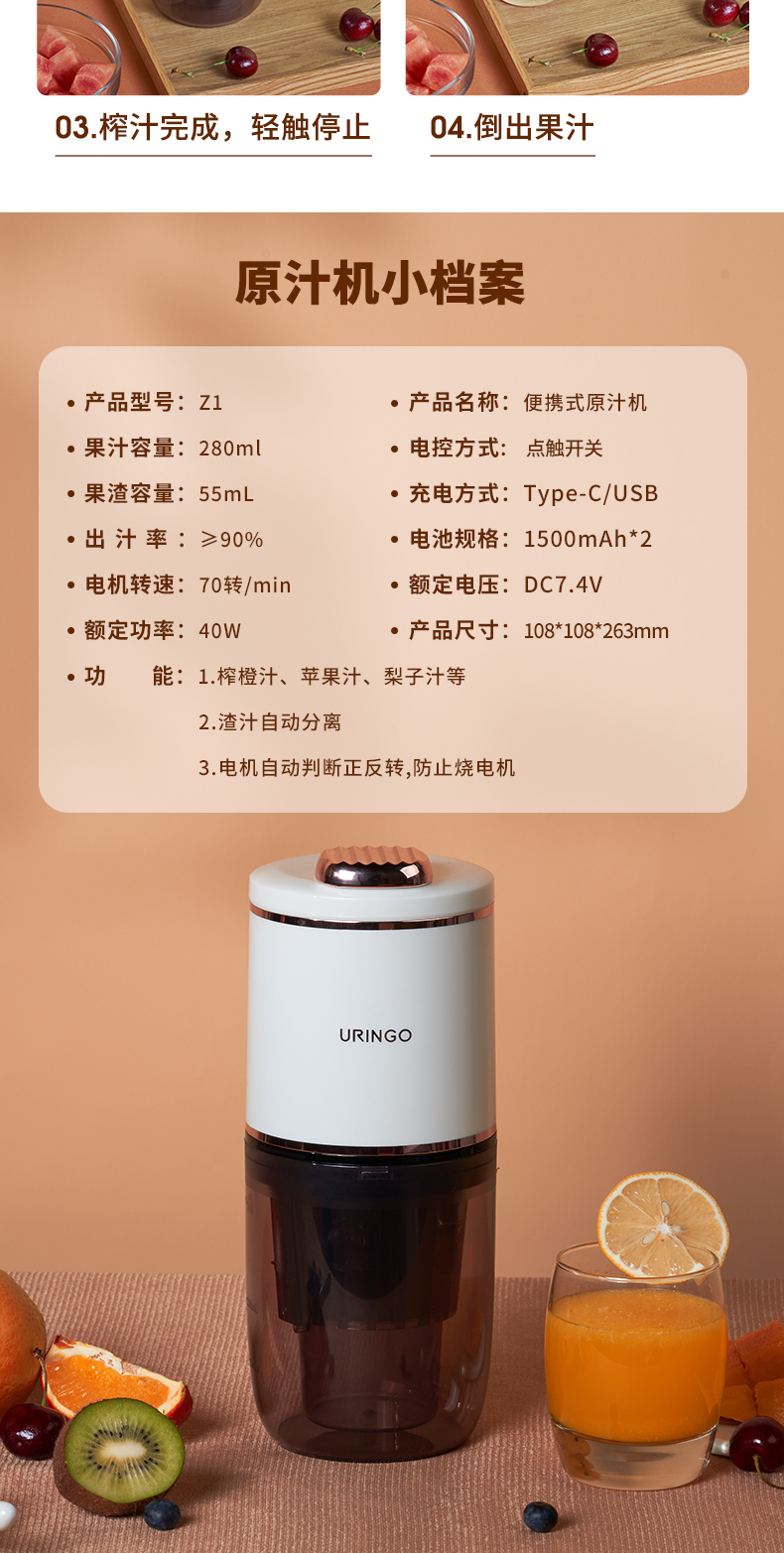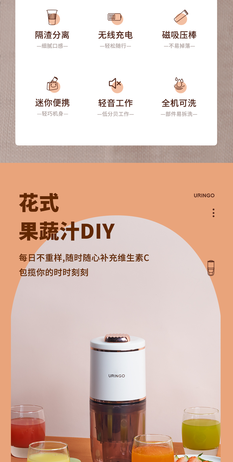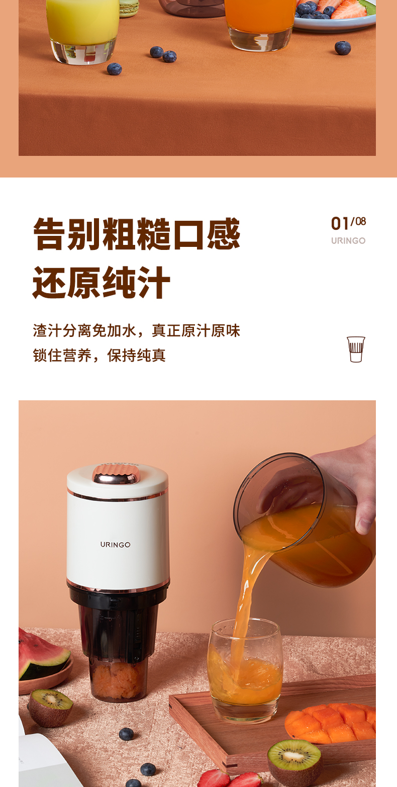 【原汁原味汁渣分离】七彩叮当无线原汁机迷你便携式无线榨汁机出汁率>90%无线充电全机可洗持久续航