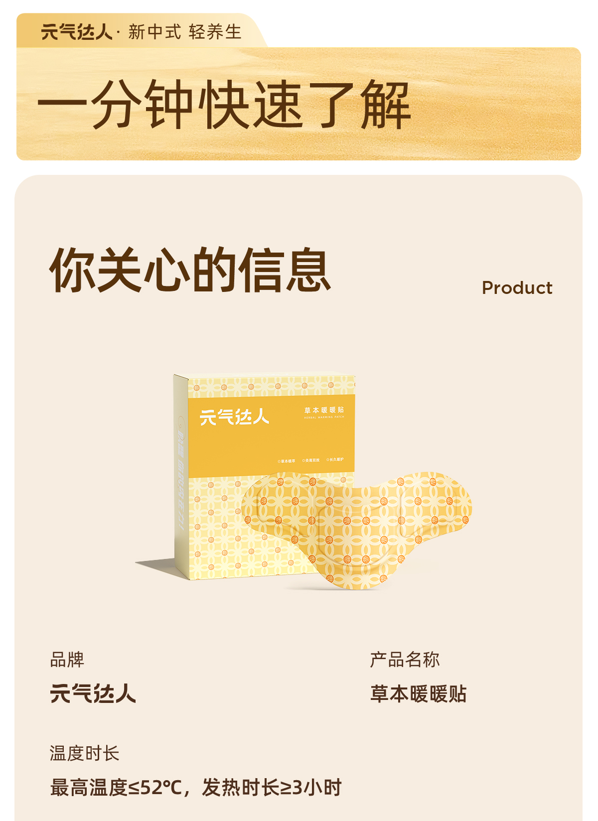 元气达人草本暖暖贴 蒸汽热敷 灸膏双效 温暖腰腹