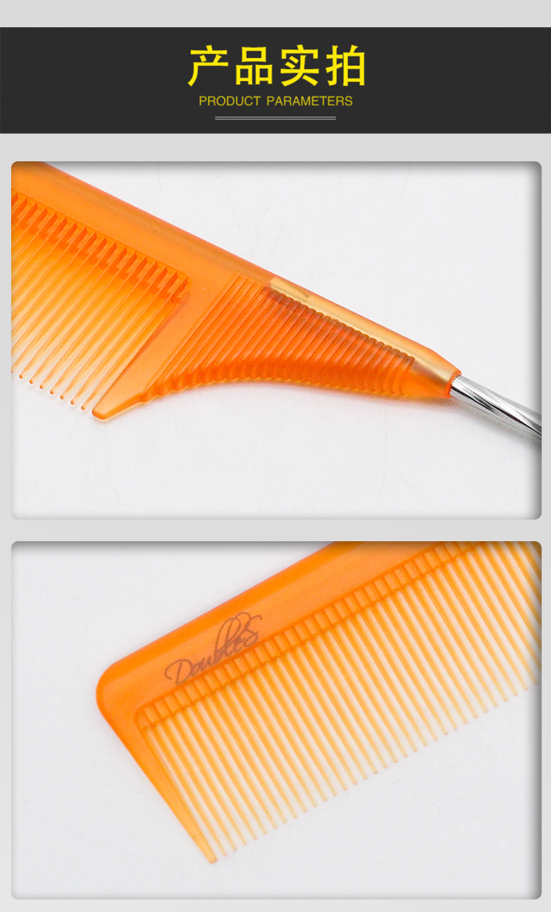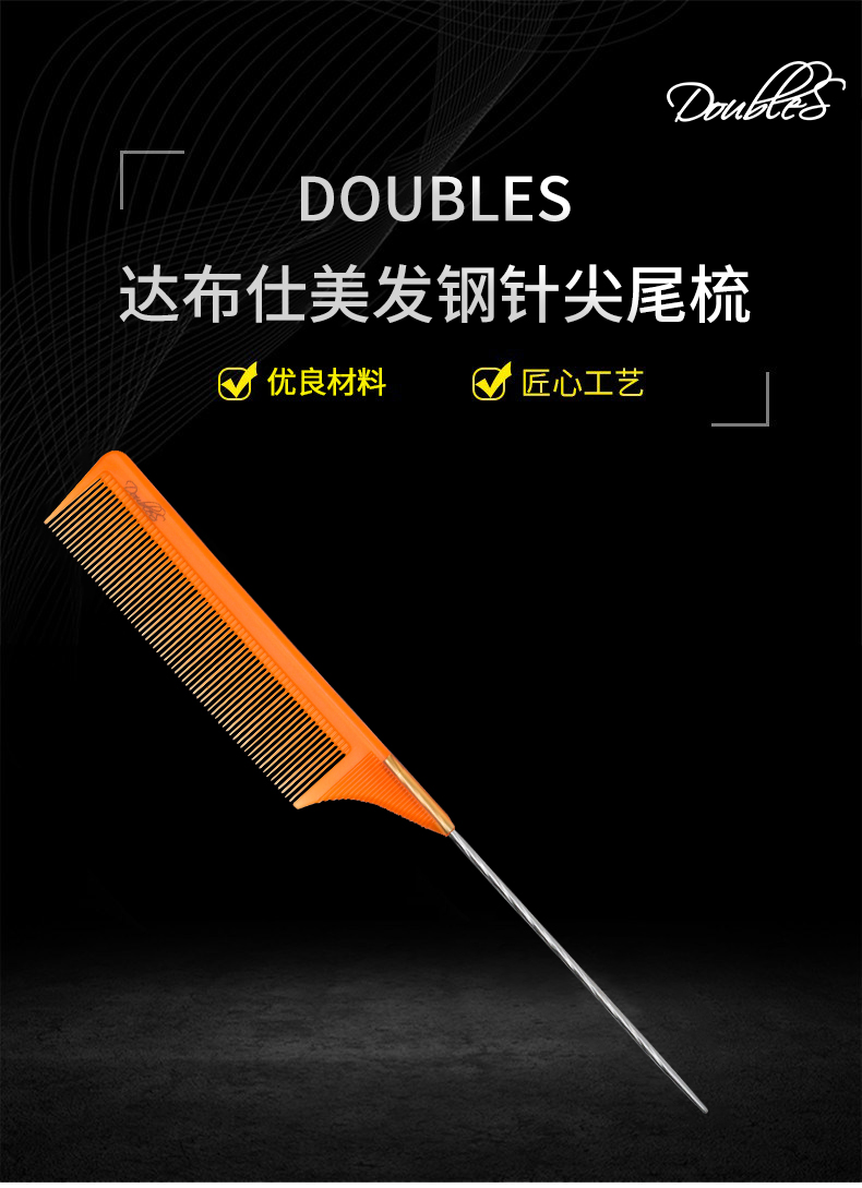 Doubles 达布仕理发剪发梳子透橙色/裁剪梳尖尾梳 美发钢针挑梳盘发分区梳子