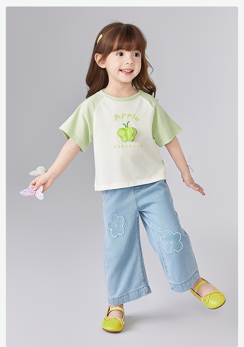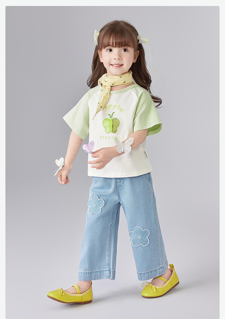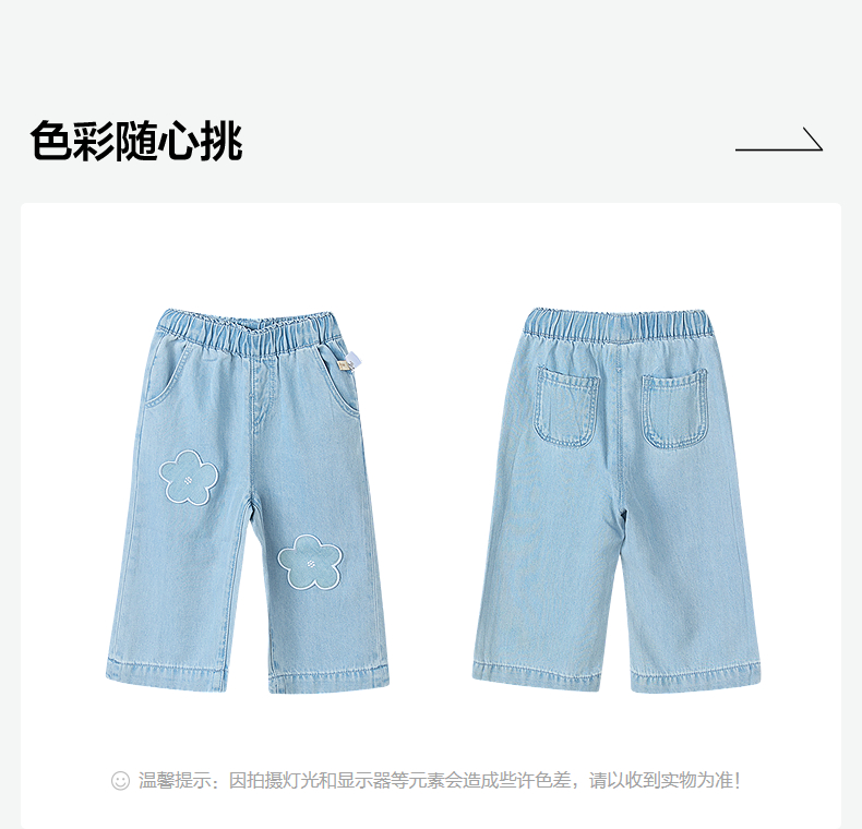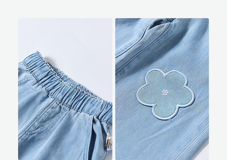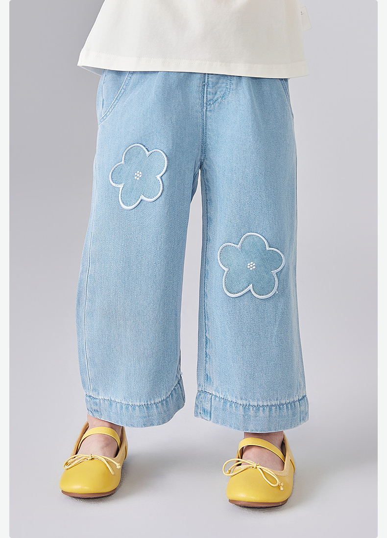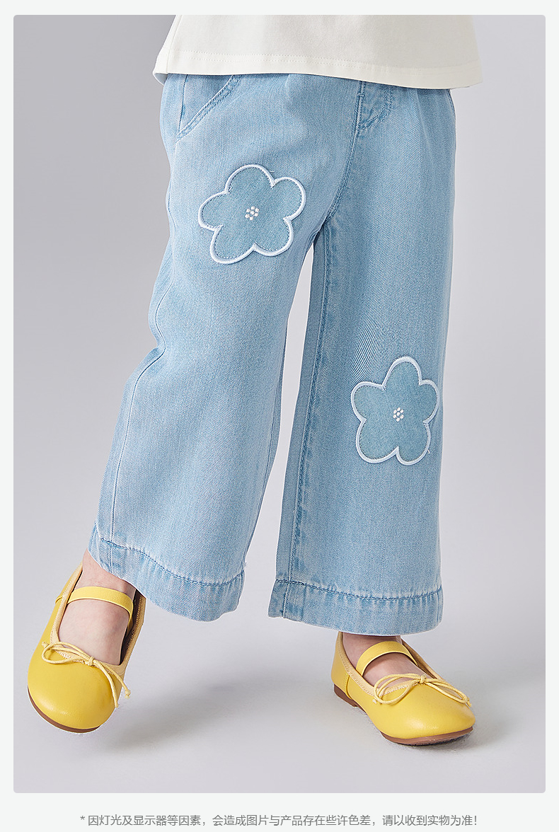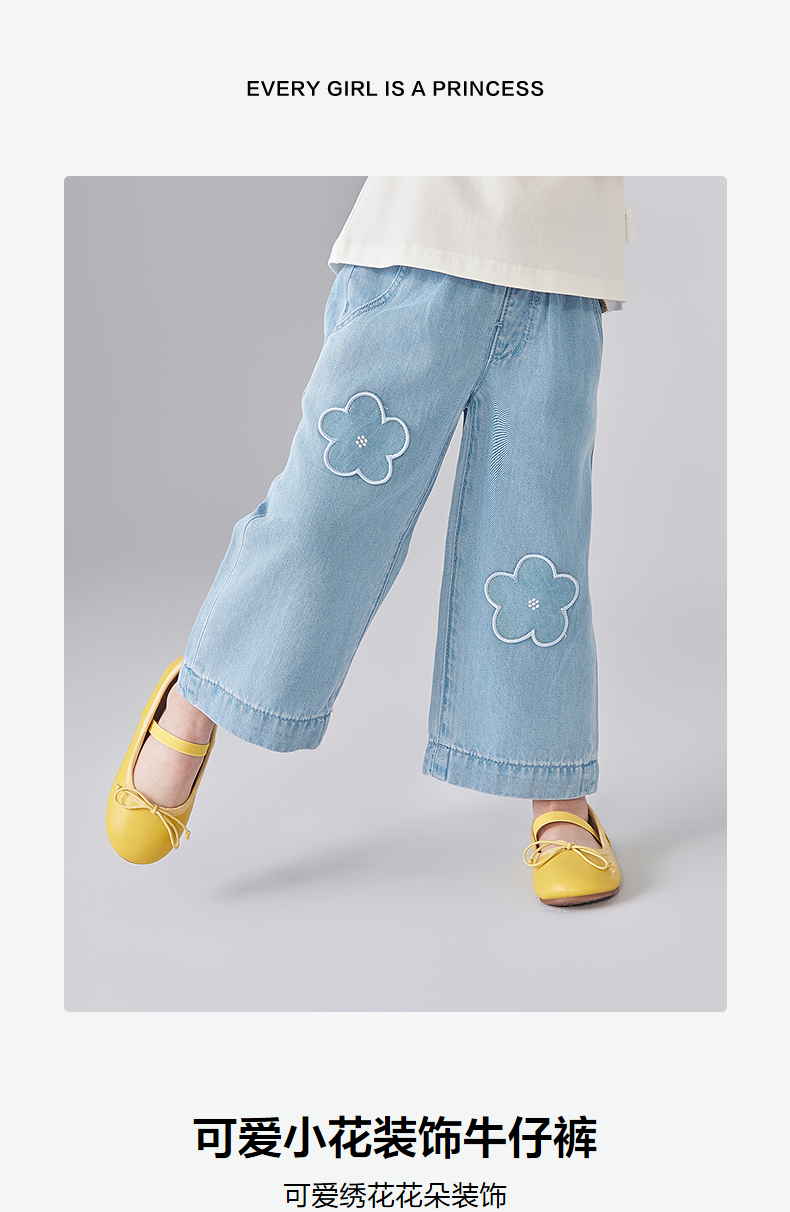 笛莎Deesha 童装女童裤子2025夏新款女童可爱小花装饰牛仔裤