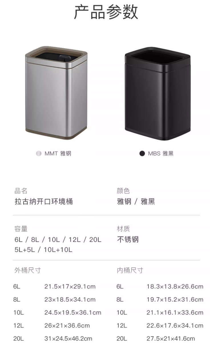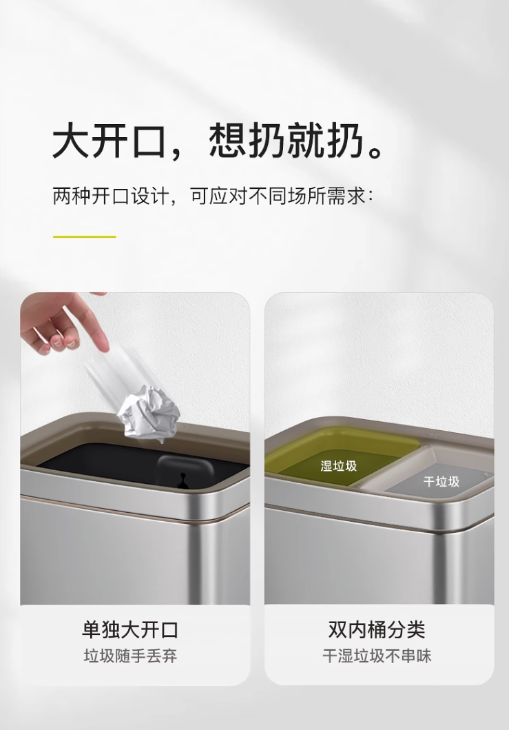 EKO无盖垃圾桶家用客厅厨房办公室现代简约大号轻奢高颜值垃圾桶