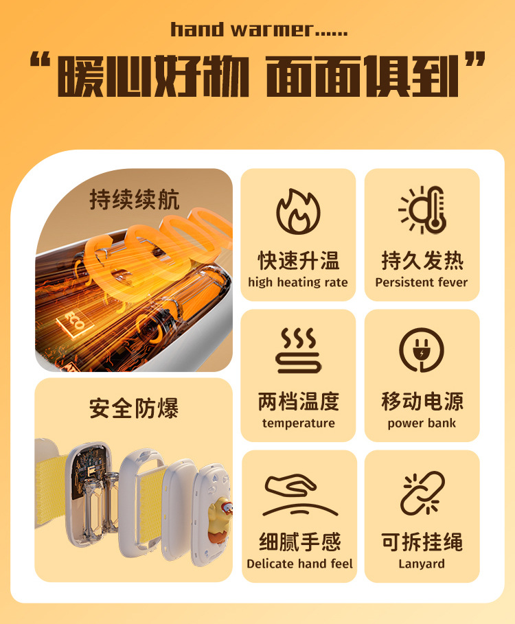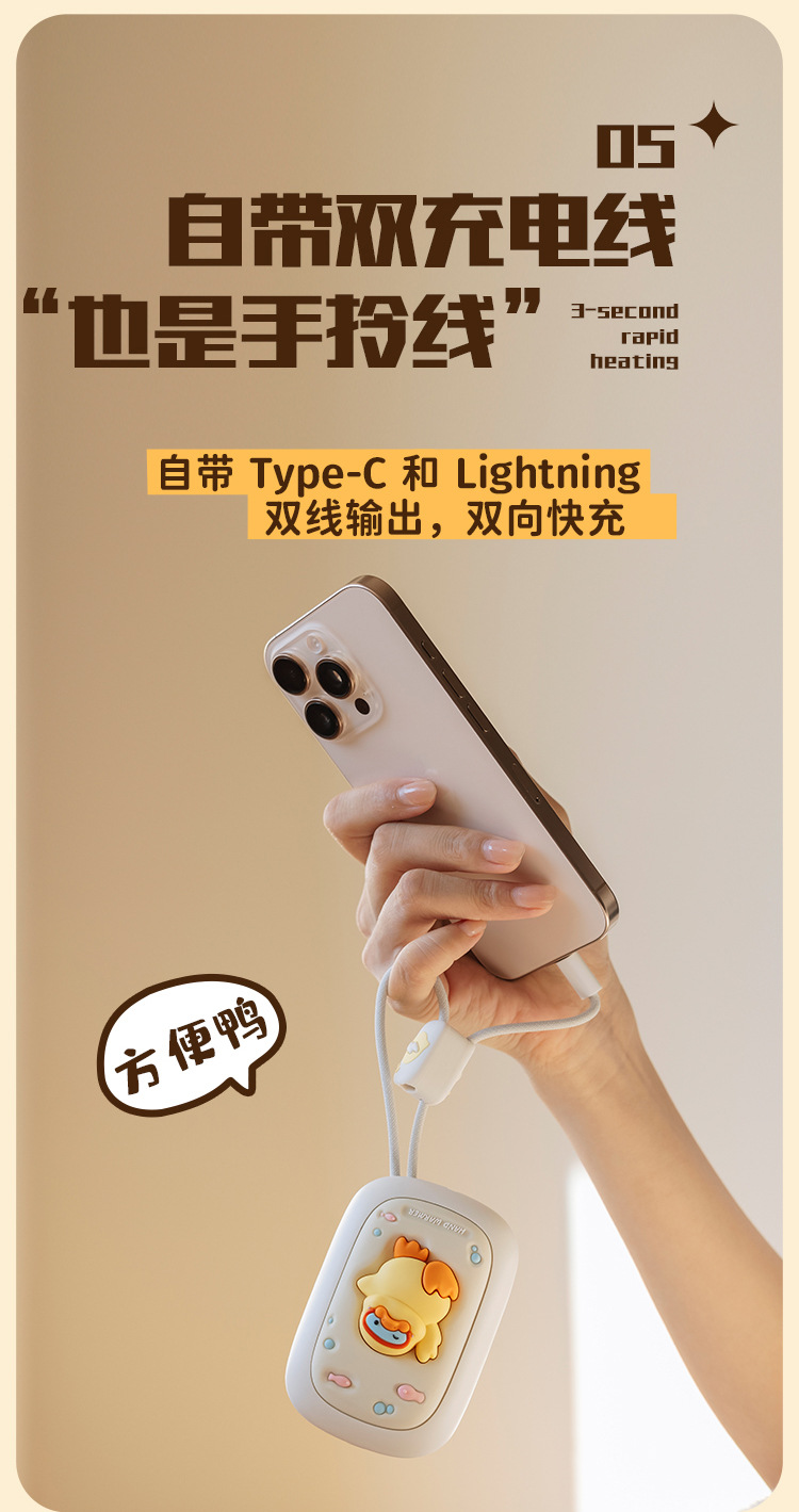 秋冬【暖手宝充电宝】带线二合一 usb便携式迷你暖宝宝生日礼物调温