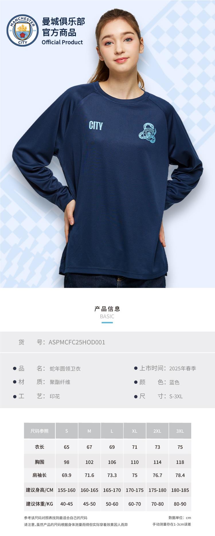 【官方正版】曼城俱乐部 | 2025蛇年藏蓝印花圆领卫衣简约