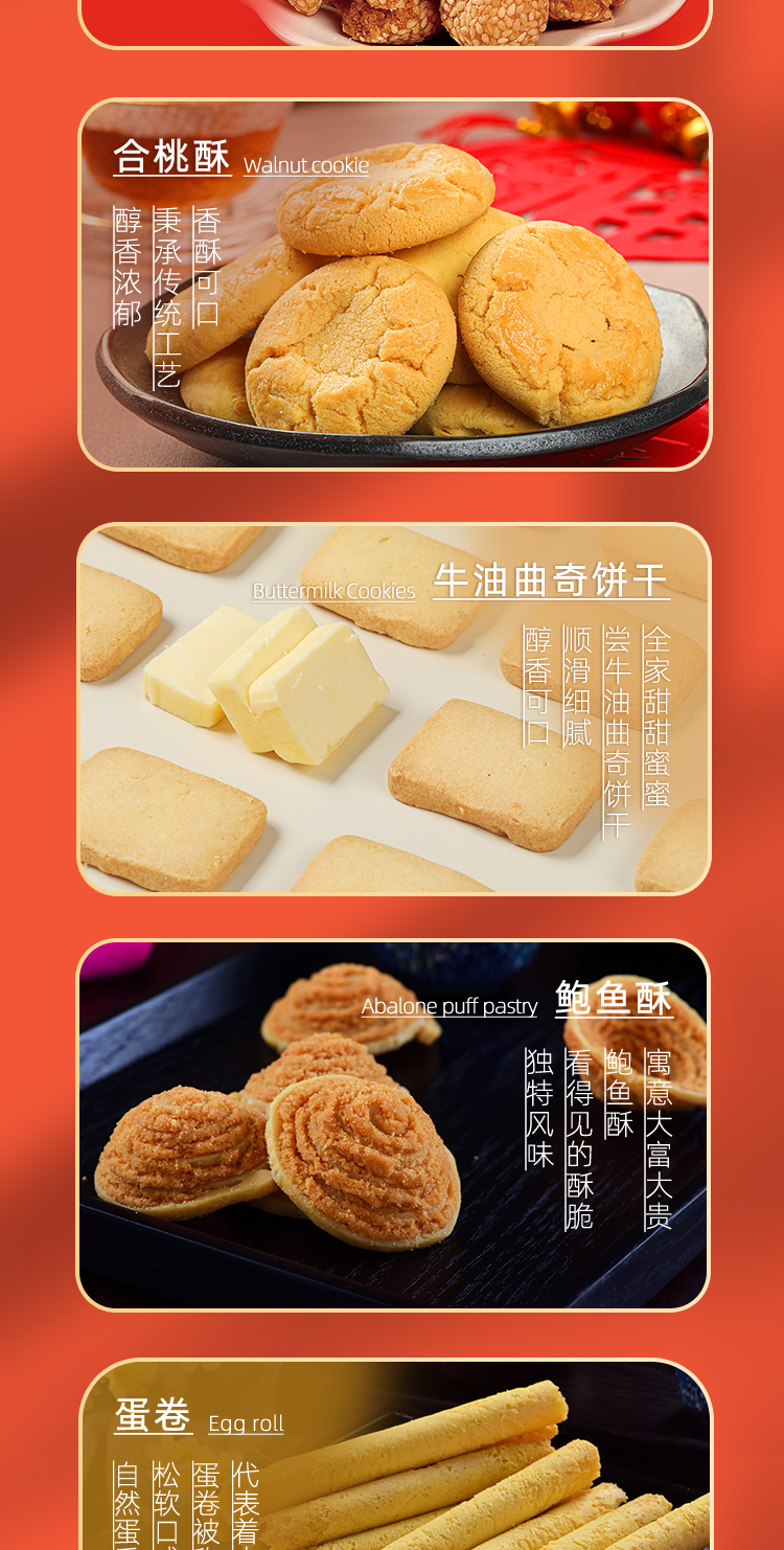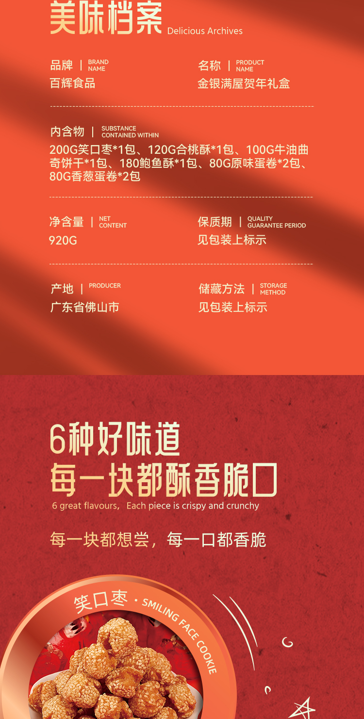 金银满屋贺年礼盒 牛油曲奇饼干笑口枣蛋卷鲍鱼酥 春节送礼