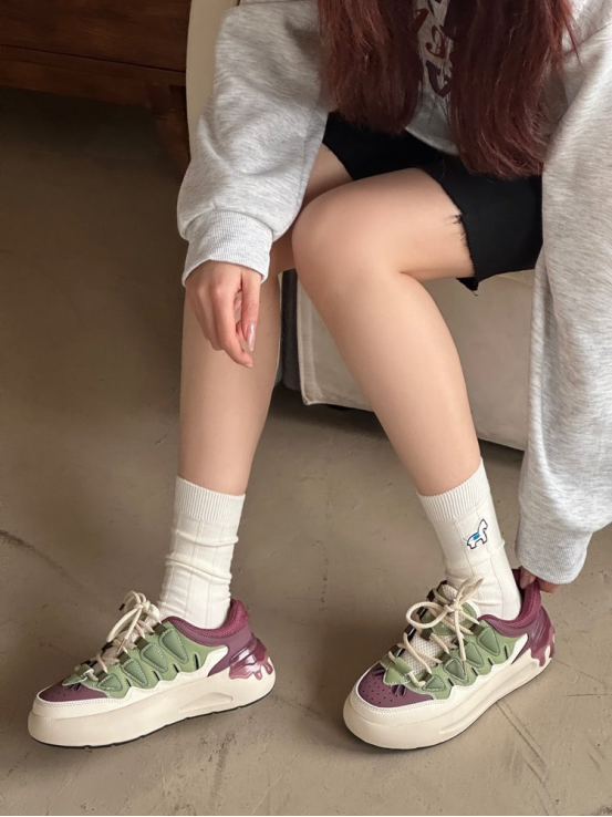 长在我心巴上的配色 侧面萝卜贴皮,真的好逼真立体 鞋后跟融化的冰淇淋直接拿捏我的心的 穿起来软软滴很舒服、还带些小增高啊啊啊