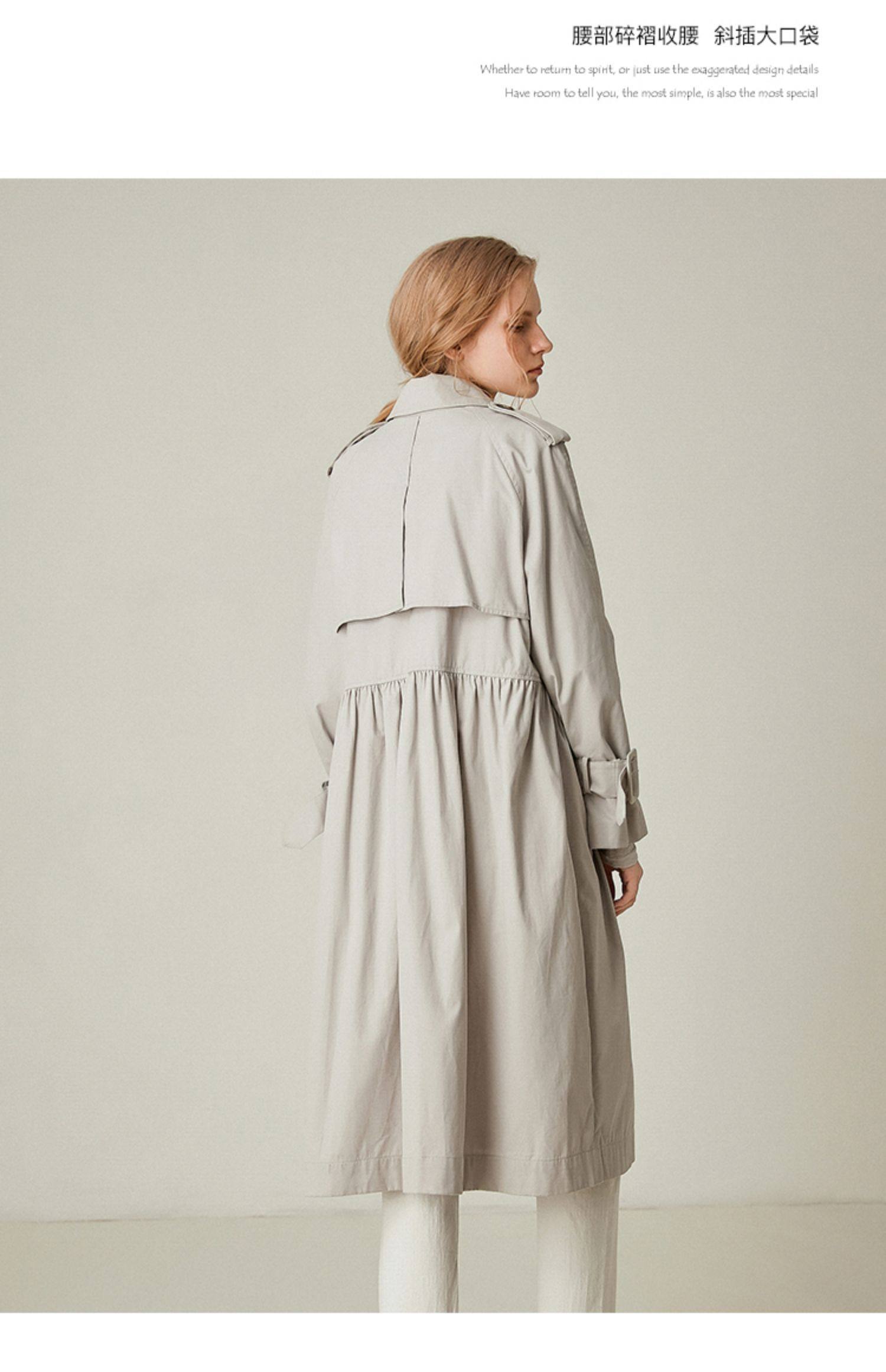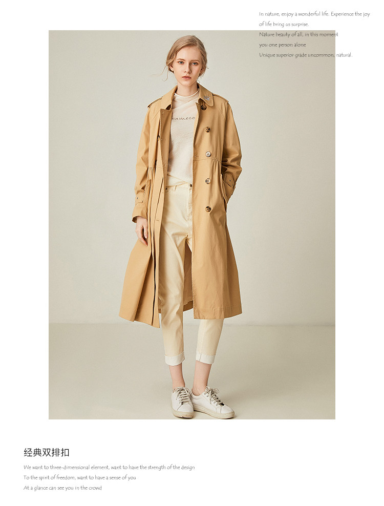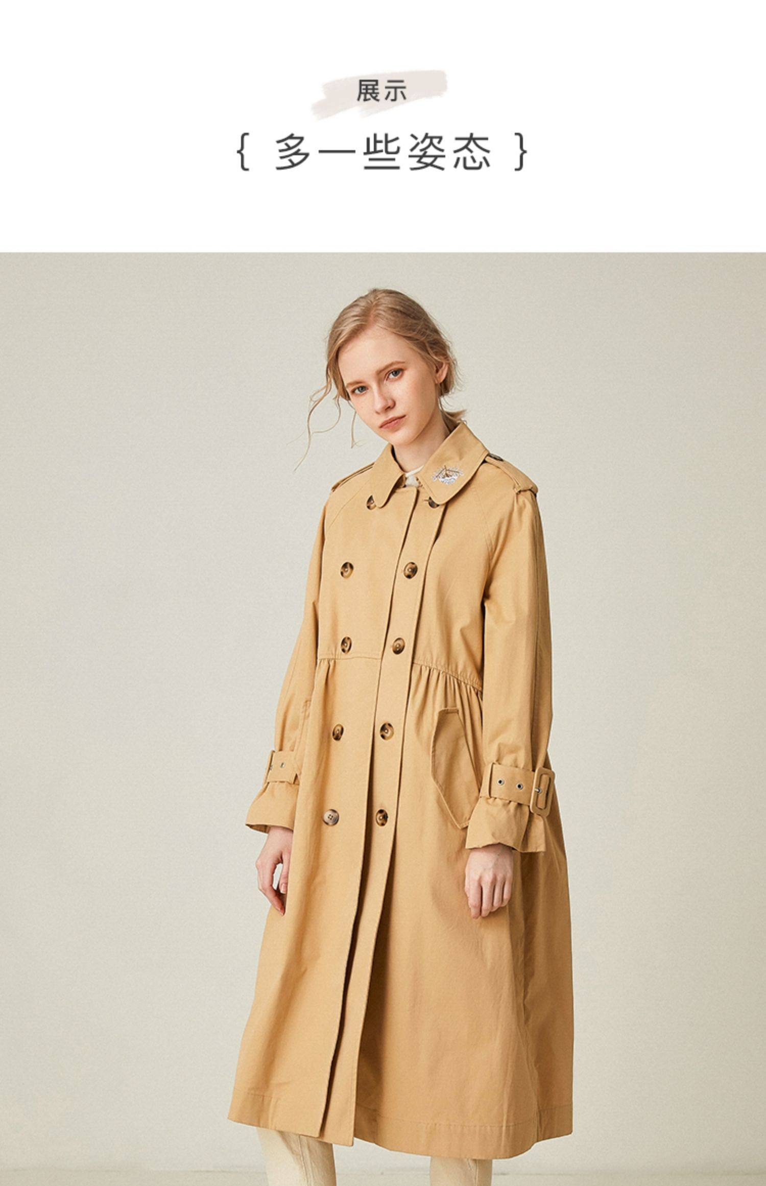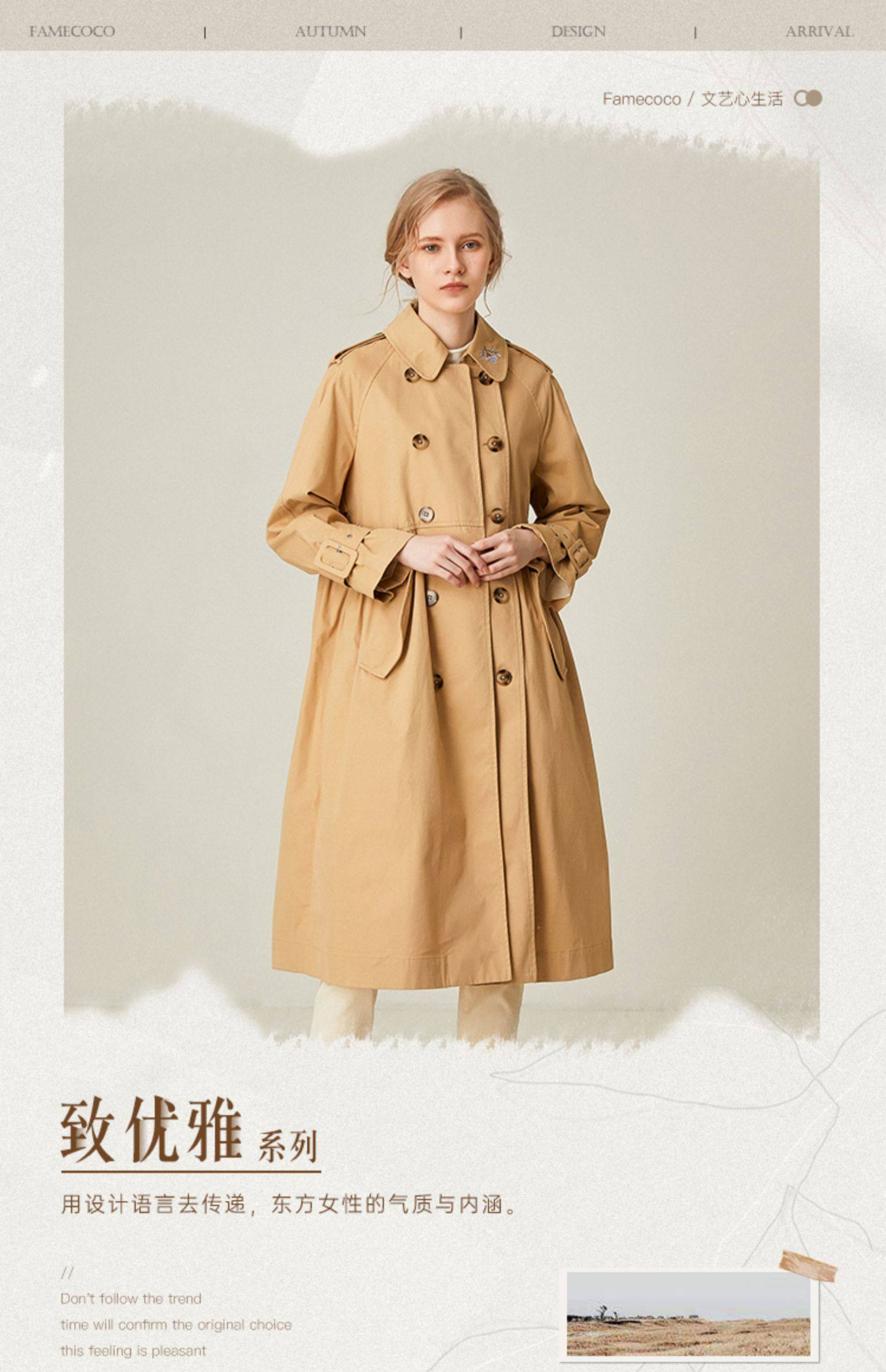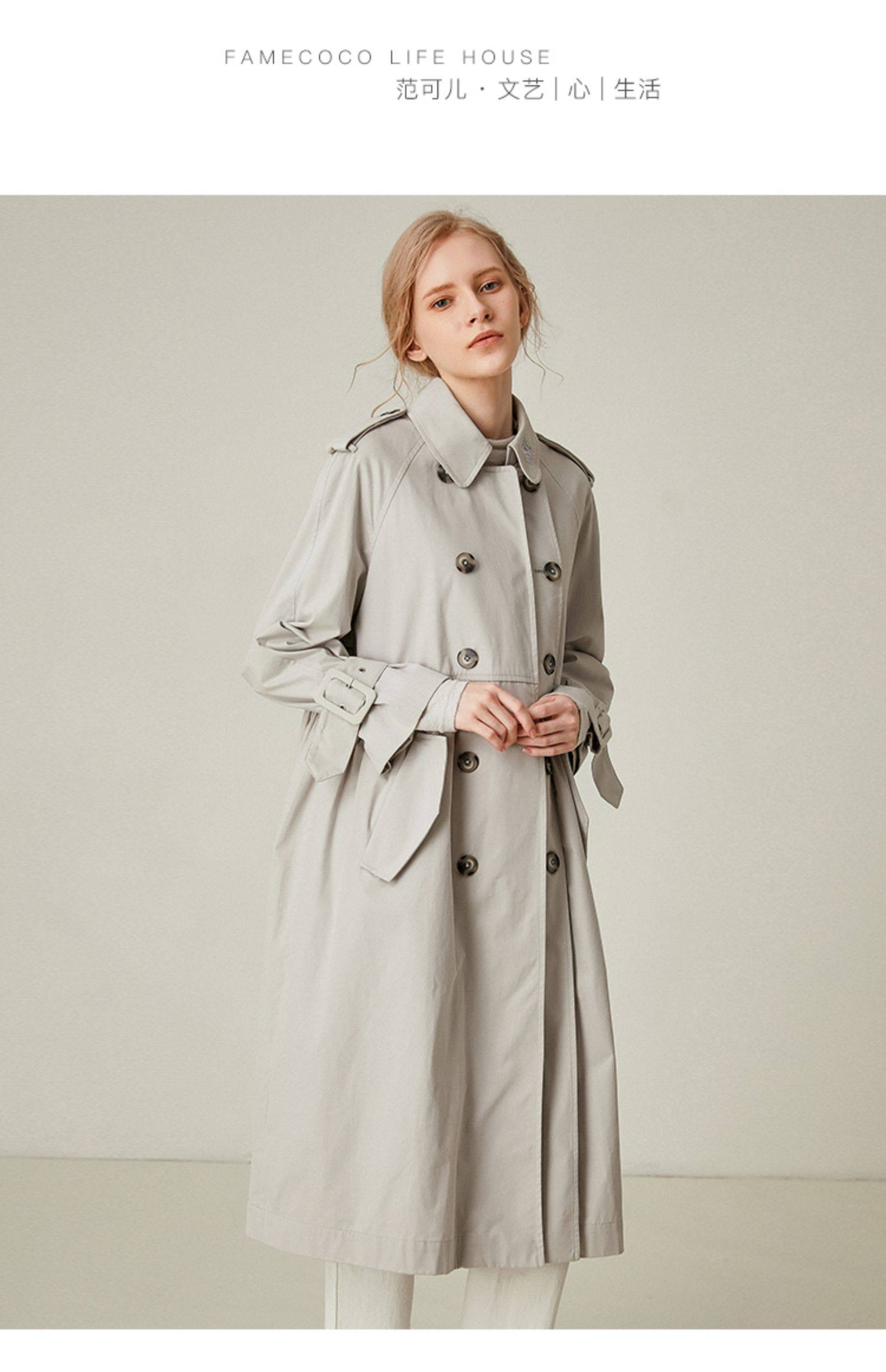 Famecoco范可儿风衣春秋女士中长款宽松休闲卡其色外套F195AA007