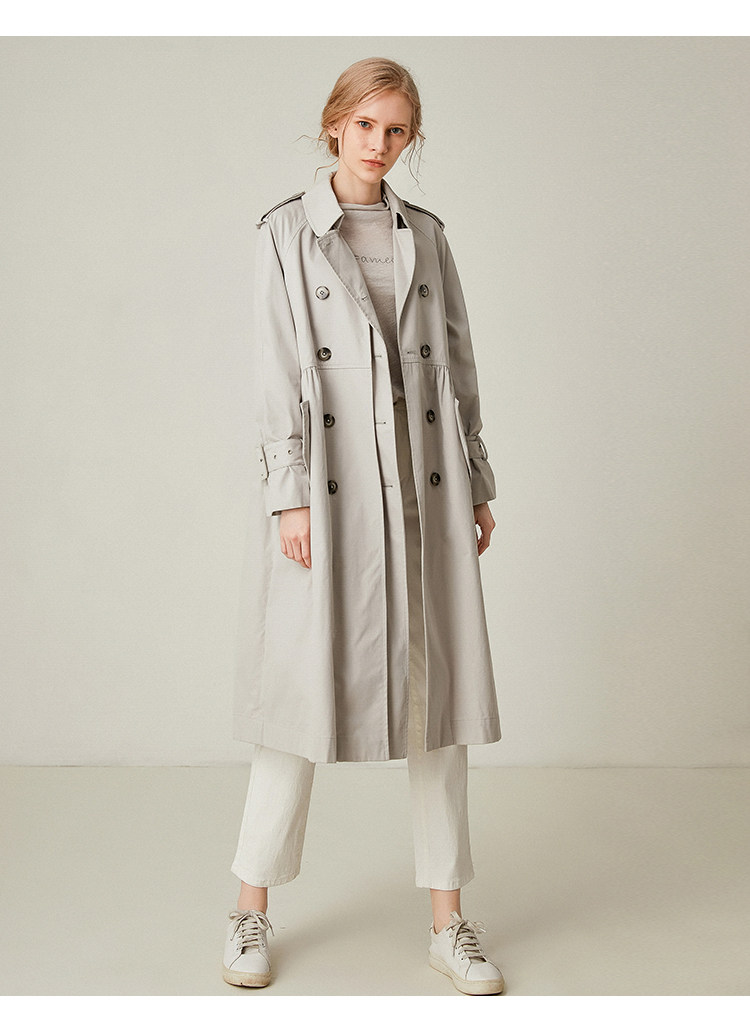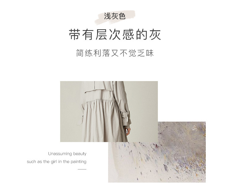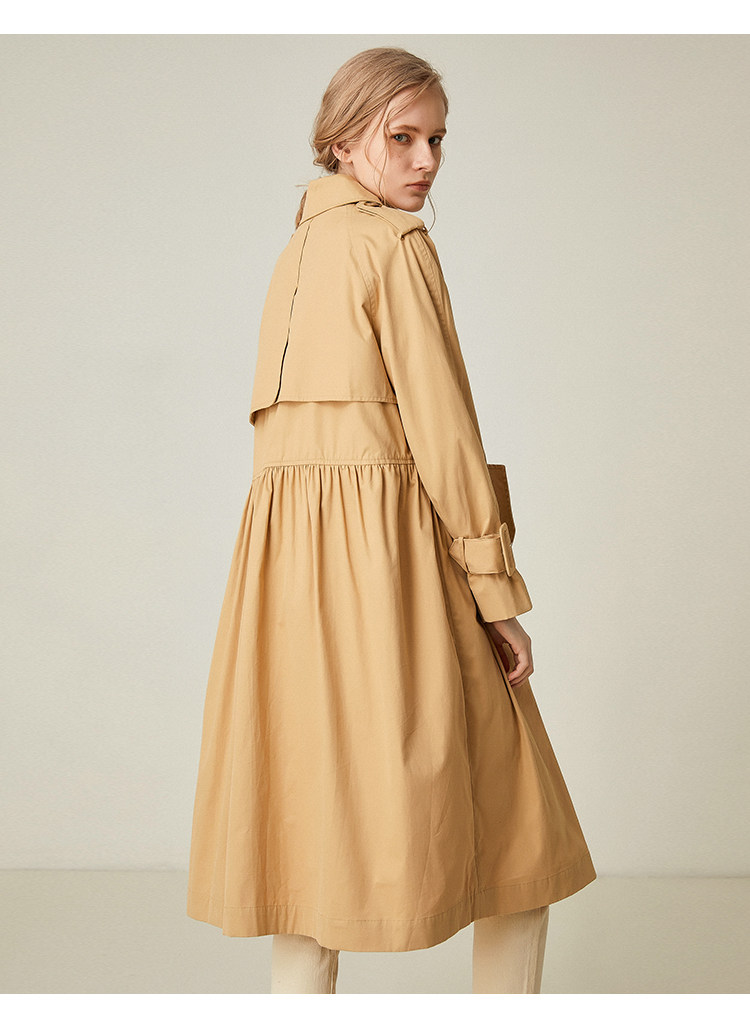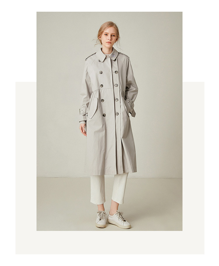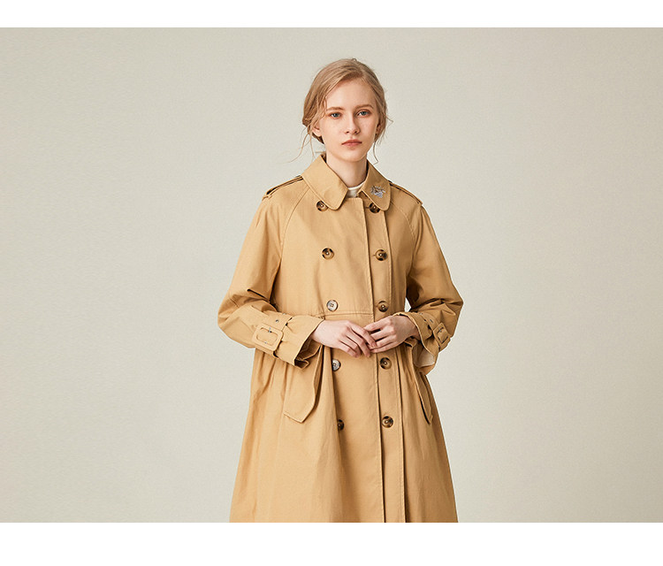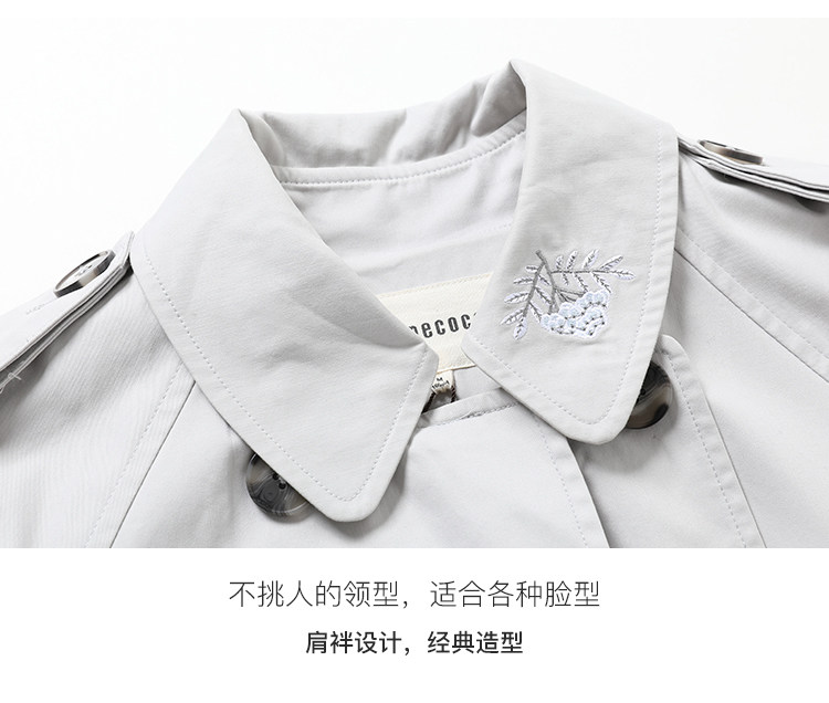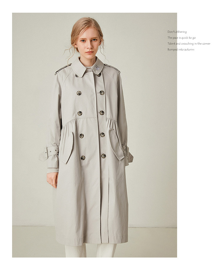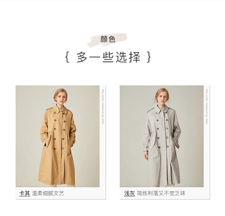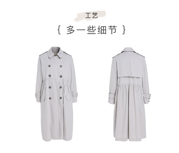 Famecoco范可儿风衣春秋女士中长款宽松休闲卡其色外套F195AA007