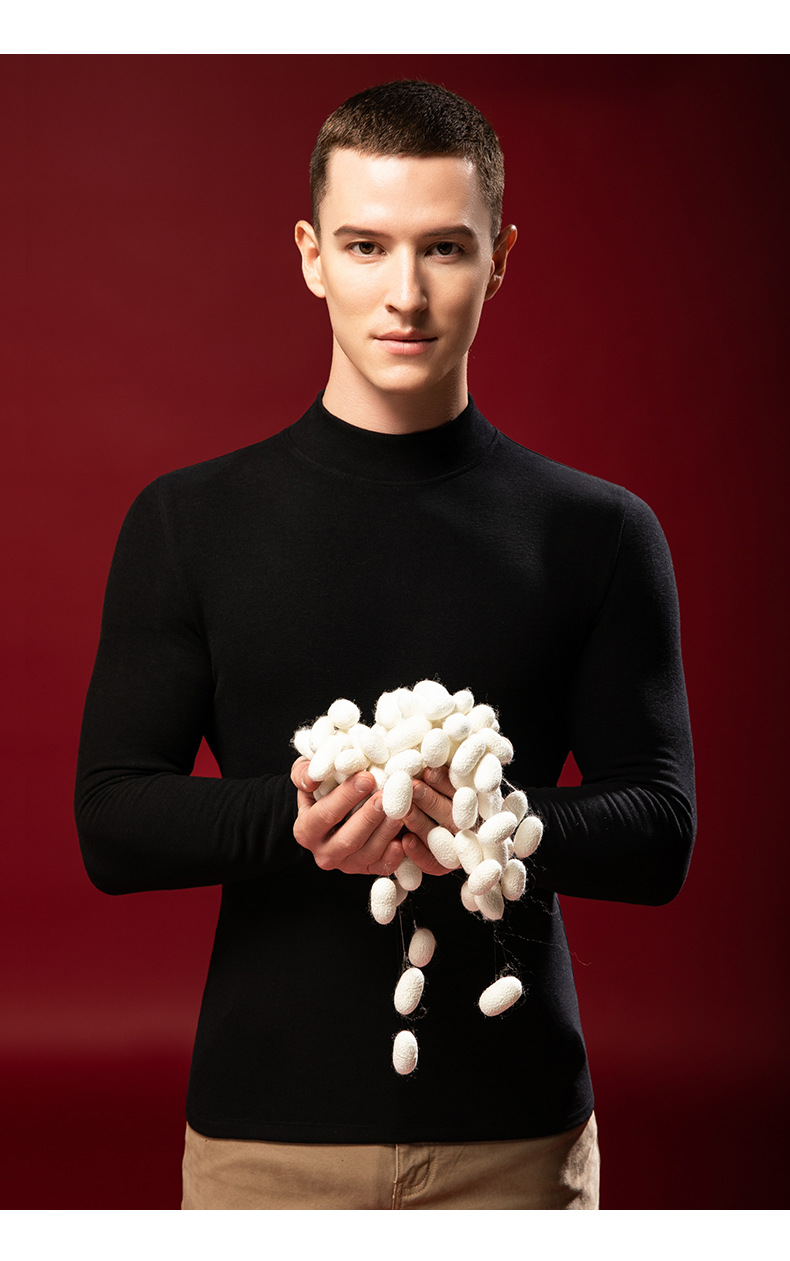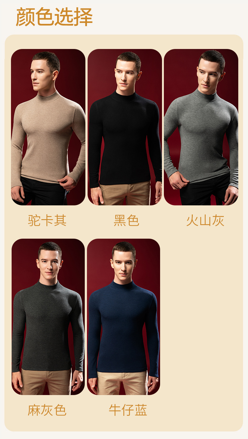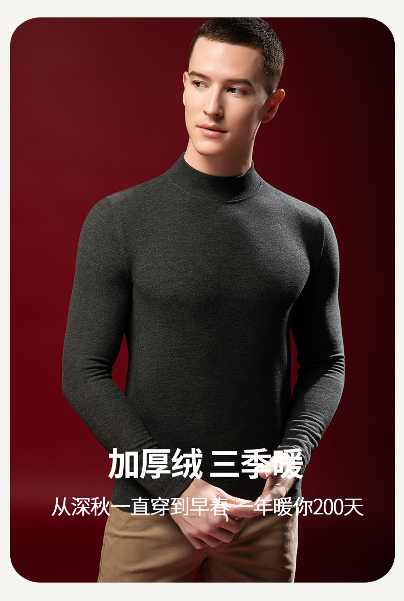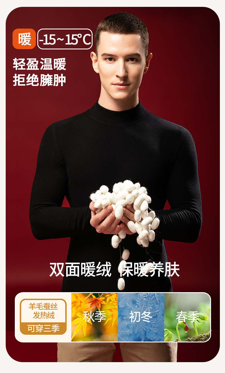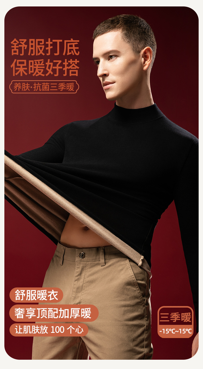 【任选2件下单158元】【澳洲羊毛+桑蚕丝+发热腈纶纤维】男士加绒加厚暖绒发热半高领保暖内衣