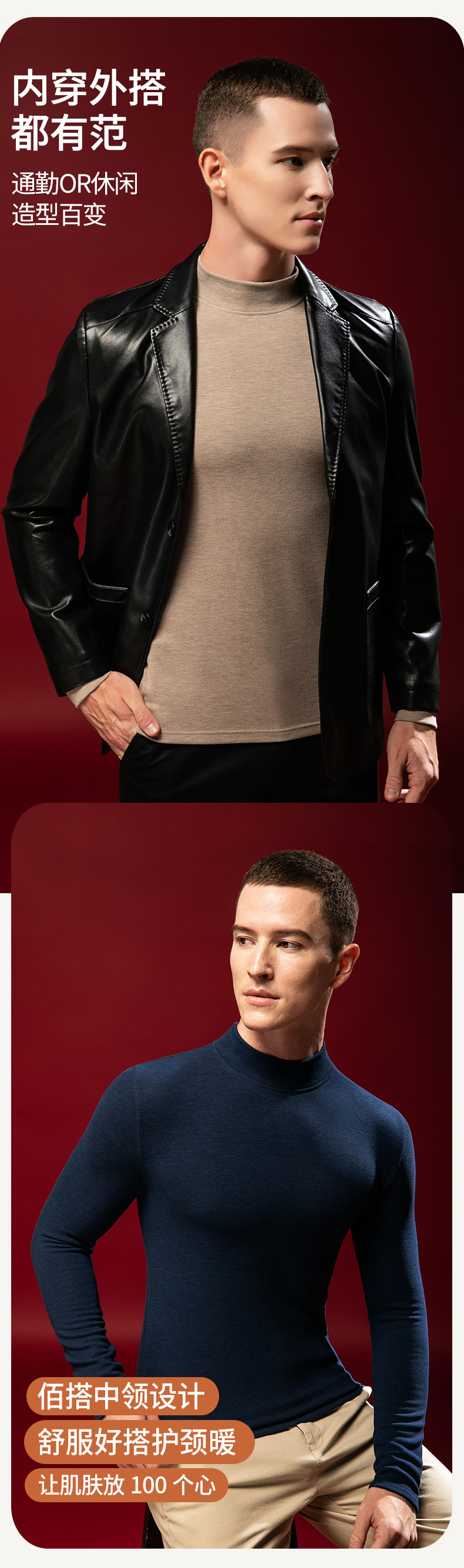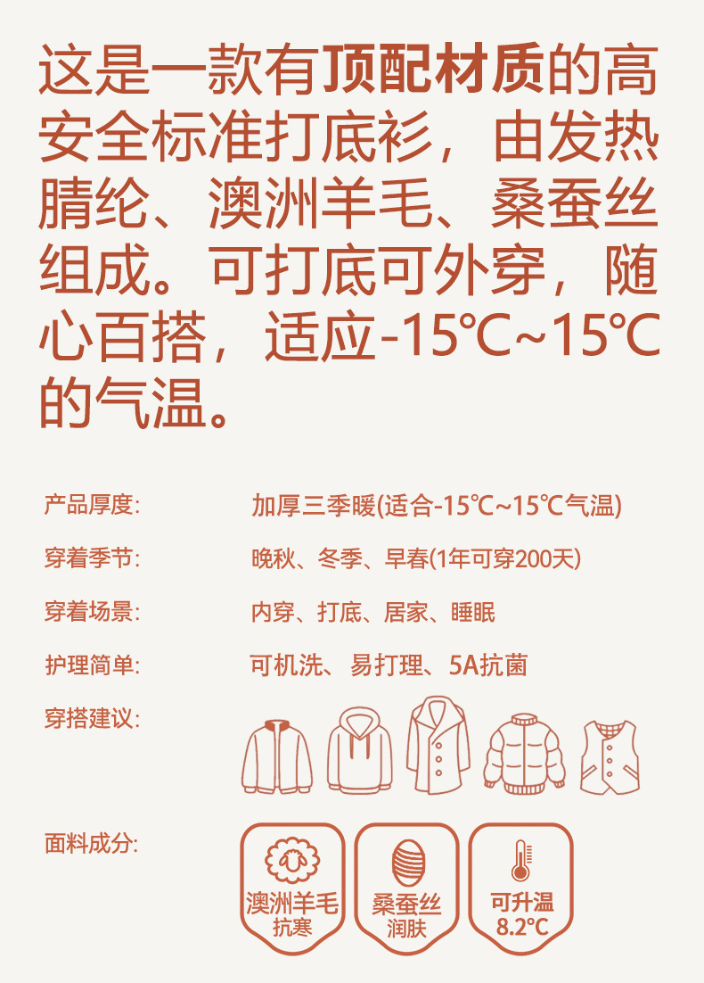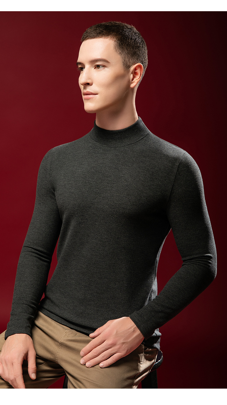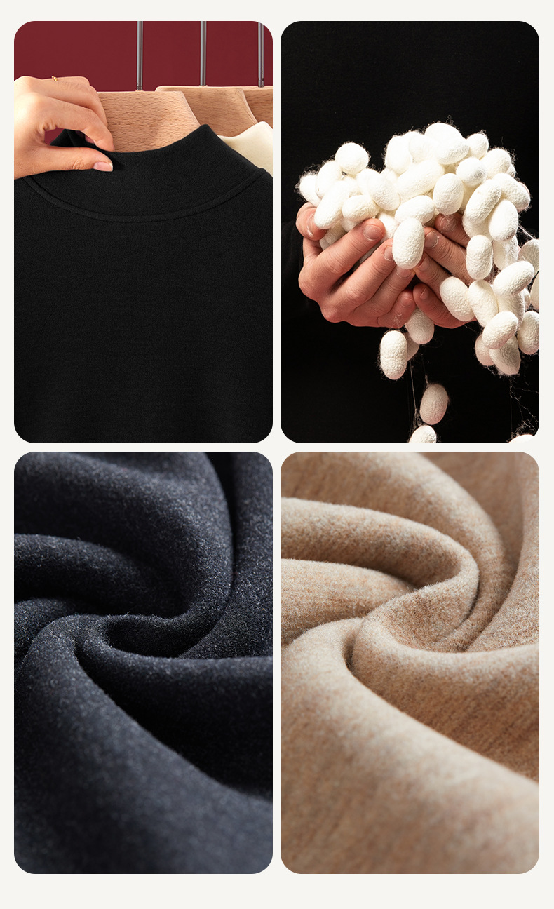 【任选2件下单158元】【澳洲羊毛+桑蚕丝+发热腈纶纤维】男士加绒加厚暖绒发热半高领保暖内衣