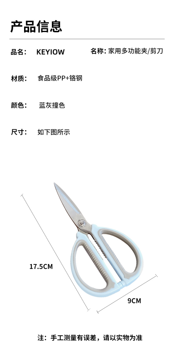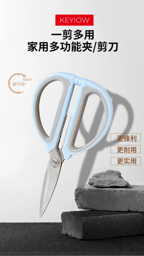 KEYIOW新升级利刃快剪家用多功能夹/剪刀跟厨房单打独斗了这么多年 都知道拿刀剁鸡肉、鸭肉会溅的厨房到处都是。最关键还不安全! 这款多功能快剪以一抵十 剪骨剪肉如同剪纸! 轻松利落不粘连 人手多把!好用! 一把多功能剪刀 把厨房中的一切化繁为简 用它下厨 小白也能拥有大厨级的刀功 剪刀处理食材 比菜刀更方便 轻松剖鱼腹 剪鸡骨 开虾背 好用的剪刀 帮你快速备餐