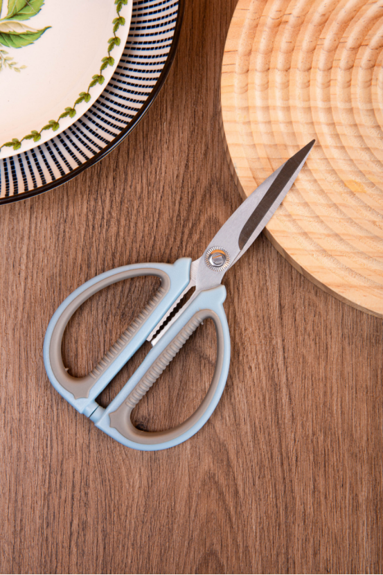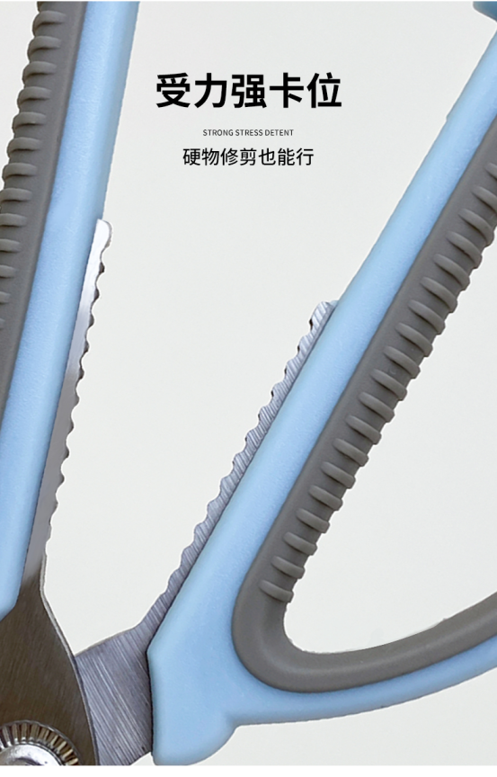 撞色蓝灰食品级PP手柄防滑易握 加大指握空间大小手好掌握 升级内侧防滑纹理 油手不滑剪