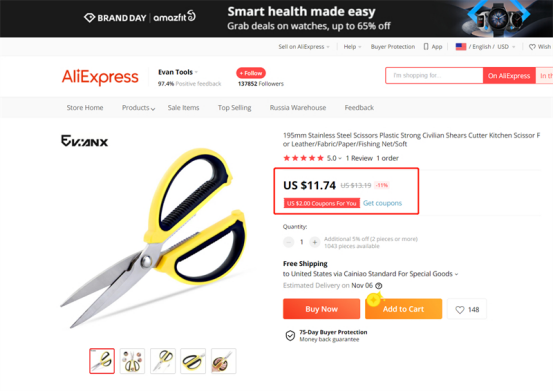 新升级利刃快剪家用多功能夹/剪刀 同款外网在售价US $ 11.74 折算人民币不含税 ¥ 75.5+