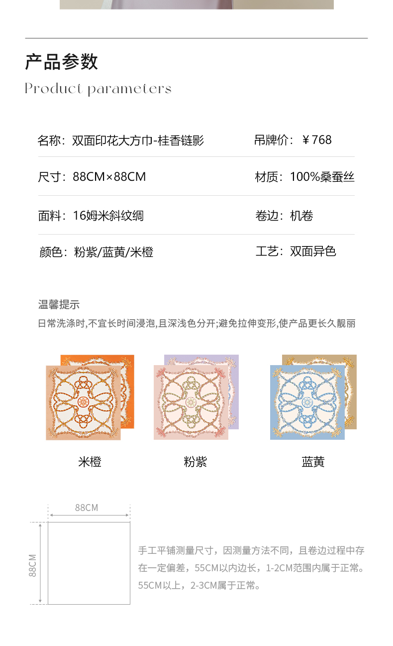 万事利“桂馥兰香”88厘米双面印花真丝大方巾