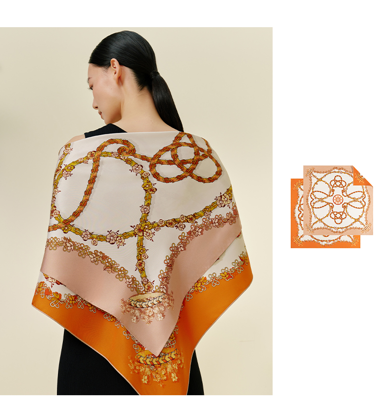 万事利双面印花大方巾-桂香链影