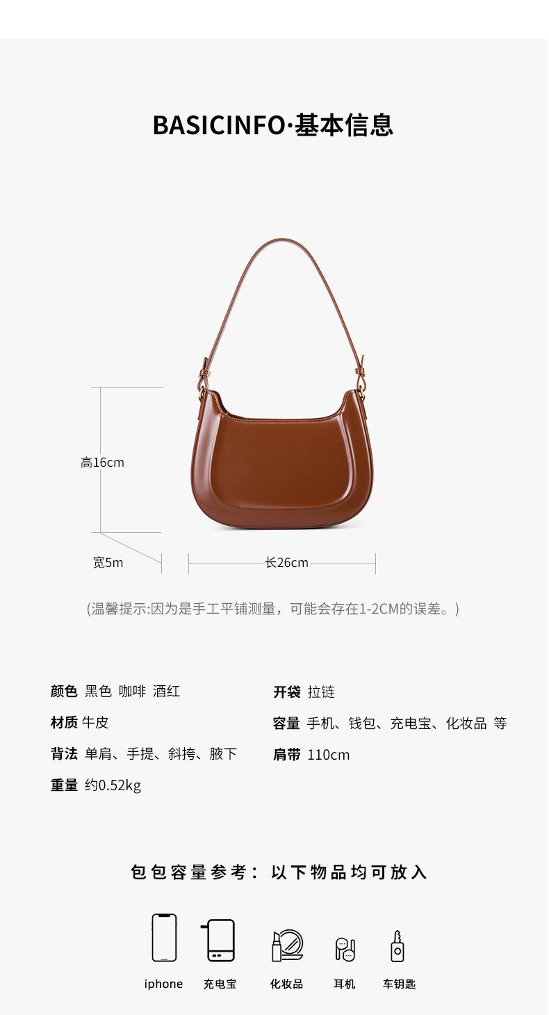 购买须知:这款女包为真皮材质,适合手提,斜挎,单肩,穿搭容易,容量可以满足日常需求。