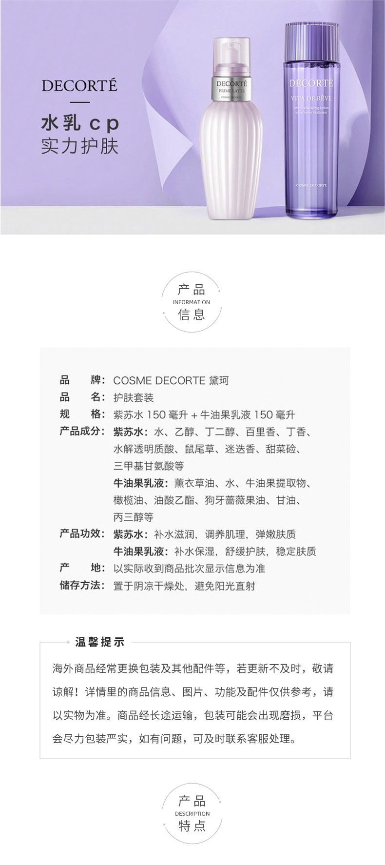黛珂紫苏水150ml+牛油果乳液150ml护肤水乳套装