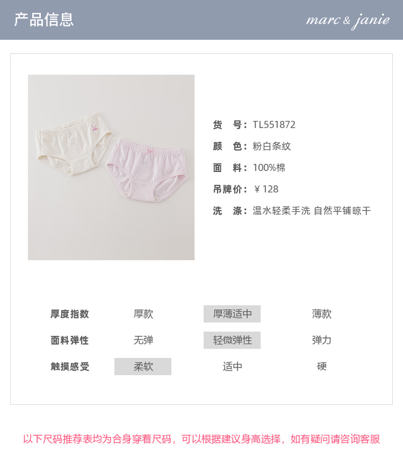 马克珍妮女童四季穿条纹纯棉内裤2025年新款551872