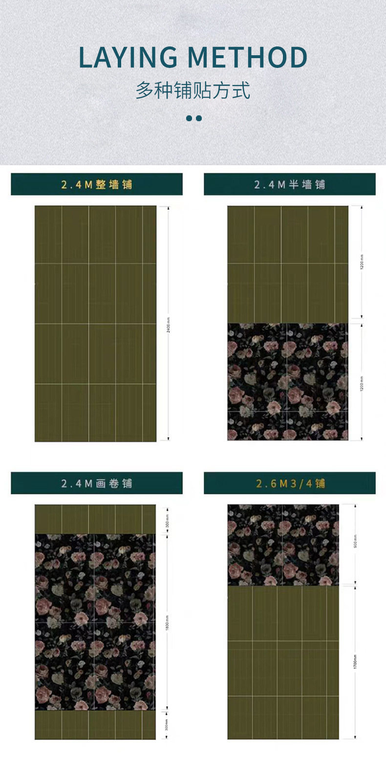墙砖地砖砖复古300x900瓷砖厕所墨绿色浴室法式玫瑰花厨房卫生间 商品图2