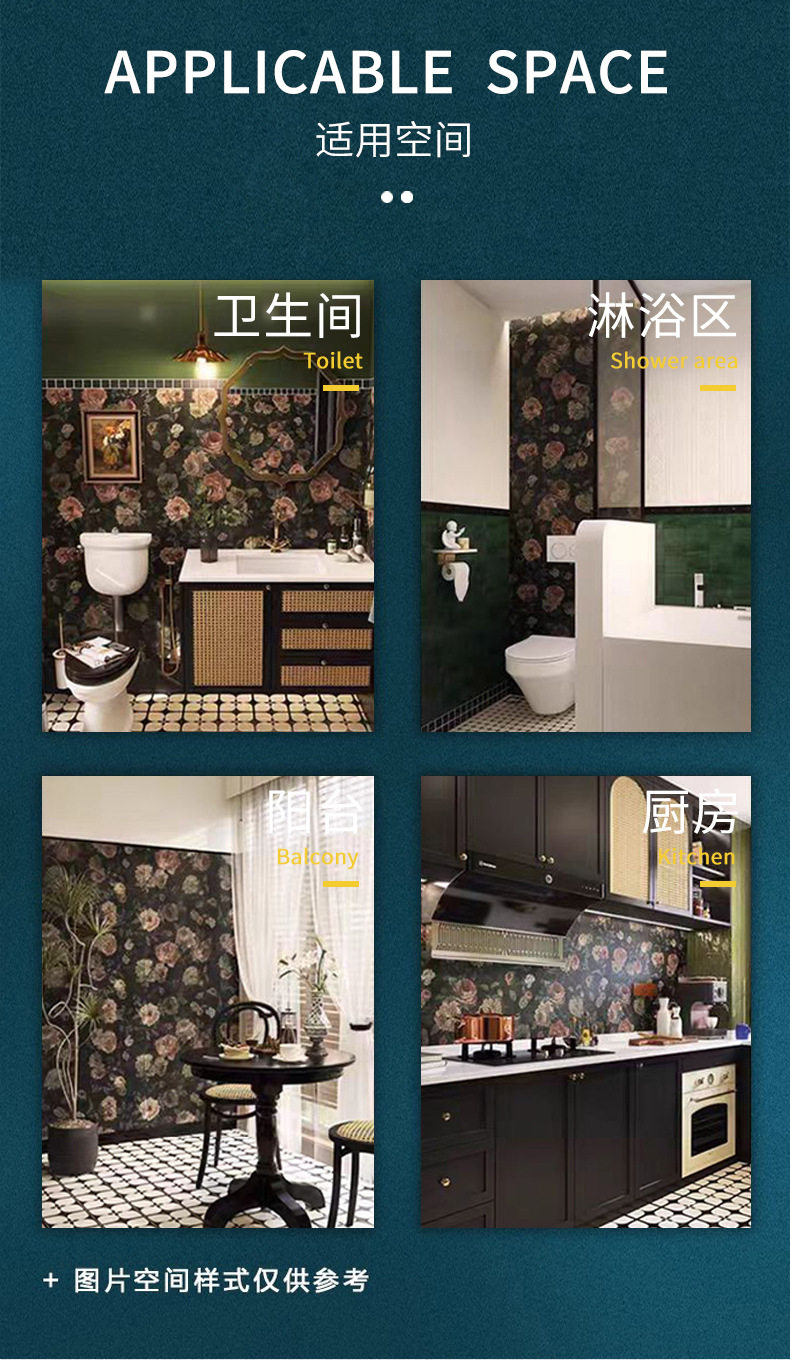 墙砖地砖砖复古300x900瓷砖厕所墨绿色浴室法式玫瑰花厨房卫生间 商品图4