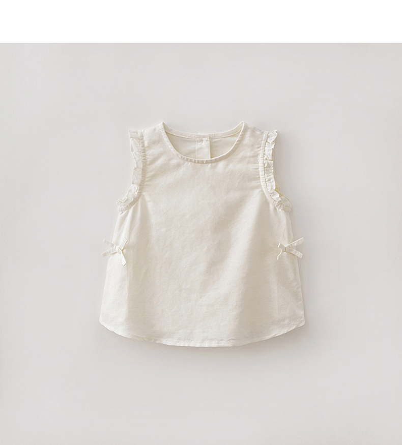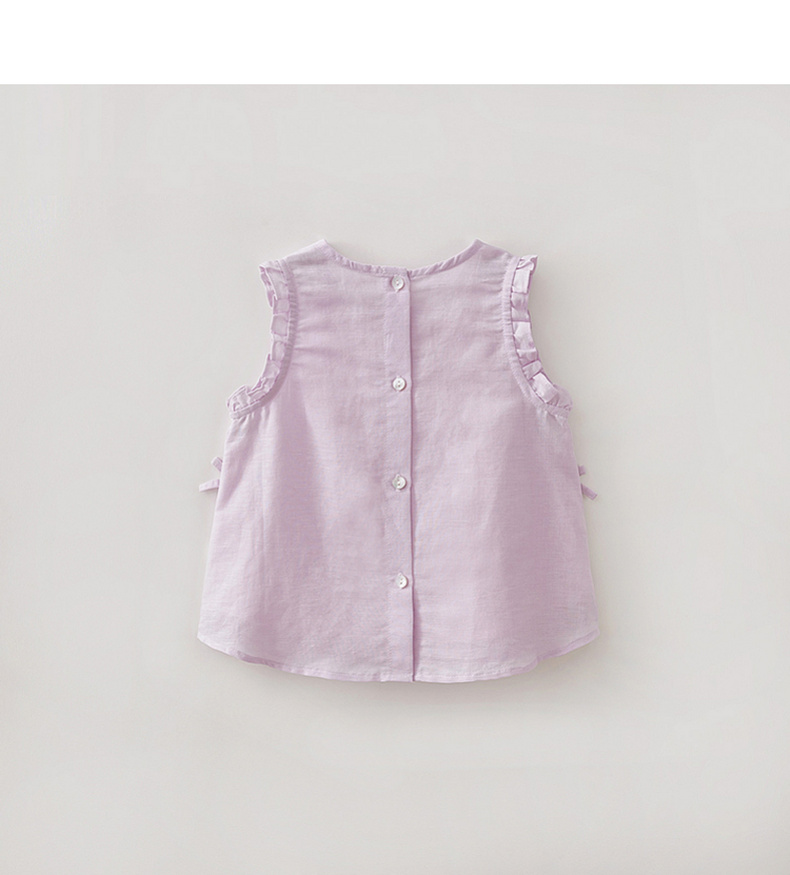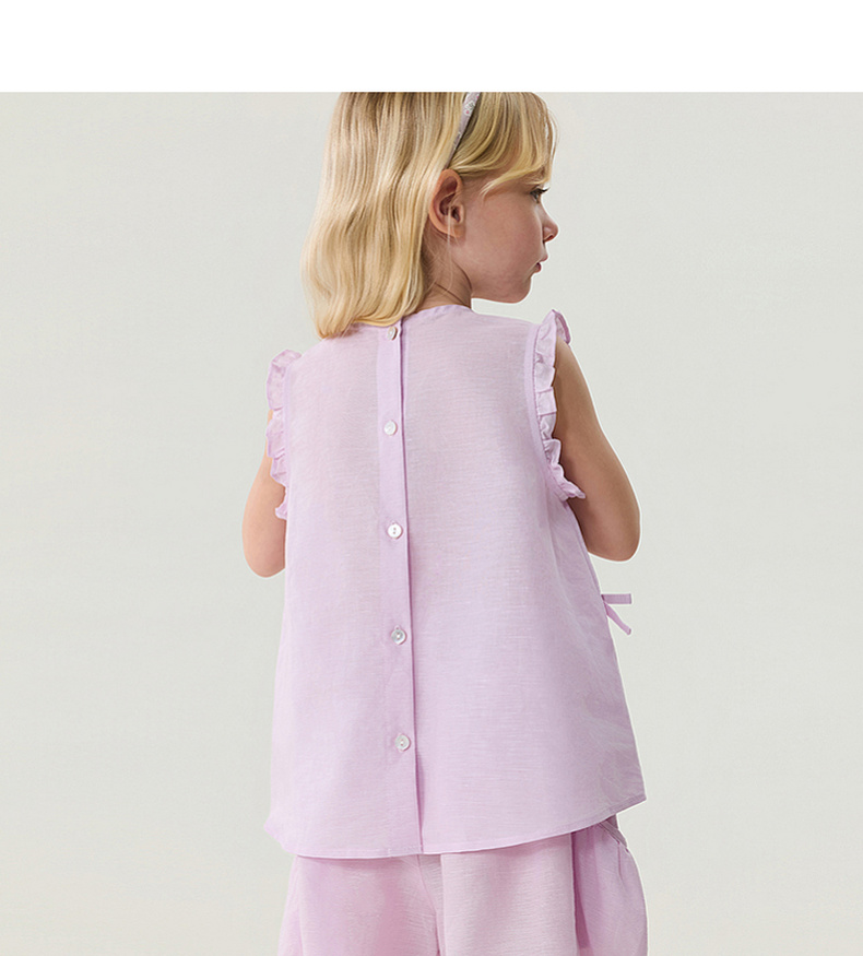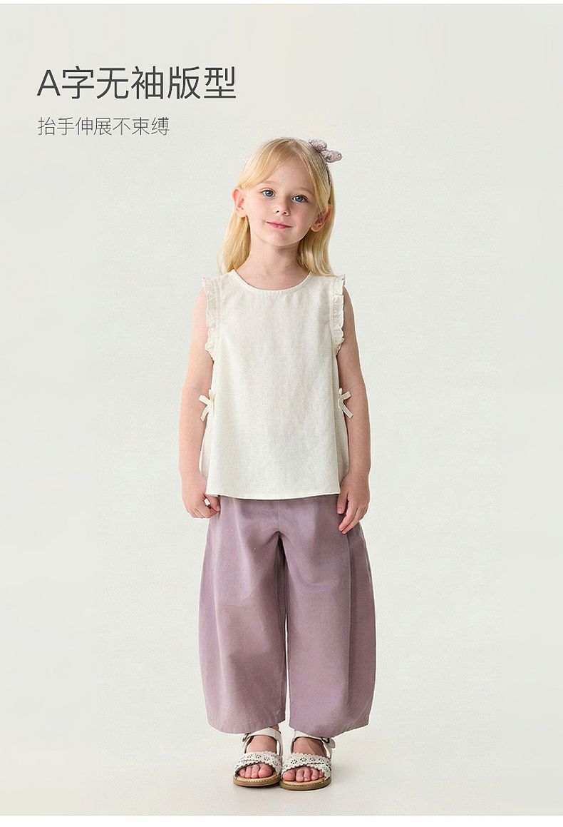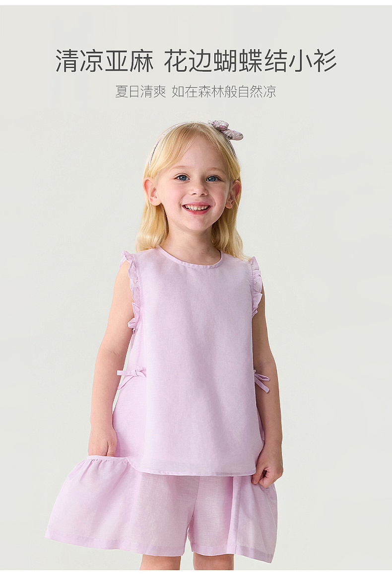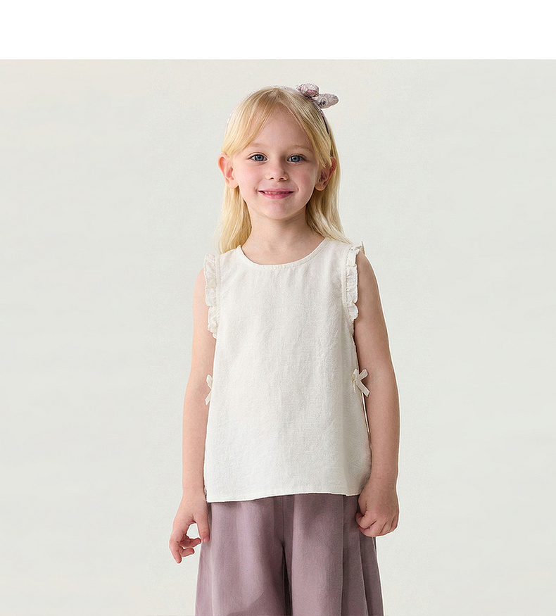 马克珍妮清凉亚麻女童花边蝴蝶结小衫2026年夏装新款560771
