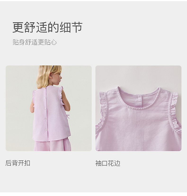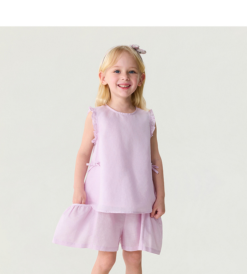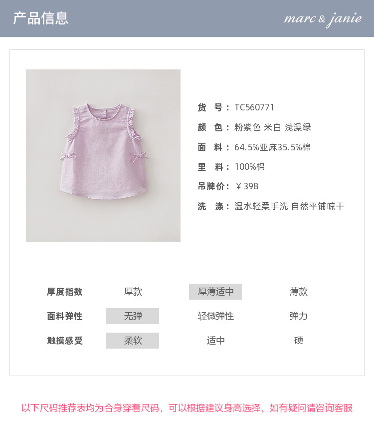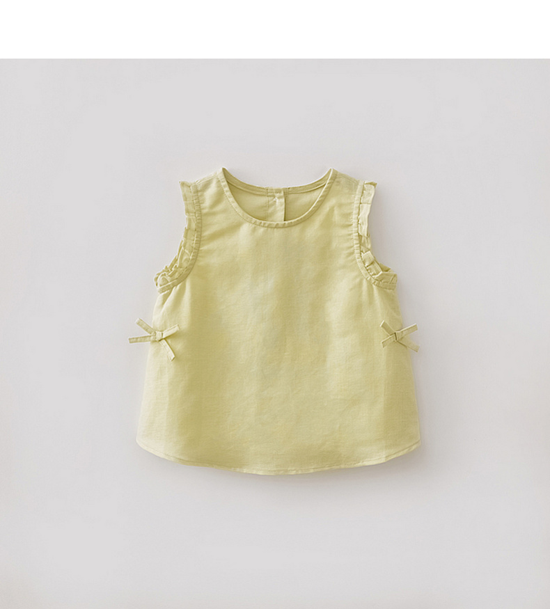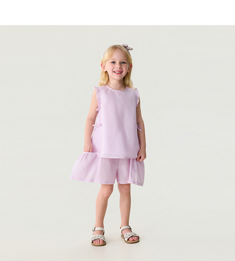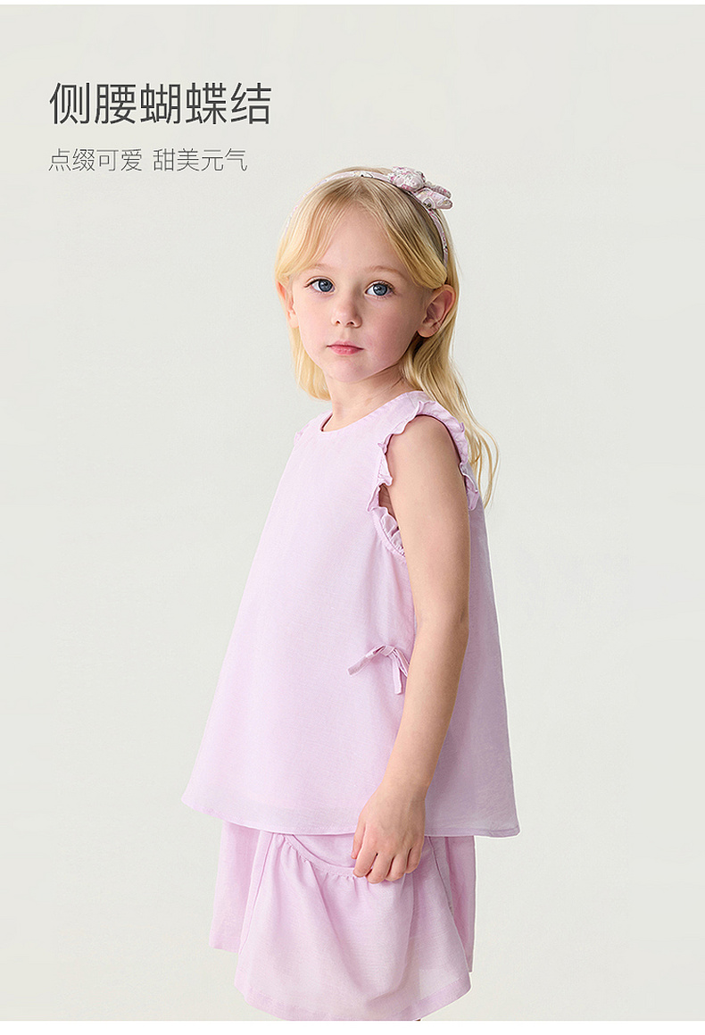 马克珍妮清凉亚麻女童花边蝴蝶结小衫2026年夏装新款560771