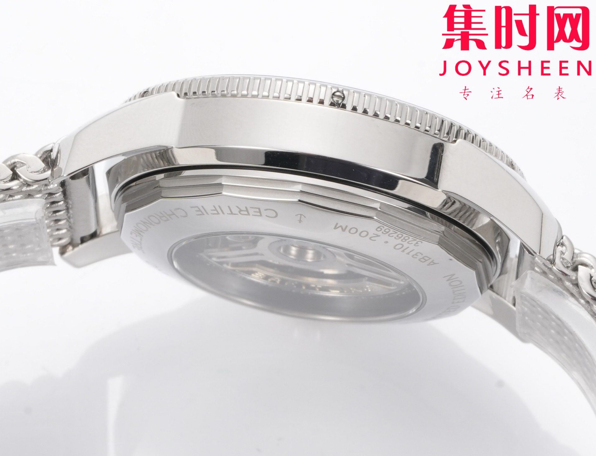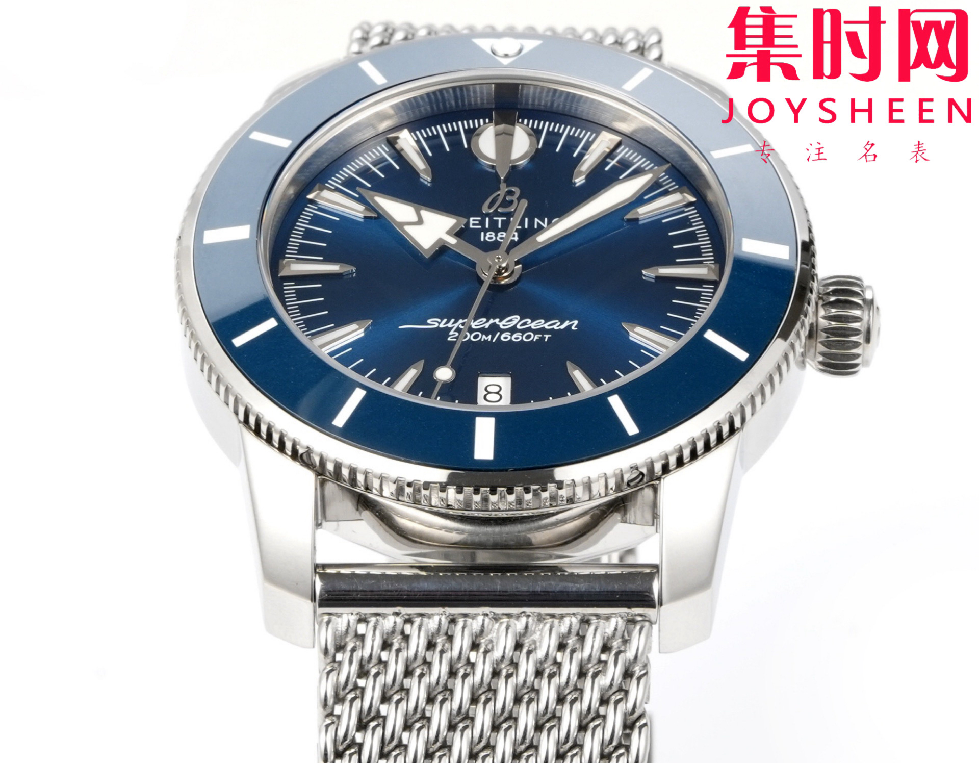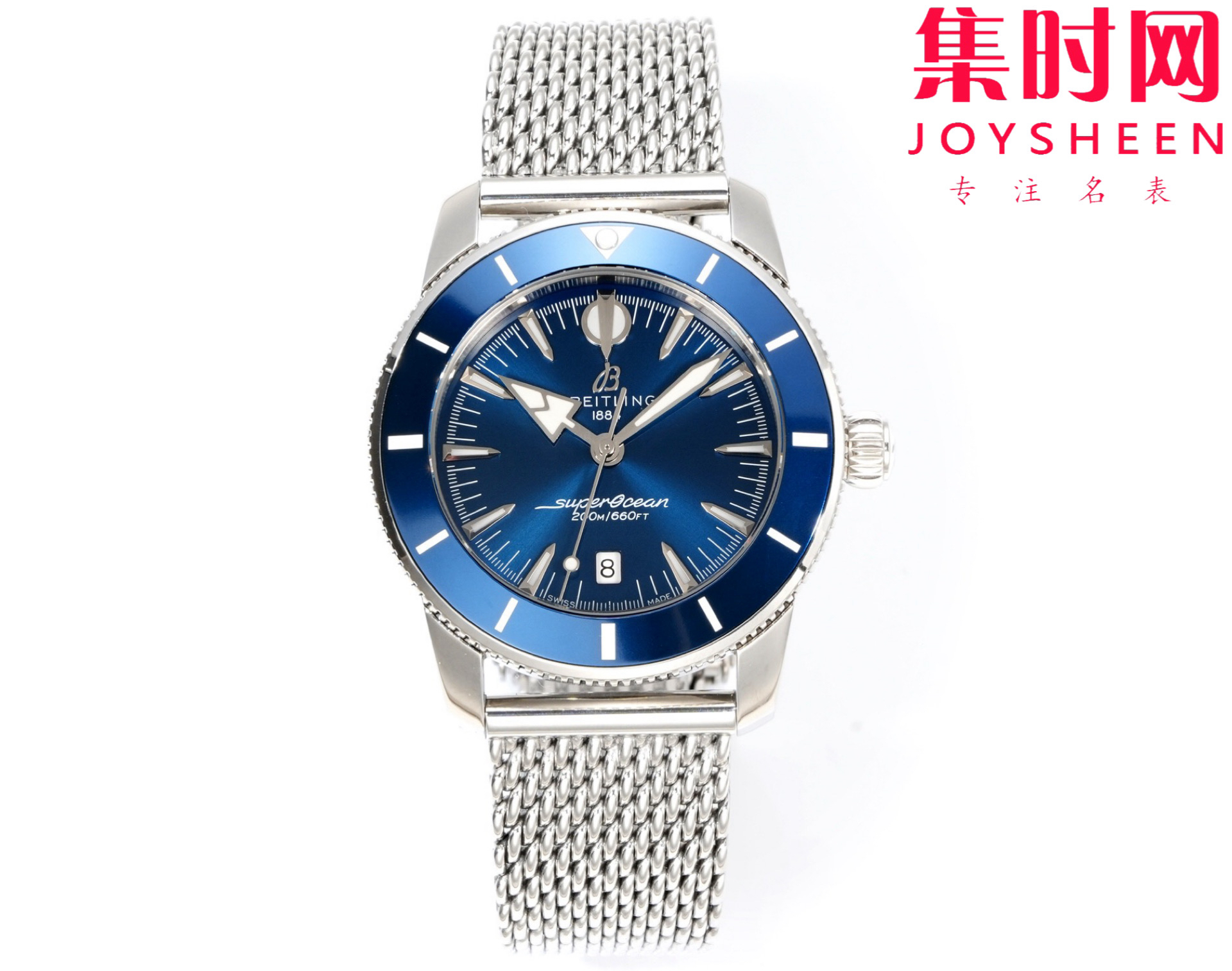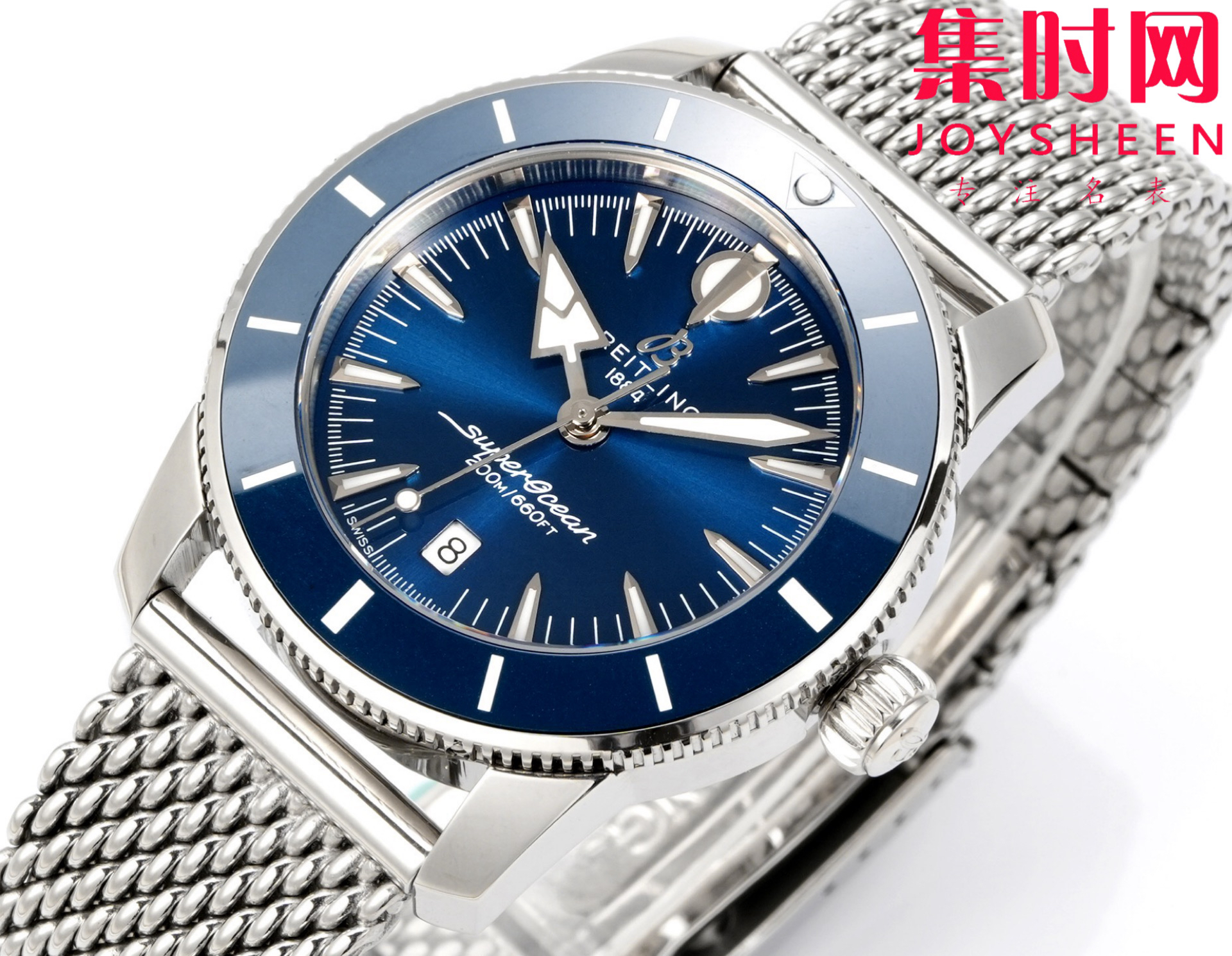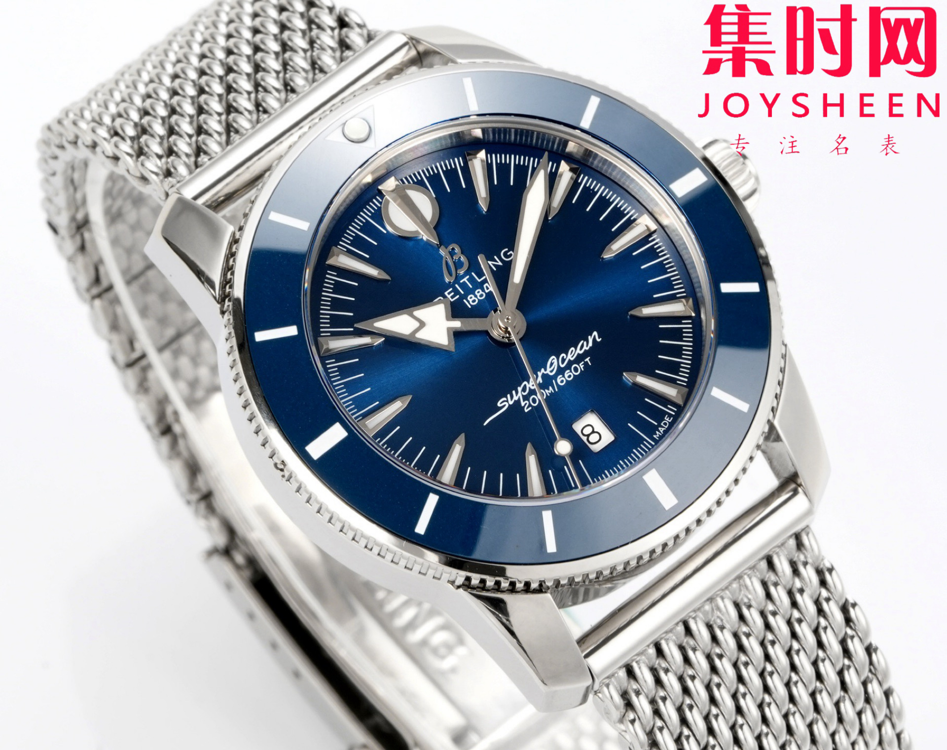 BLS百年灵 超级海洋文化系列 男士腕表 表径42mm 米兰钢带款 为穿梭于海浪与海滨之间打造。超级海洋文化系列,新款超级海洋文化腕表不仅承袭了原款腕表的独特之处,而且还做出了进一步的提升。该系列引入了B31自动上链机械机芯,这是百年灵首款自制大三针机芯。陶瓷镶嵌表圈具备卓越的防刮性能,一体化的金属编织表链或橡胶编织表带紧密贴合表壳,搭配折叠式表扣,既呈现出无缝连接的外观,又能确保防水性能。6点钟位置设计低调的日期显示窗,以及沿袭原款设计的标志性指针(包括箭形时针和矛形分针),共同确保了腕表的易读性和平衡性,无论水上水下。