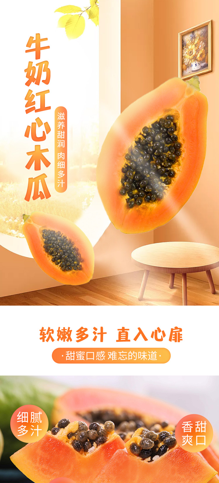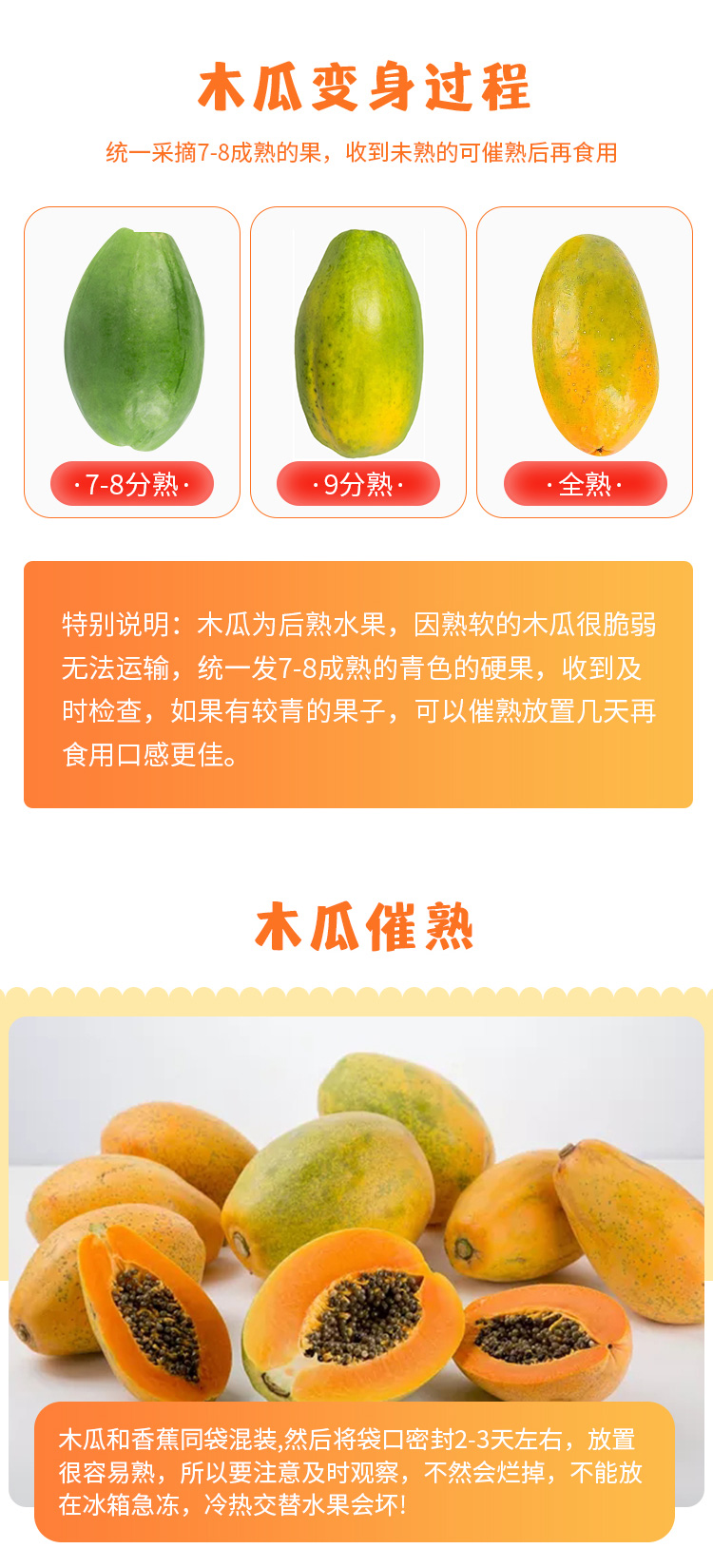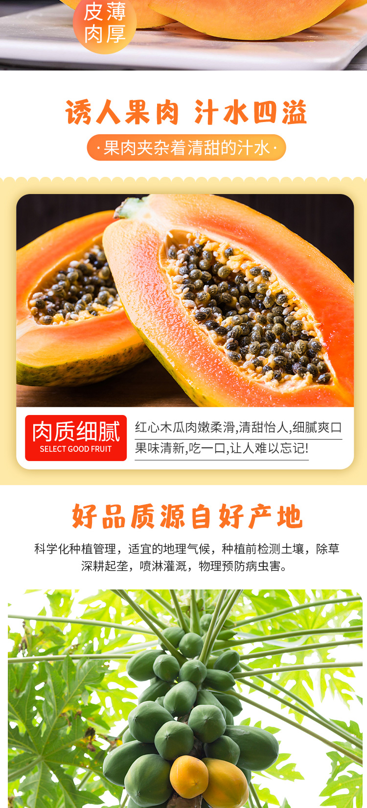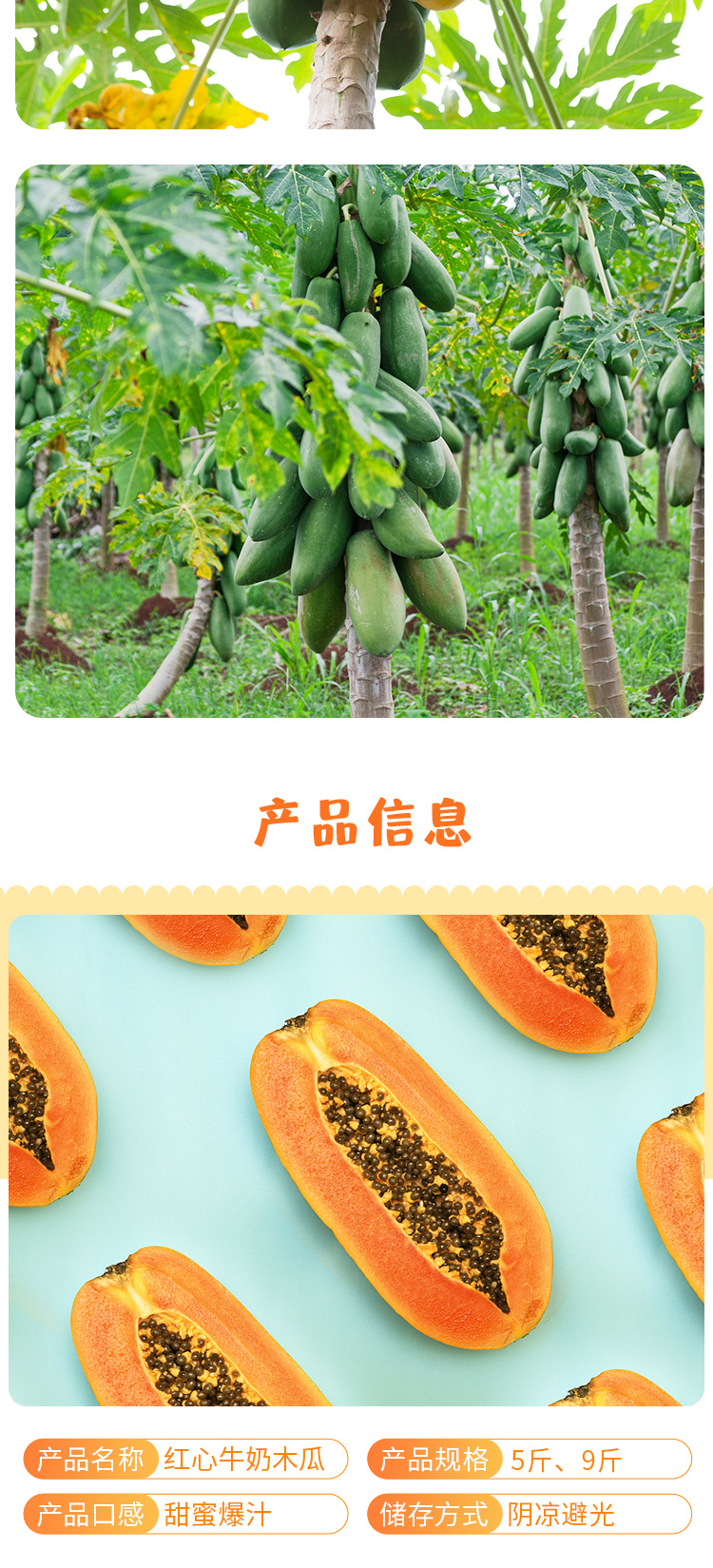 云南版纳红心木瓜 果园现摘现发 果肉细腻,嫩滑甜蜜 还可以搭配酸奶,牛奶食用 7-8成熟的木瓜可煲汤/做成银耳羹
