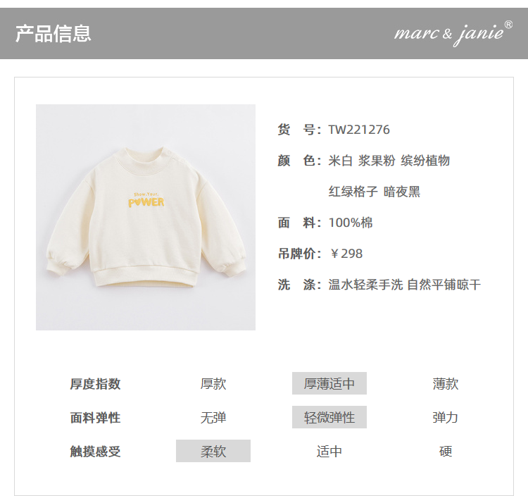 马克珍妮秋装新款女童时尚字母纯棉卫衣 儿童上衣221276